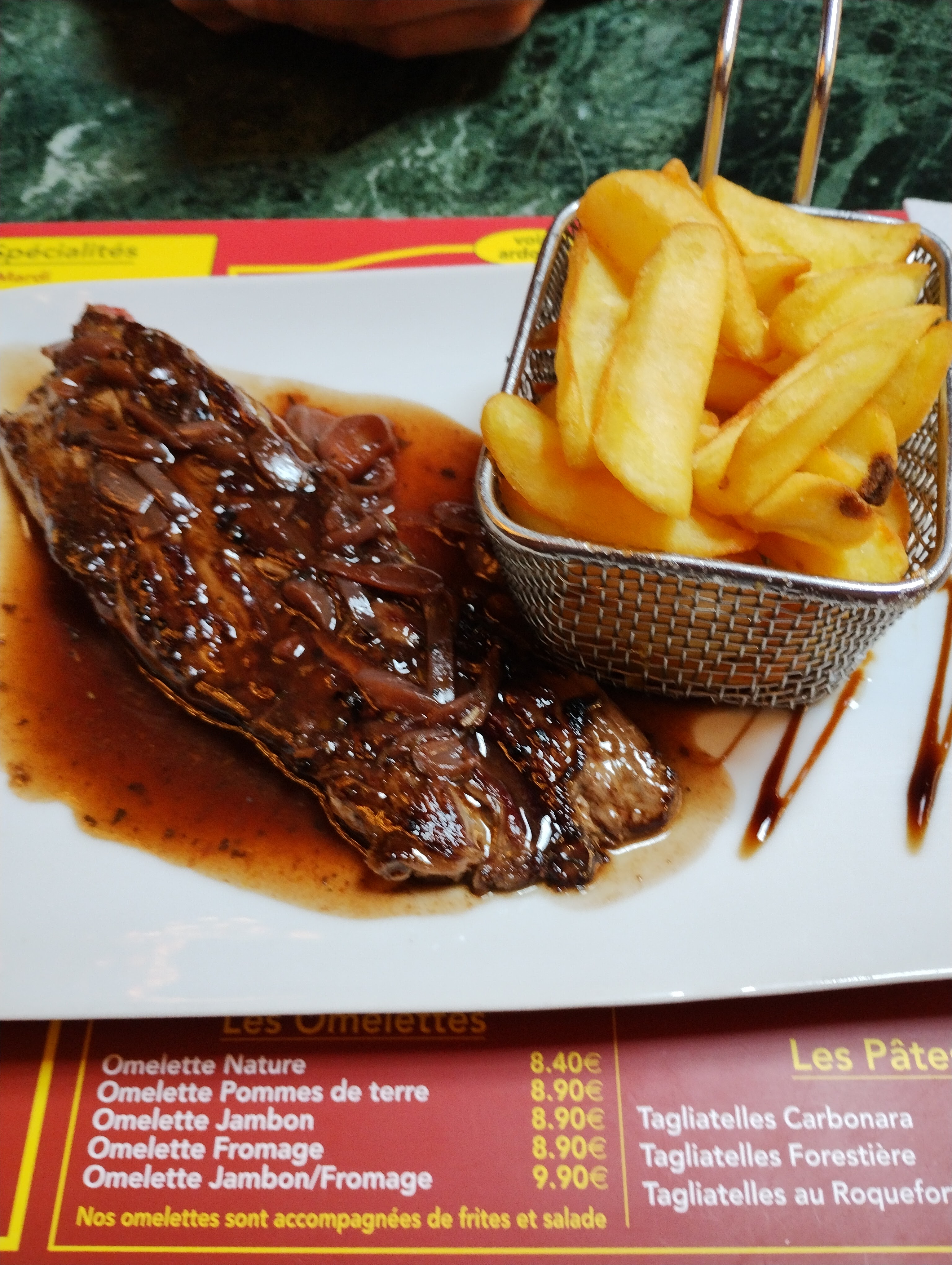 REPAS DE BONNE QUALITÉ, MAIS PLUS D'UNE HEURE POUR UNE ASSIETTE DE CHARCUTERIE ET UNE BAVETTE FRITES, SERVICE BEAUCOUP TROP LENT