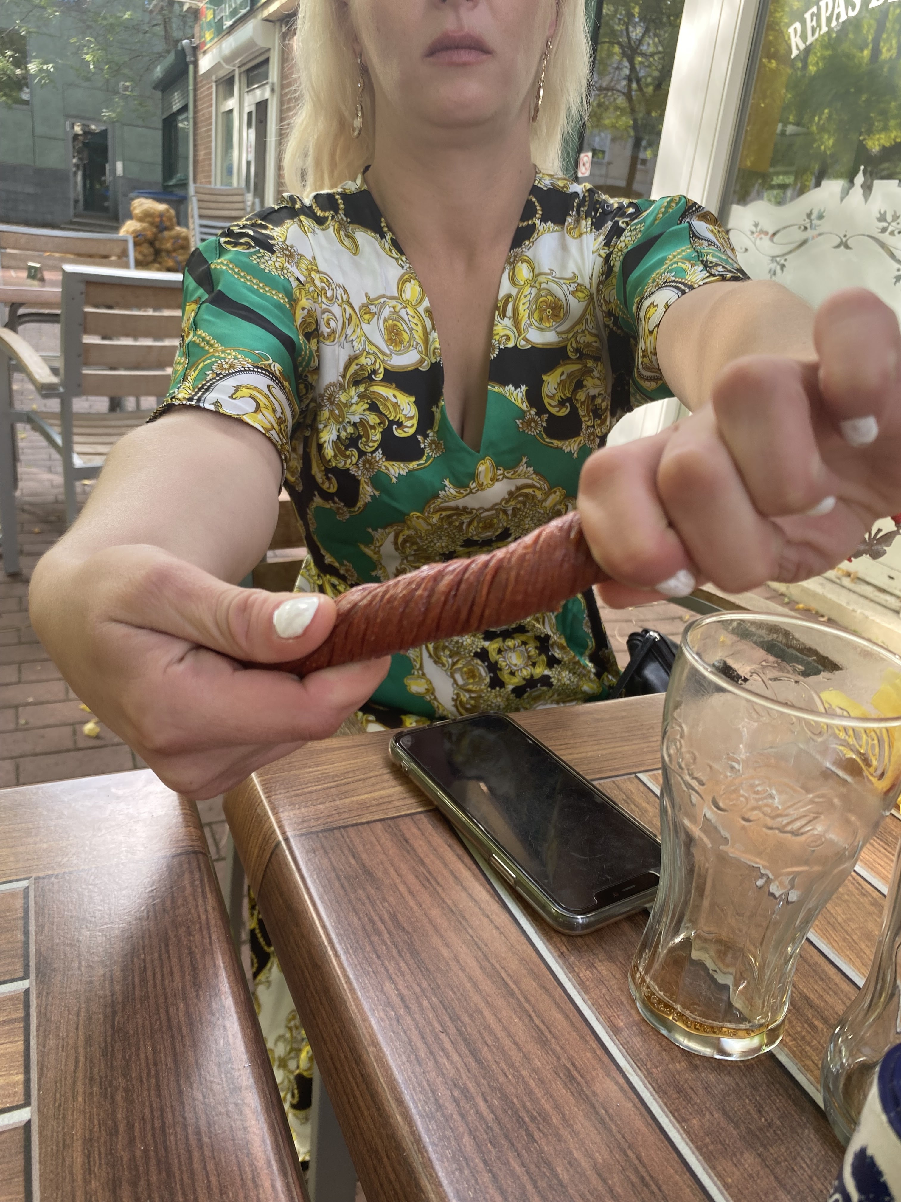 Une serveuse avec deux mains gauches mais qui s'en sert à merveille...et en plus elle a de l'humour . ..