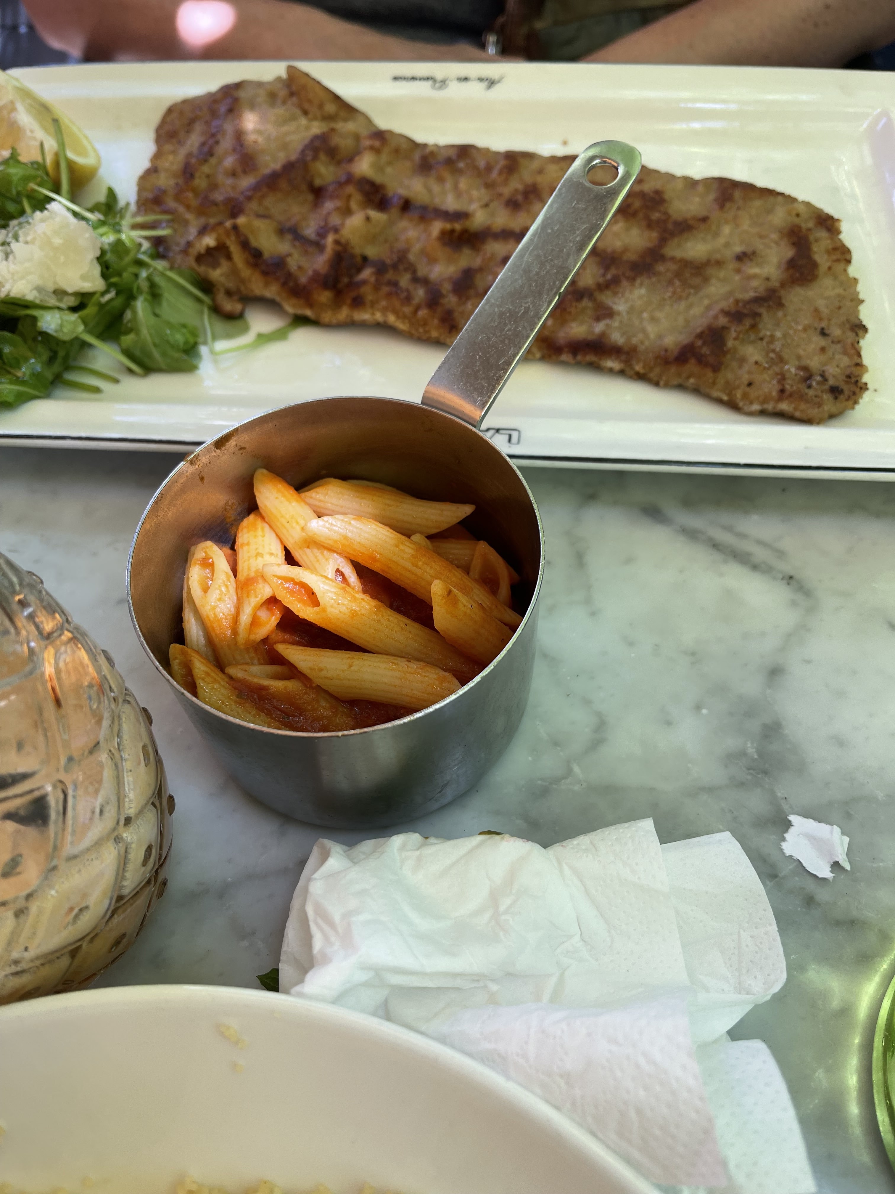 La portion de foie gras est trop grande de même que l'escalope milanaise. Compte tenue du prix je m'attendais à un service haut niveau. Au lieu de cela nous avons du emballer nos restes.