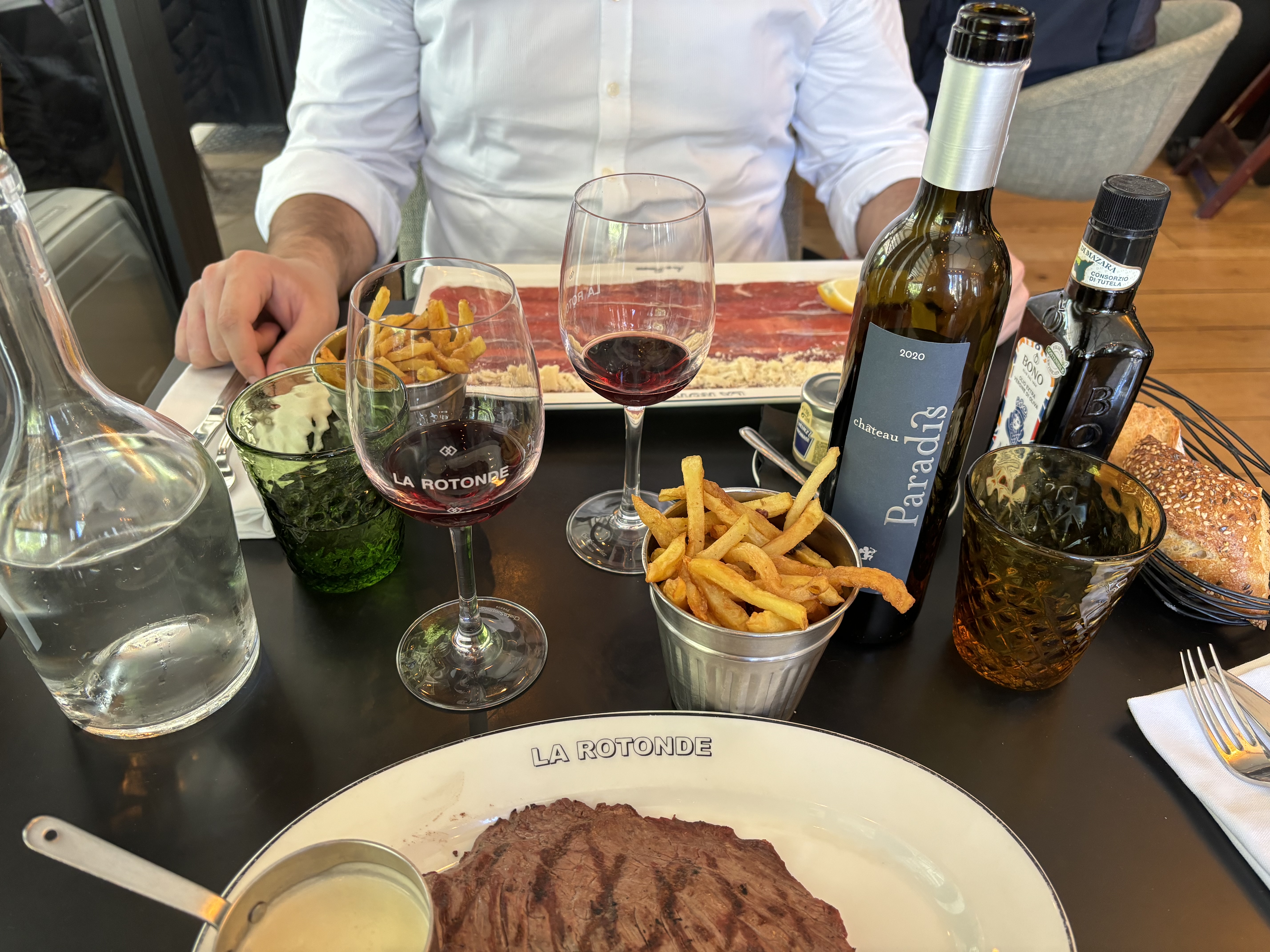 Oui c’est un peu cher mais la qualité des produits, la beauté du décor et le service impeccable justifient largement l’addition! Viande hachée sur place,poisson frais, pizza sans gluten, cocktails extraordinaires, salons discrets et excellente musique d’ambiance, tous les atouts pour séduire… Mes favoris, Côté de Bœuf découpée en salle, sole meunière, pizza tartuffo et le Burger Rotonde ! Incontournable