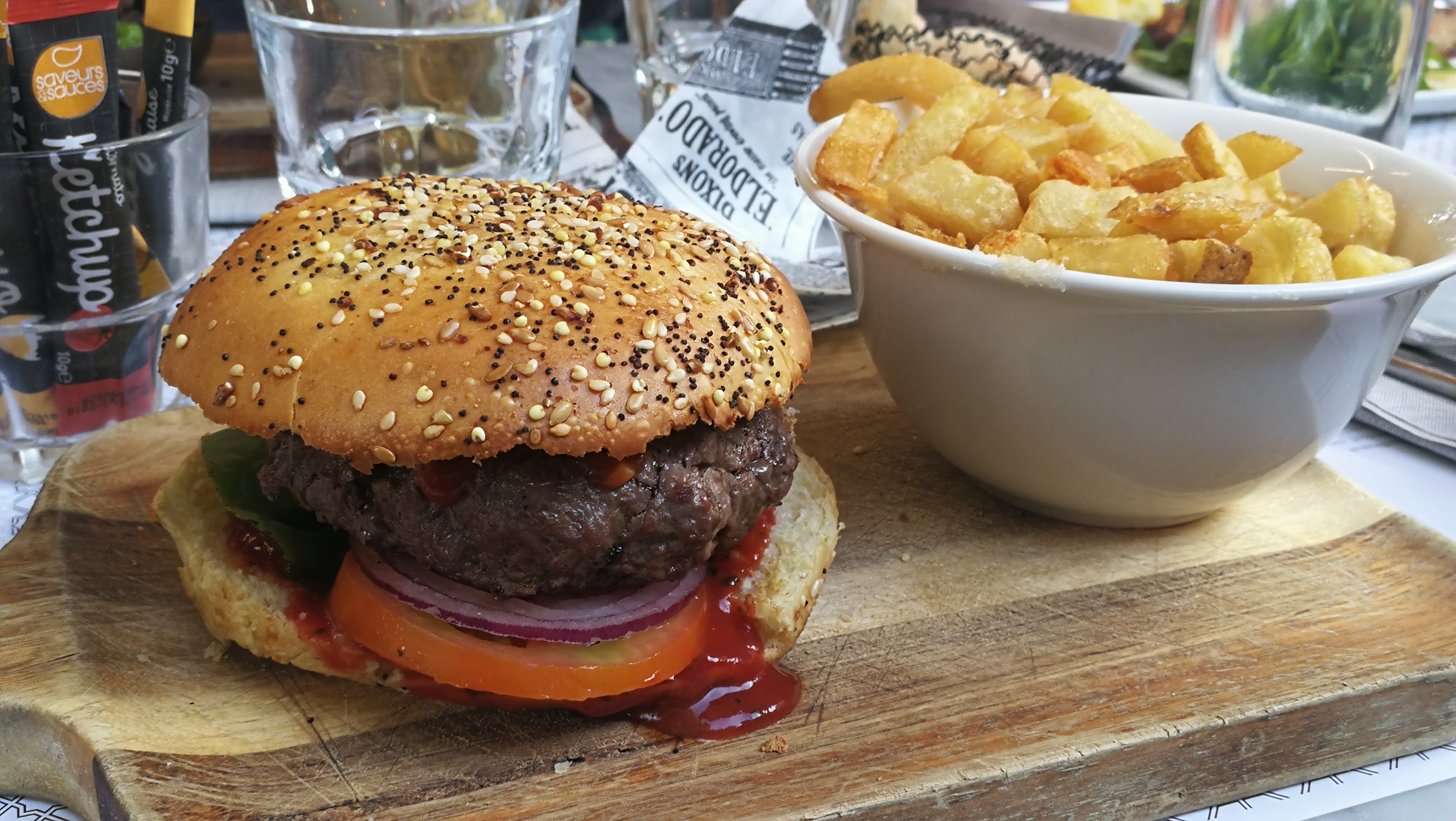 Expérience agréable surtout grâce à un service exceptionnel de la part du serveur Elyes qui a été d’une rapidité et amabilité exceptionnelle. Nous avons été servies très rapidement, notre serveur était au petit soin, c’était vraiment agréable. Le repas était plutôt bon, mais le Burger froid et la portion de frites très petite pour le prix. Mais je recommande.