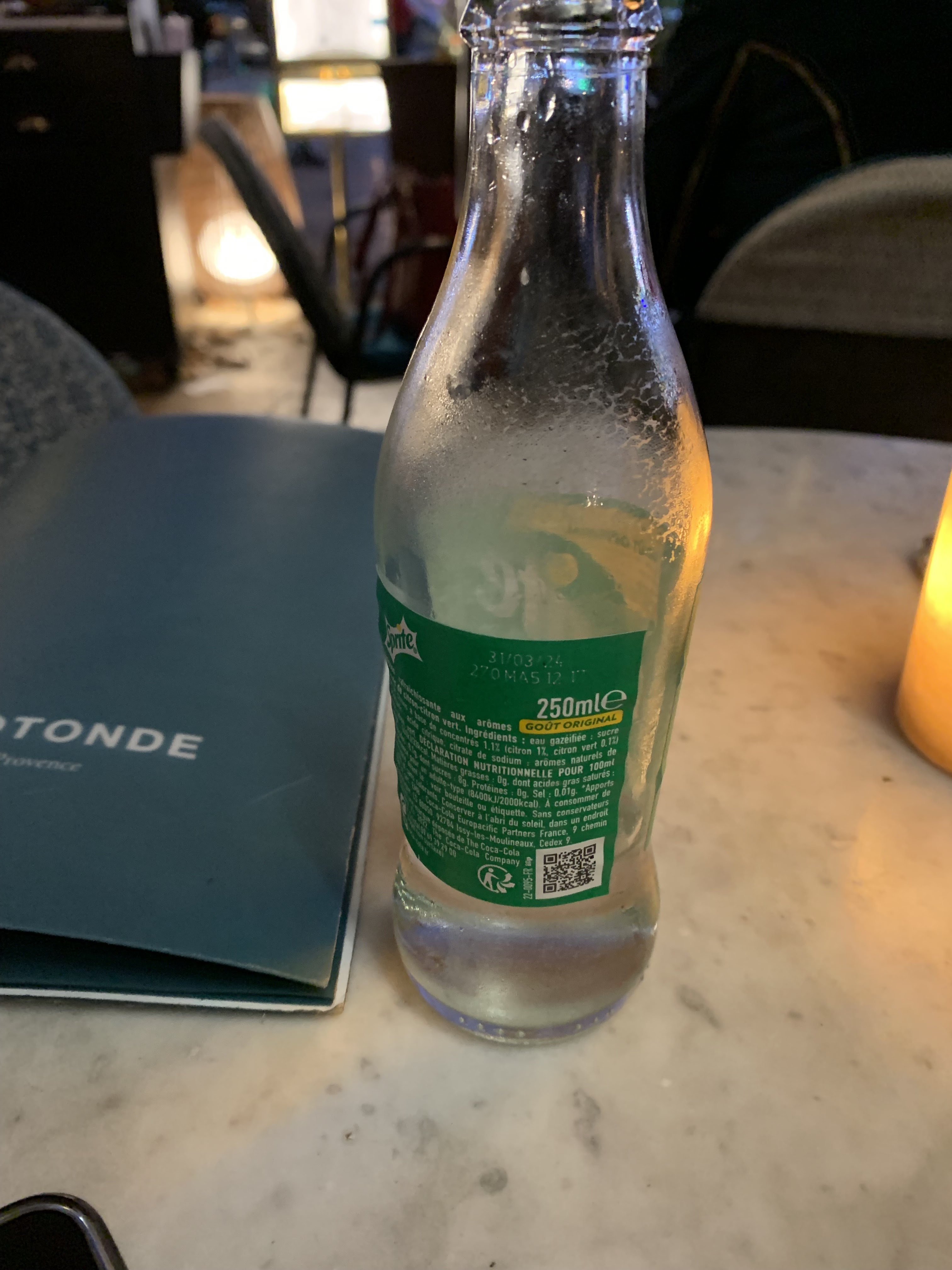 Sprite servi en 25cl et marqué 33cl sur la carte. Ce genre de pratique a le don de m’exaspérer. Dommage car le serveur était sympathique et le cadre idéal en plein centre de la ville.