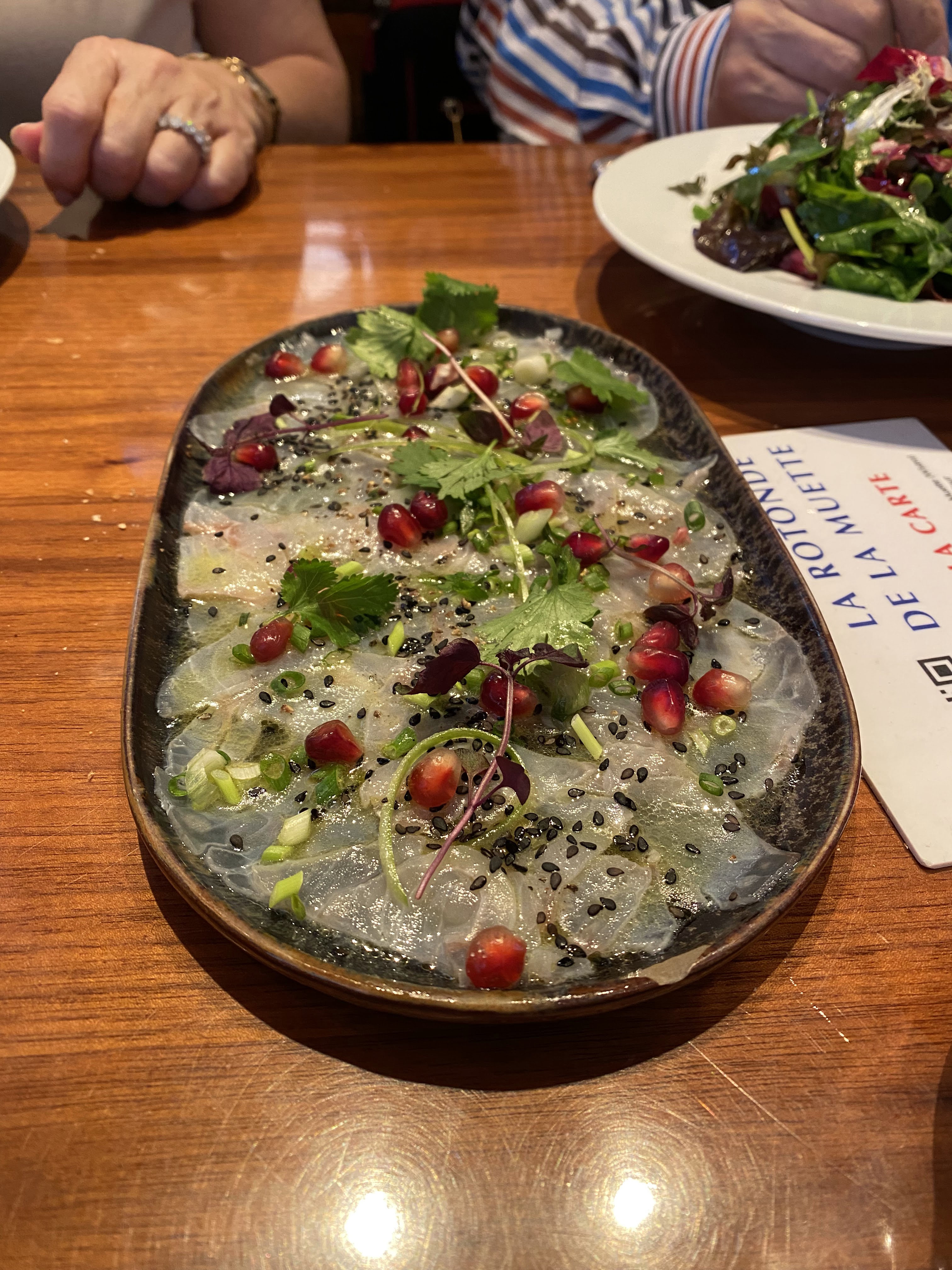 Globalement décevant. L'accueil par le grand monsieur a été plutot sympathique, mais lors du service nous avions l'impression de déranger la serveuse. Ambiance sonore insupportable à cause de la foule incroyable du weekend. Les plats étaient assez fades (tartare de saumon, carpaccio de bar) et mal assaisonnés. Les rognons demandés rosés étaient très cuits. Les produits semblaient de bonne qualité pourtant. Ne pas prendre la salade d'épinards, aucun gout si ce n'est les copeaux de bonite sur le dessus. Les desserts corrects... On n'est peut-etre pas tomber le meilleur jour...