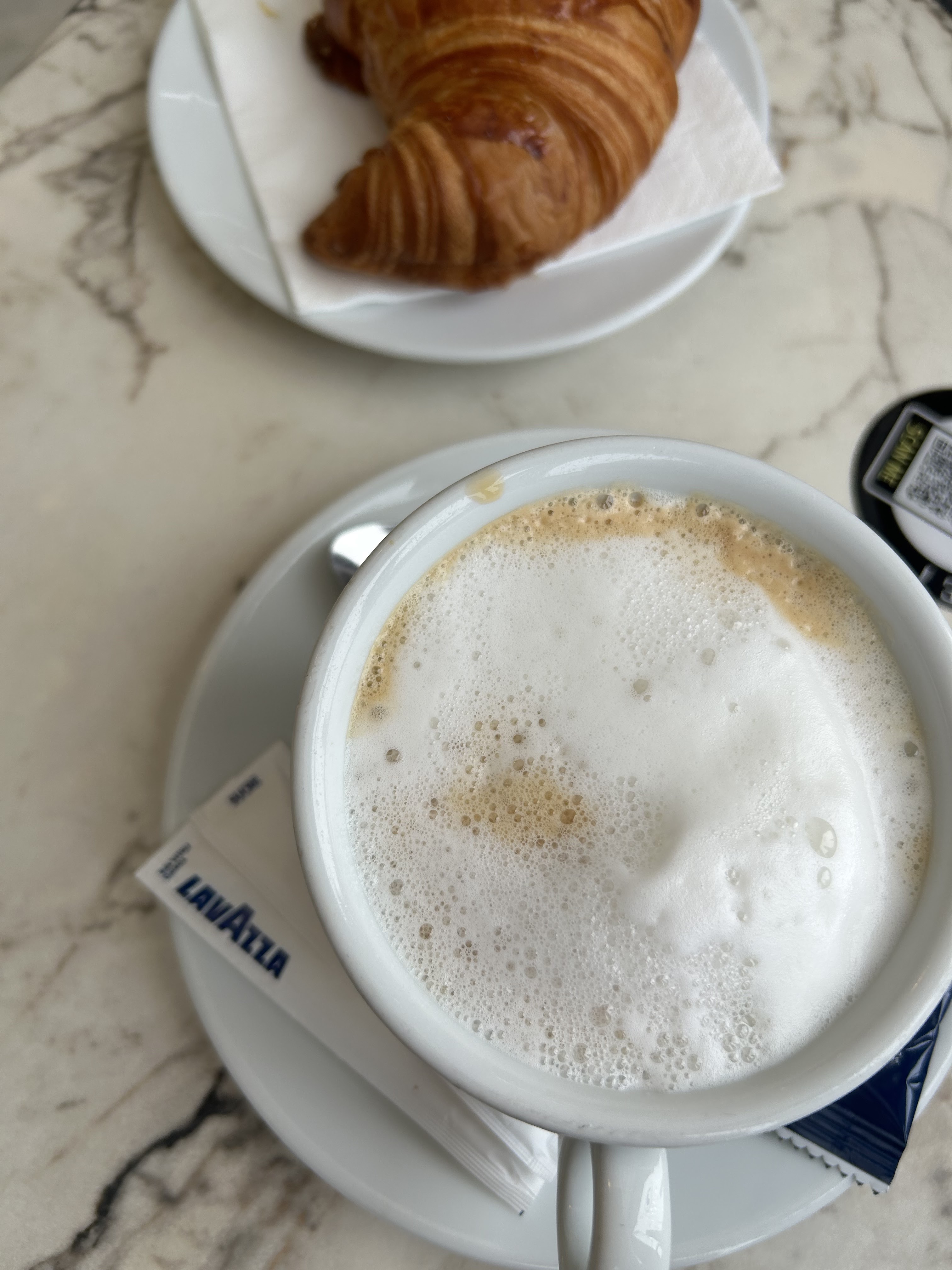 Prix Parisien. 9.50 pour un expresso un creme et un croissant.