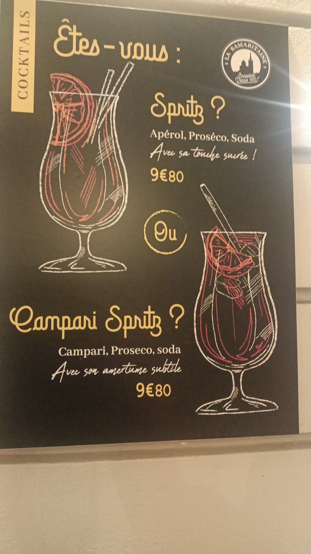 A part le vent qui ramène tout les déchets sur la terrasse j'adore cette brasserie. J'avais commandé des pâtes carbo ( un délice) je félicite le chef(fe) , mon mari à pris une friture de poissons...C'était délicieux même moi qui n'aime pas le poisson .... Après nous allions toujours boire un verre a la Samaritaine après nos visites...Serveurs un peu froids au 1er abord mais qui se décoince vite...Bref notre bar préféré !!!