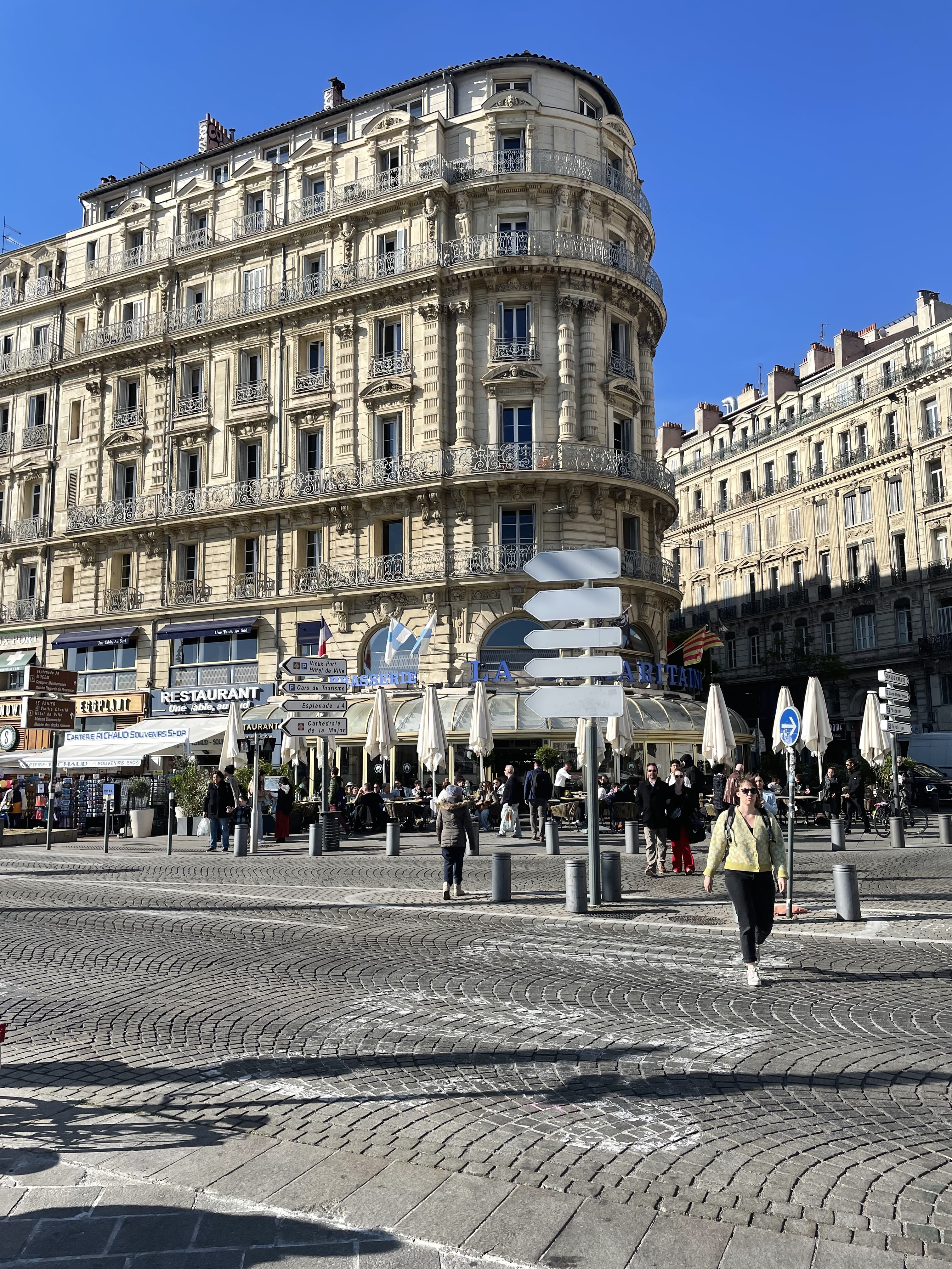 Placé dans un angle charnière entre la rue de La République et le Quai des Belges, ce bistrot restaurant est un de mes préférés. Belle vue sur le Vieux Port. Le service est un peu long, mais il faut avoir de la patience. Les serveurs se démènent pour servir tout le monde dans les meilleurs délais mais en plein été c'est un peu difficile. Pour la restauration, elle peut être de type bistrot, avec des plats légers mais il y a aussi une belle carte gastronomique. Bref, j'aime beaucoup m'y rendre pour me détendre, discuter avec les serveurs et prendre la température marseillaise.