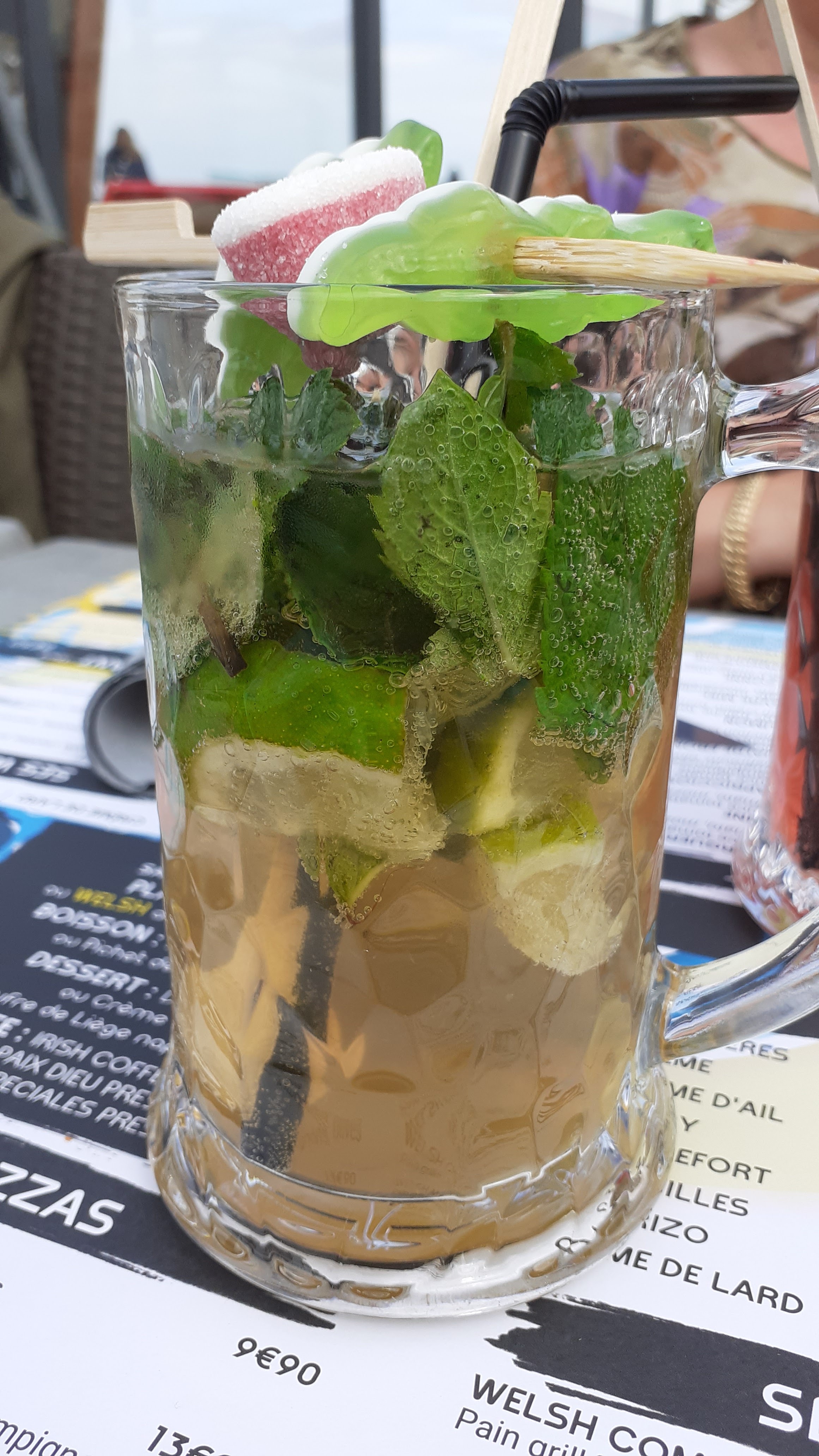 Bonne emplacement pour profiter vue sur la mer! Mojito sans alcool 😃 Manque un peu de glaçons !