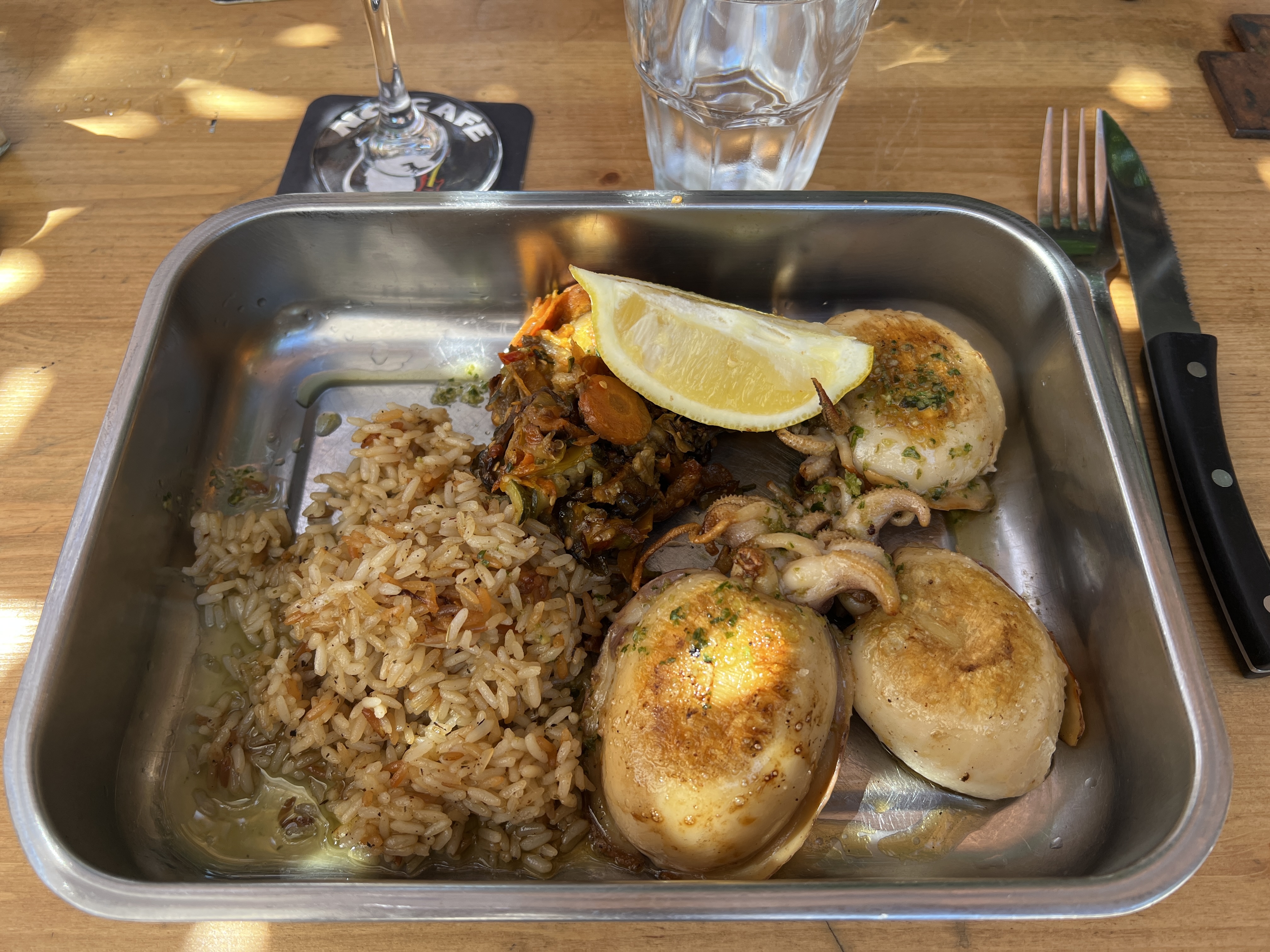 La décoration de cet endroit est atypique et j'aime beaucoup. Je voulais tester un plat typique, étant en Carmague, autant en profiter! J'ai pris la Bourride (cf photo), j'ai trouvé ça bon, frais, pas trop lourd sur l'estomac. La personne qui m'a accueillie et le serveur que j'ai eu étaient souriants et aimables!