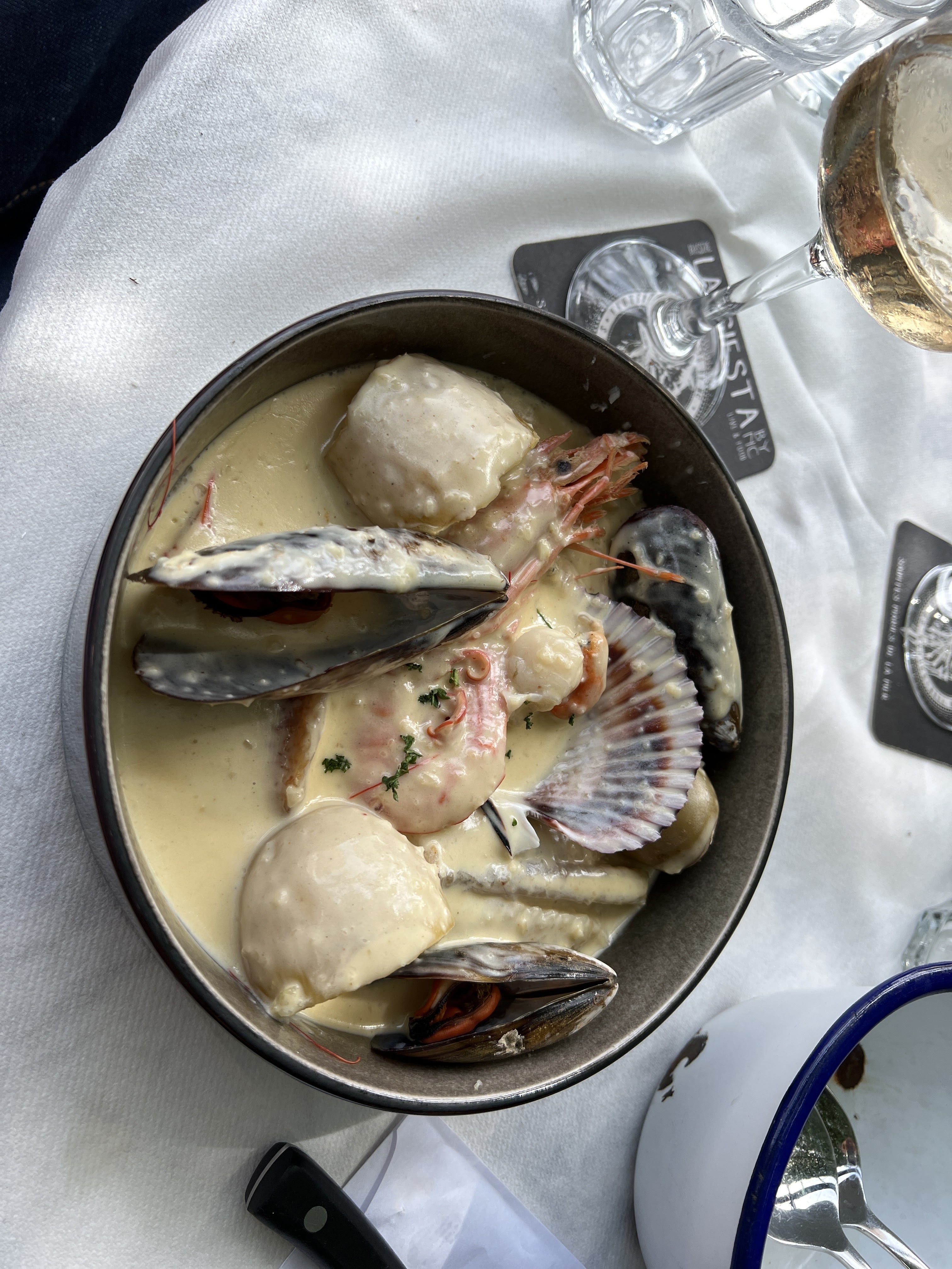 Nous avons passer une agréable soirée, malgré le faite d'arriver un peut tard un service super rapide et très bon qui plus est, les enfants était vraiment content , le groupe de musique était au top la musique pas trop forte idéal pour un repas en musique, et le service super , des serveurs attentionnés très gentil et à l'écoute ! J'aime beaucoup allez aux Sainte et je crois que nous avons trouver notre petit coin de paradis. Ps niveaux qualité prix rien à redire, des tellines en sauce excellente, de super hot dog pour les enfants et une savoureuse gardianne très bien assaisonner 💪👌👍