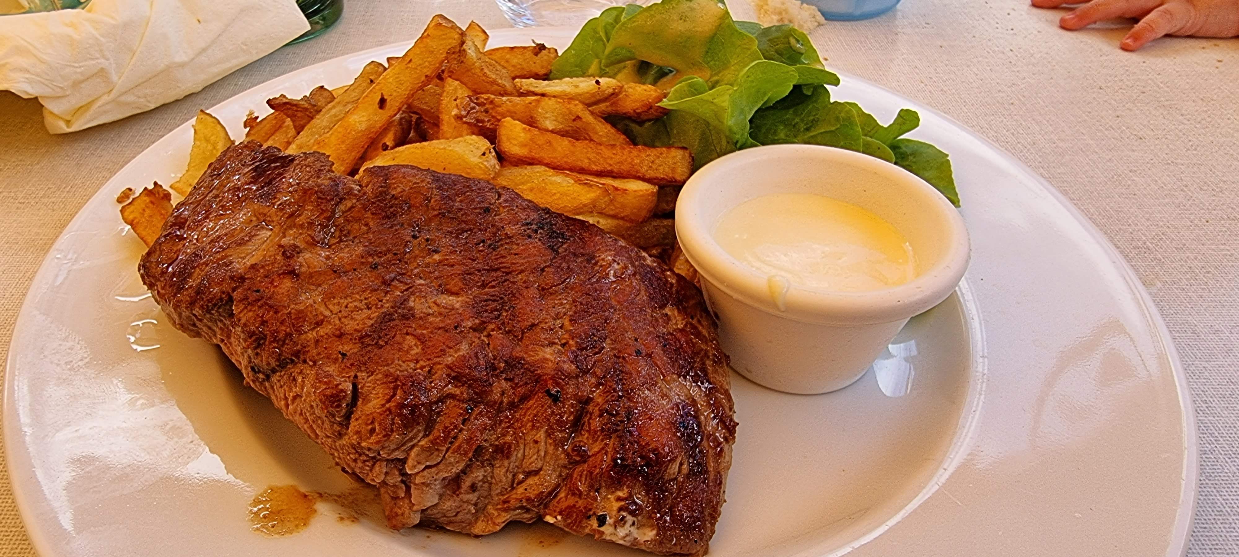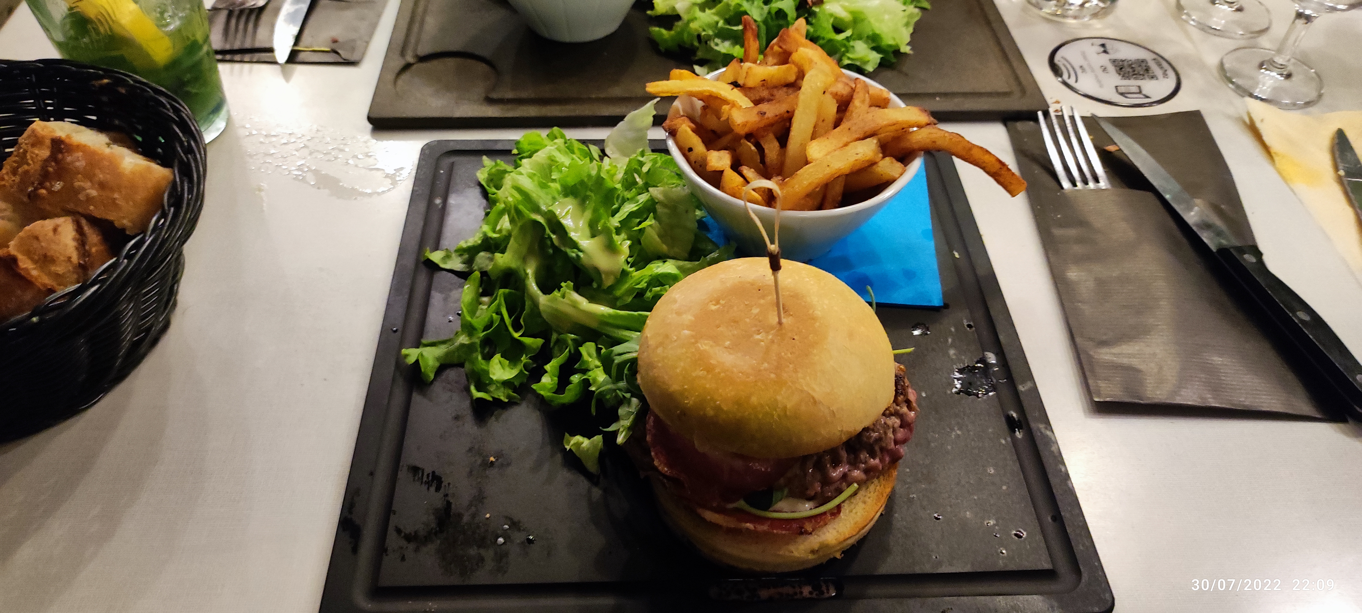 Personnel agréable et professionnel; vaste terrasse où la réservation est indispensable en été ; horaires d’ouverture assez larges. Un bémol : la quantité semble primer sur la qualité. Je ne recommande ni les travers de porc, ni la brochette de bœuf et encore moins le saumon. On sort de table avec une impression de satiété mais le plaisir n’est pas au rendez-vous Ce n’était pas un bon jour; peut-être aurais-je dû me cantonner à un burger ou à une andouillette, mais dans ce cas on ne parle plus de cuisine de terroir ! Rendons à César ce qui lui appartient, les frites sont très honnêtes.