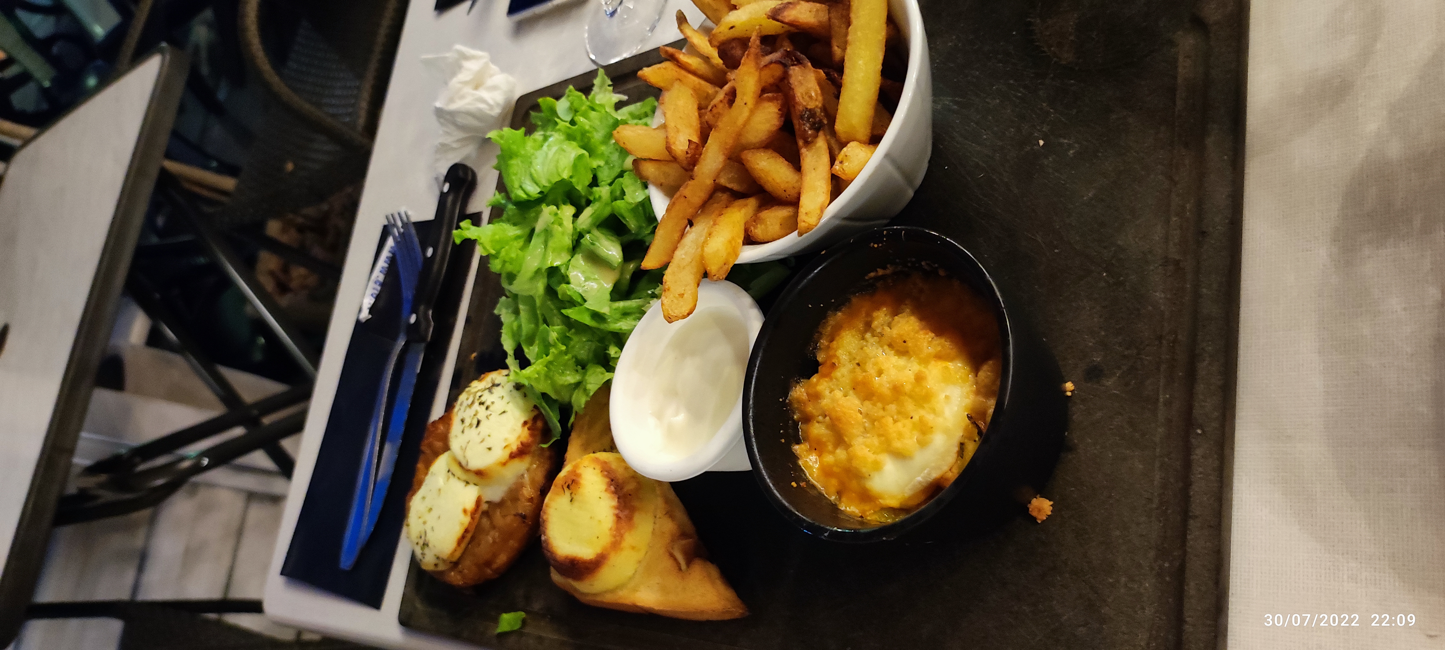 Beaucoup d'affluence en ce Samedi 27 Août 2022 et cela se ressent sur l'accueil. Le personnel pas très agréable Contrairement à ce qui est indiqué sur la carte, les frites ne sont plus faites maisons. Très grasse et par fraîche . Le service très devant !!!!!! La serveuse pas très aimable. 20 CT pour une rondelle de citron, avec pleins de pépins. C'est abuser quand même Alors que nous venons régulièrement. C'est bien dommage !!!!!!!!! Il n'y à que le profil qui compte Beaucoup de choses à revoir Très très déçu !!!!!!!! Je ne reviendrai pas.