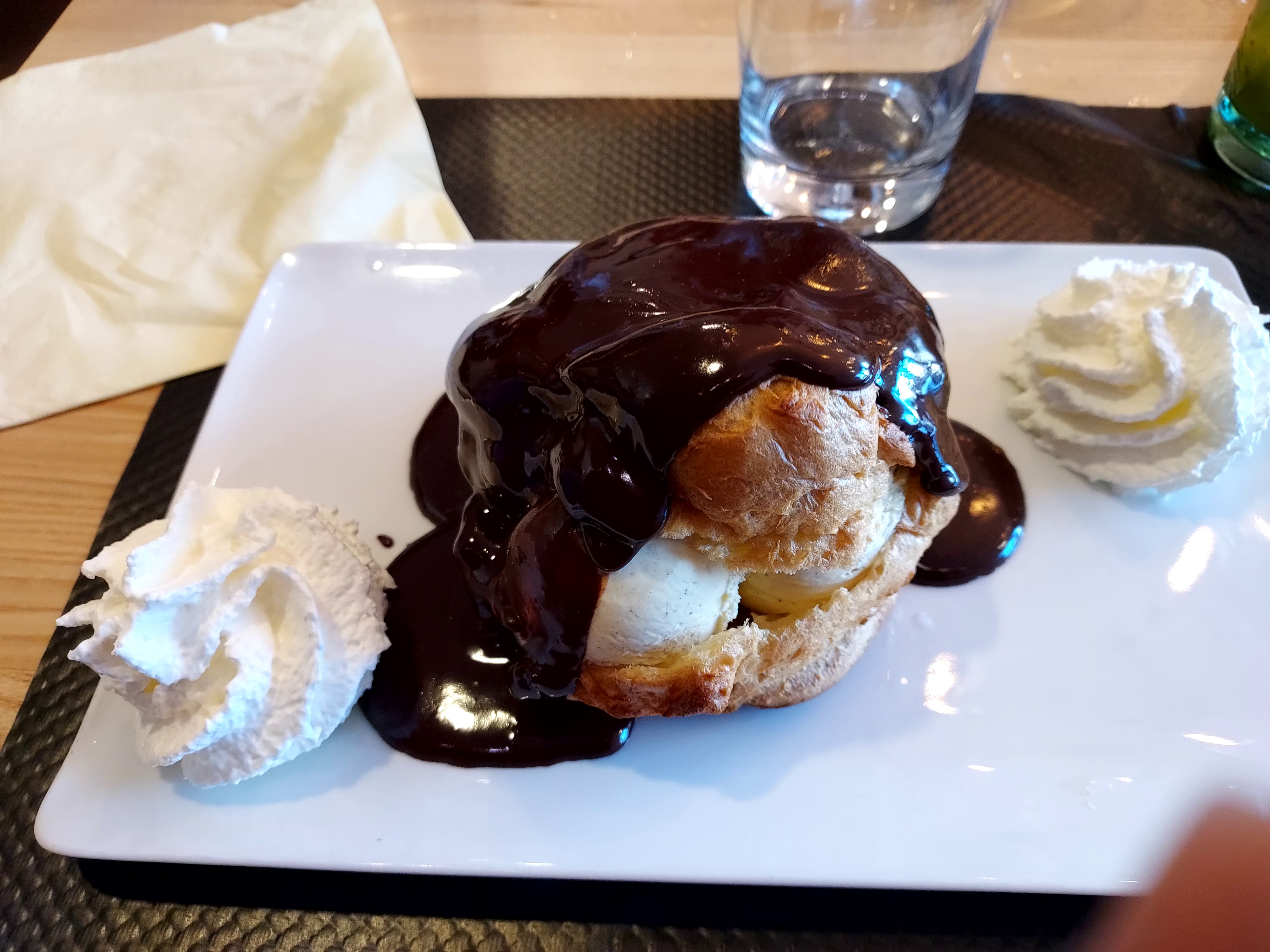Personnel sympa, cadre agréable, plats bon et copieux . (J'aime les profiteroles)