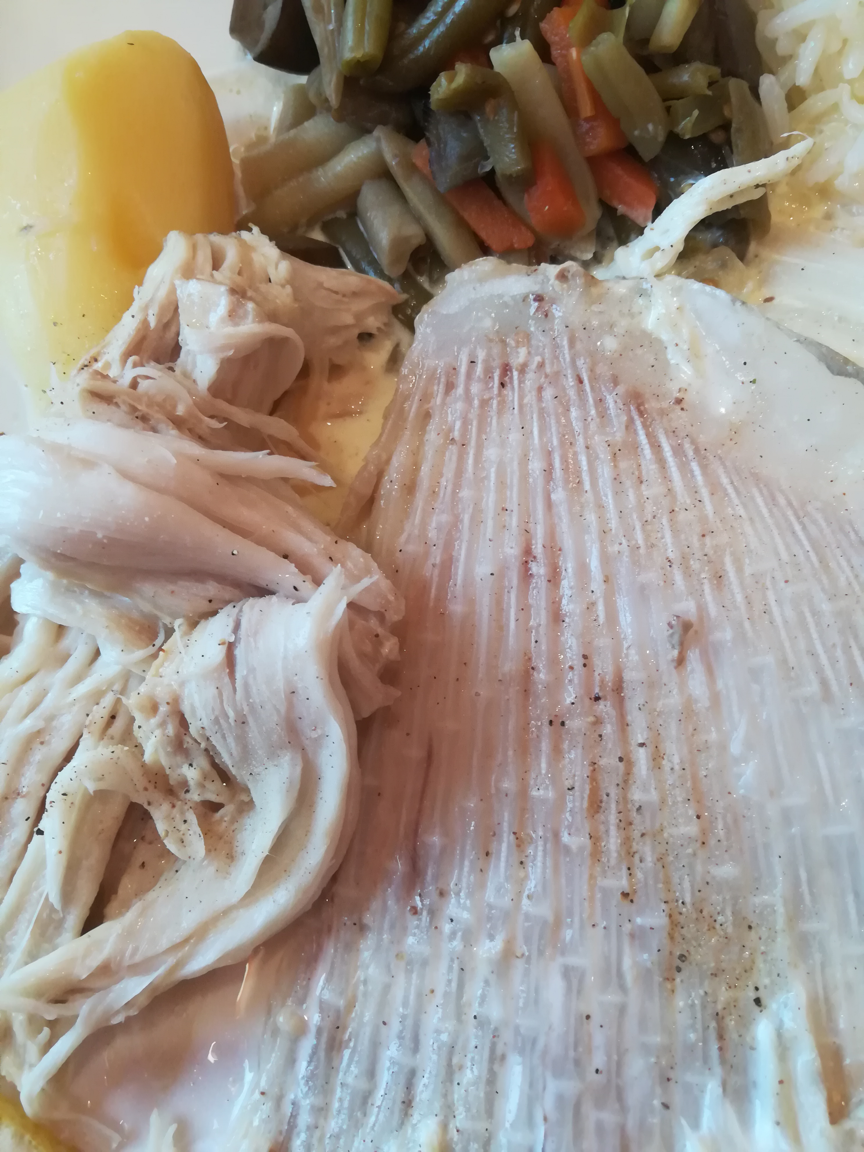 Plats surgelés, de la raie avec une sorte de sauce, le plat végétarien était composé d'une tomate fraiche et du reste de betteraves et macedoine en conserve de la laitue et carottes râpées d'un sachet. Le lendemain des moules marinières, petites avec une tranche d'oignon, les frites hyper grasses et molles... 1ère et dernière fois.