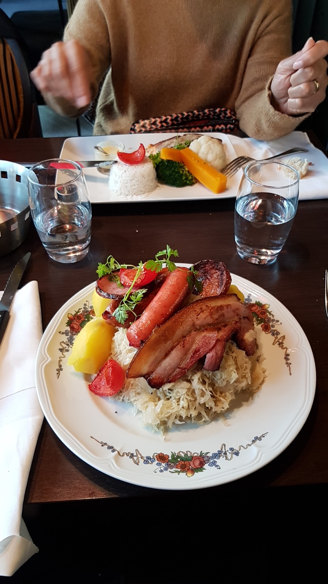 Accueil commercial, choucroute insipide ...servie dans un plat commun avec plusieurs propositions ( jarret,royale ), desserts à ne pas recommander sauf boules de glaces sans surprise. Tête de la serveuse indescriptible lorsque nous lui avons demandé un doggy bag !....les restes vous sont si chers ? Franchement très déçue.