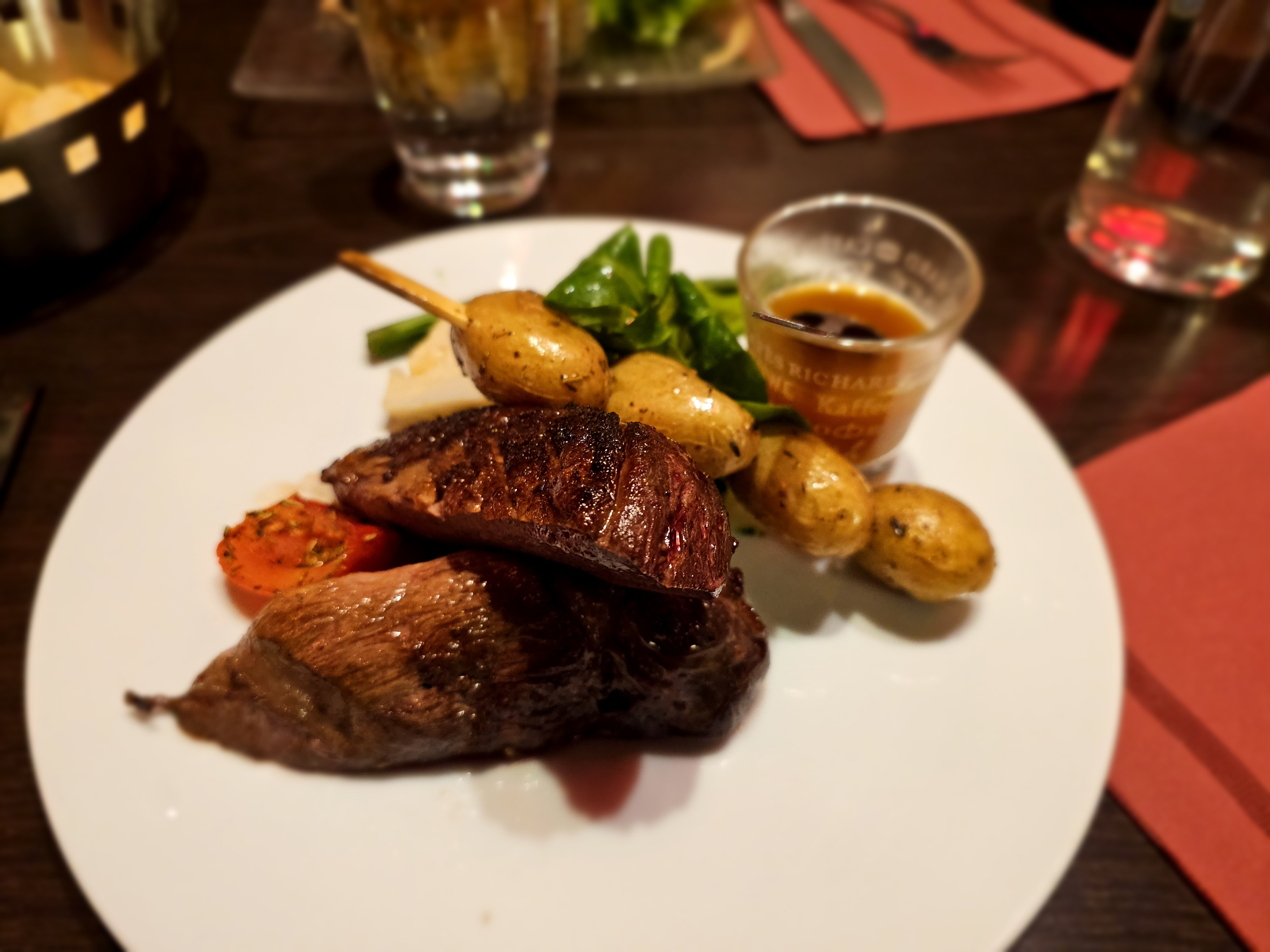 Très jolie restaurant, service et serveurs impeccable. Prix sans excès mais quand même. Regarder les quelques plats servis en photos (miam-miam) le jaret -;))) et le plus très bonne soirée entre amis.