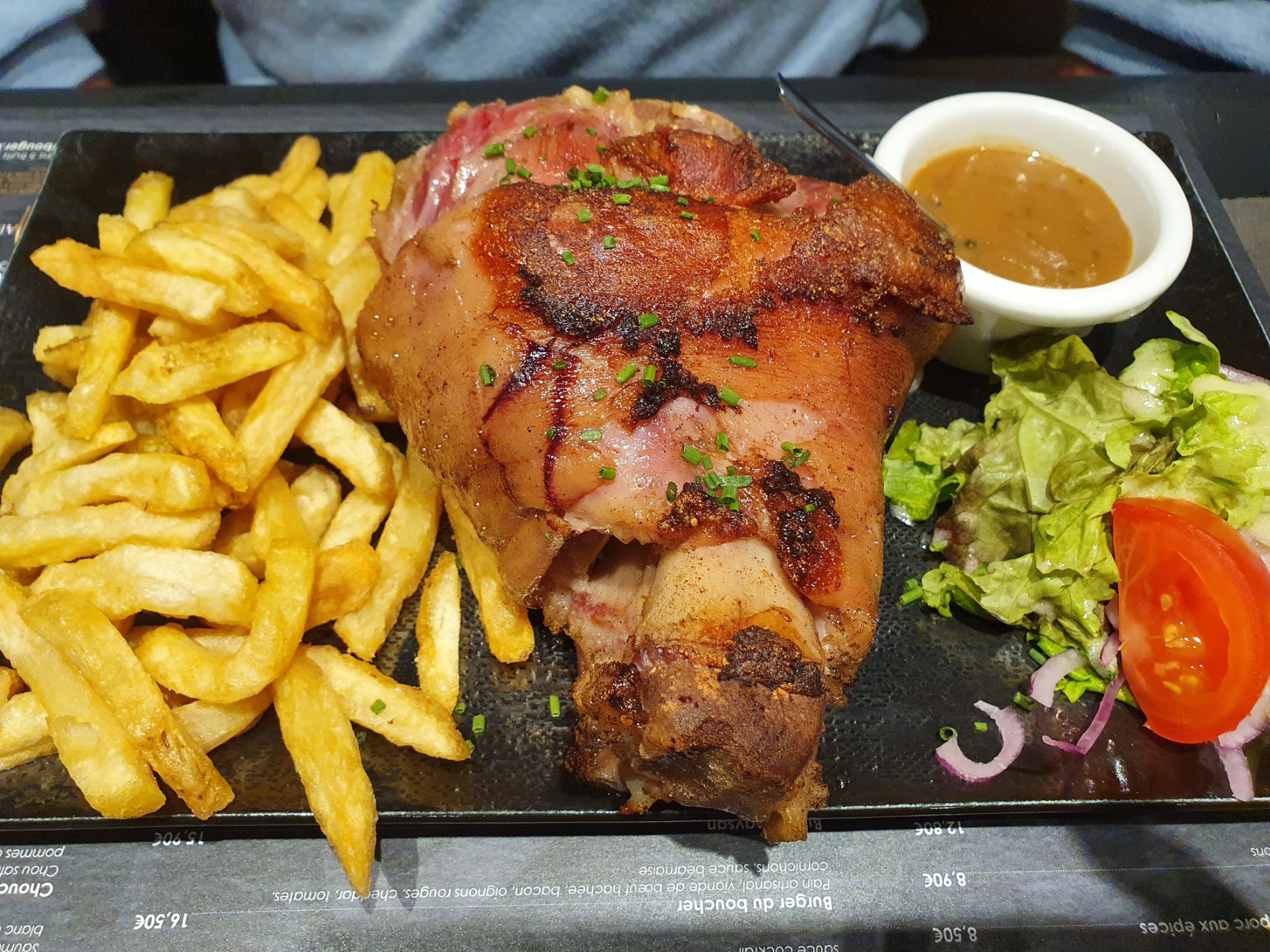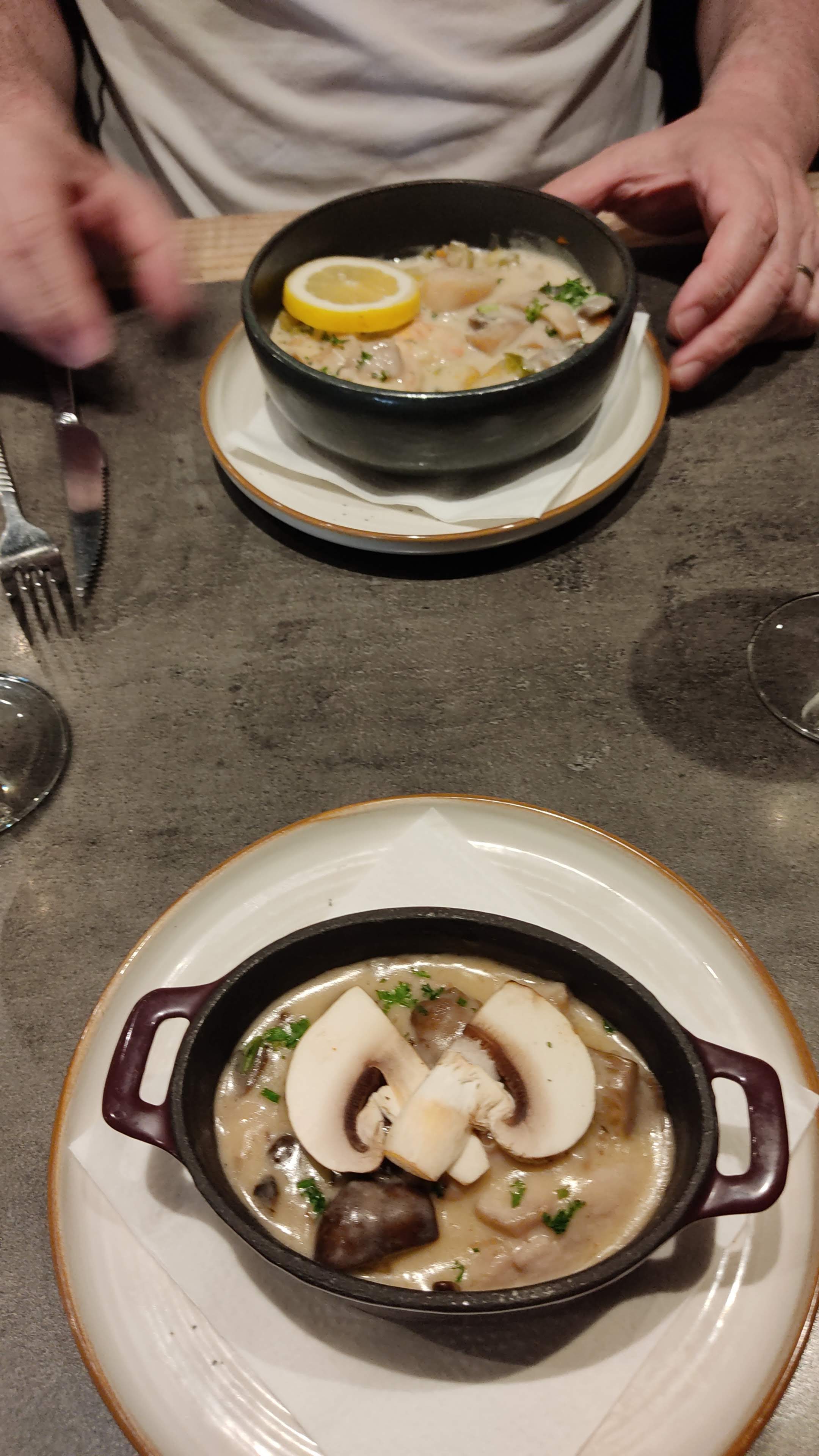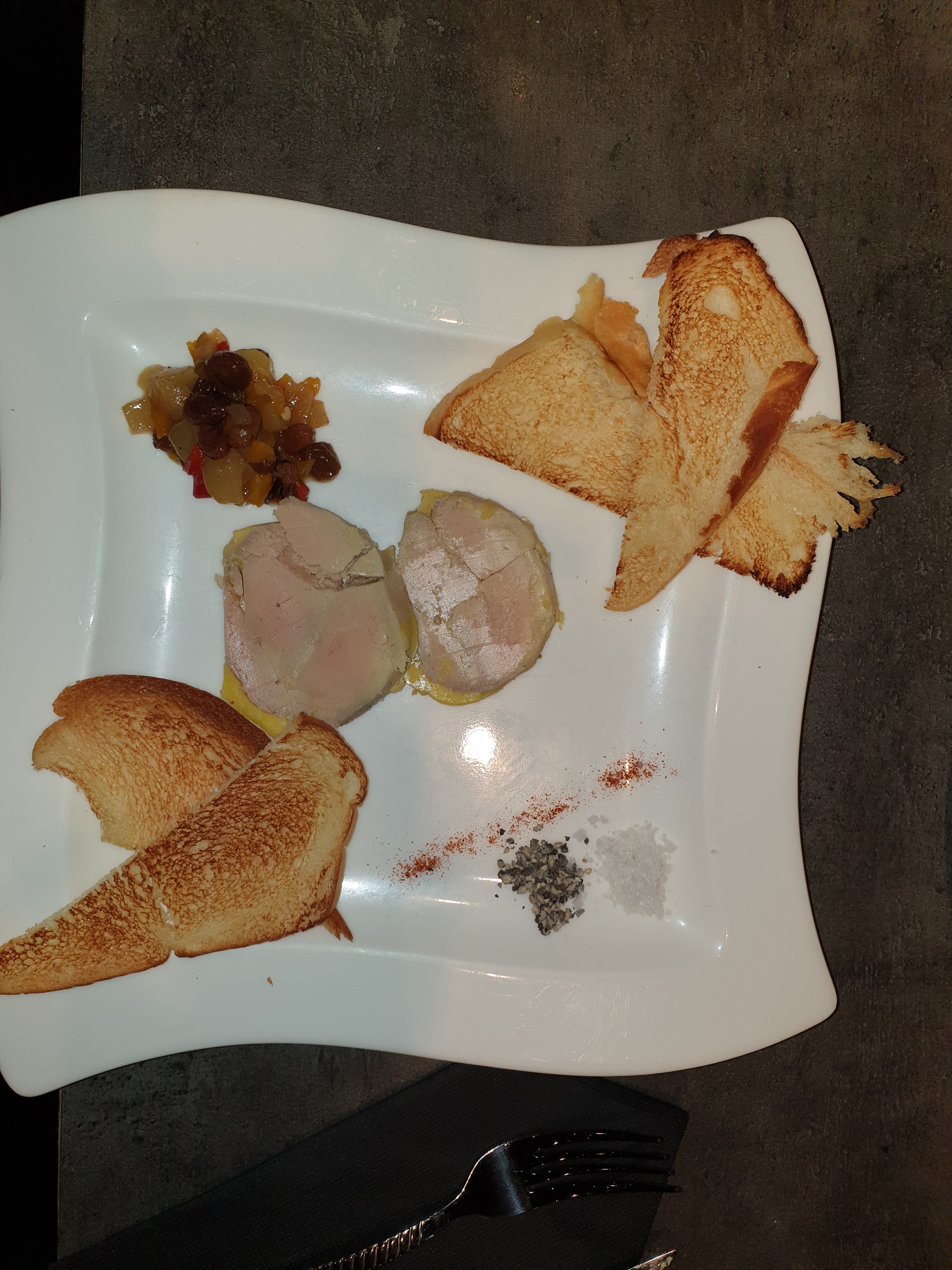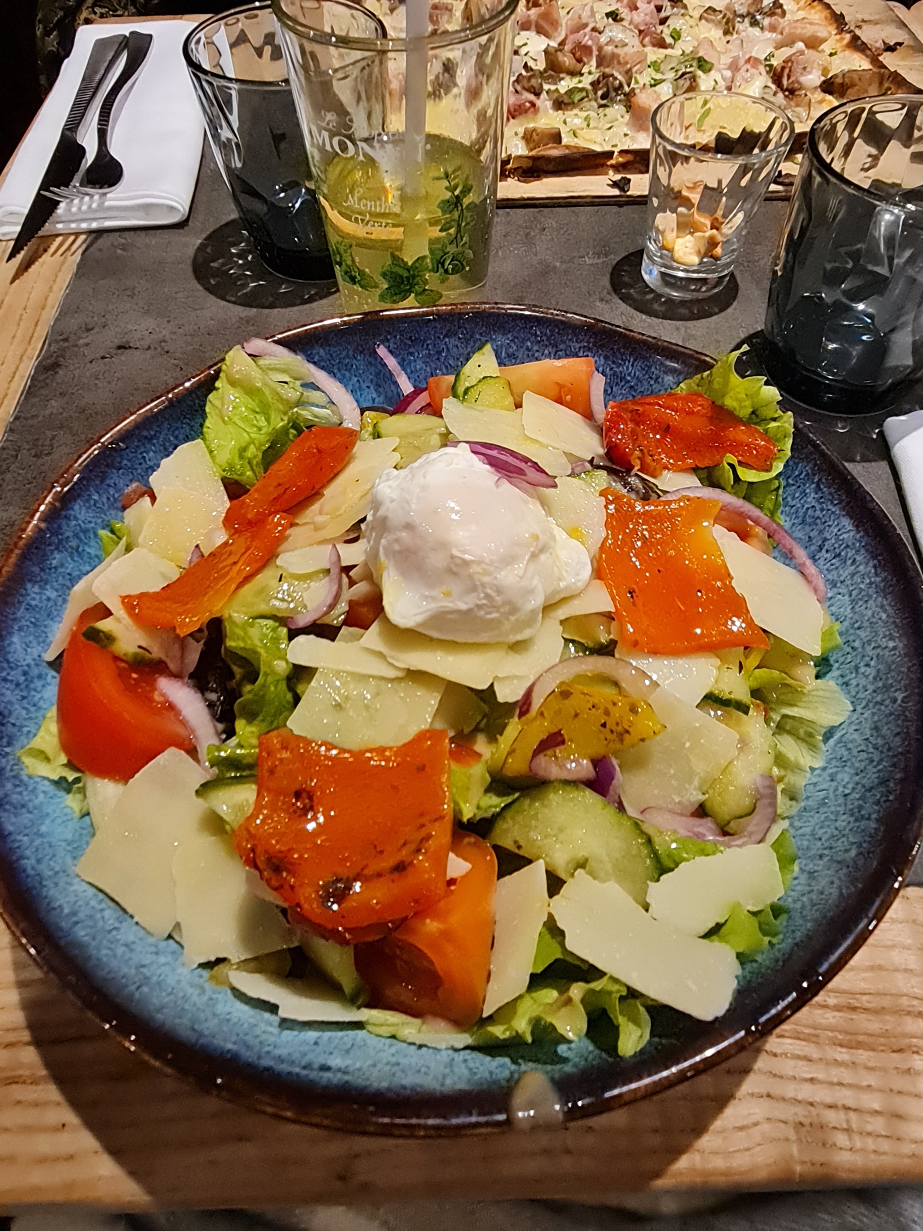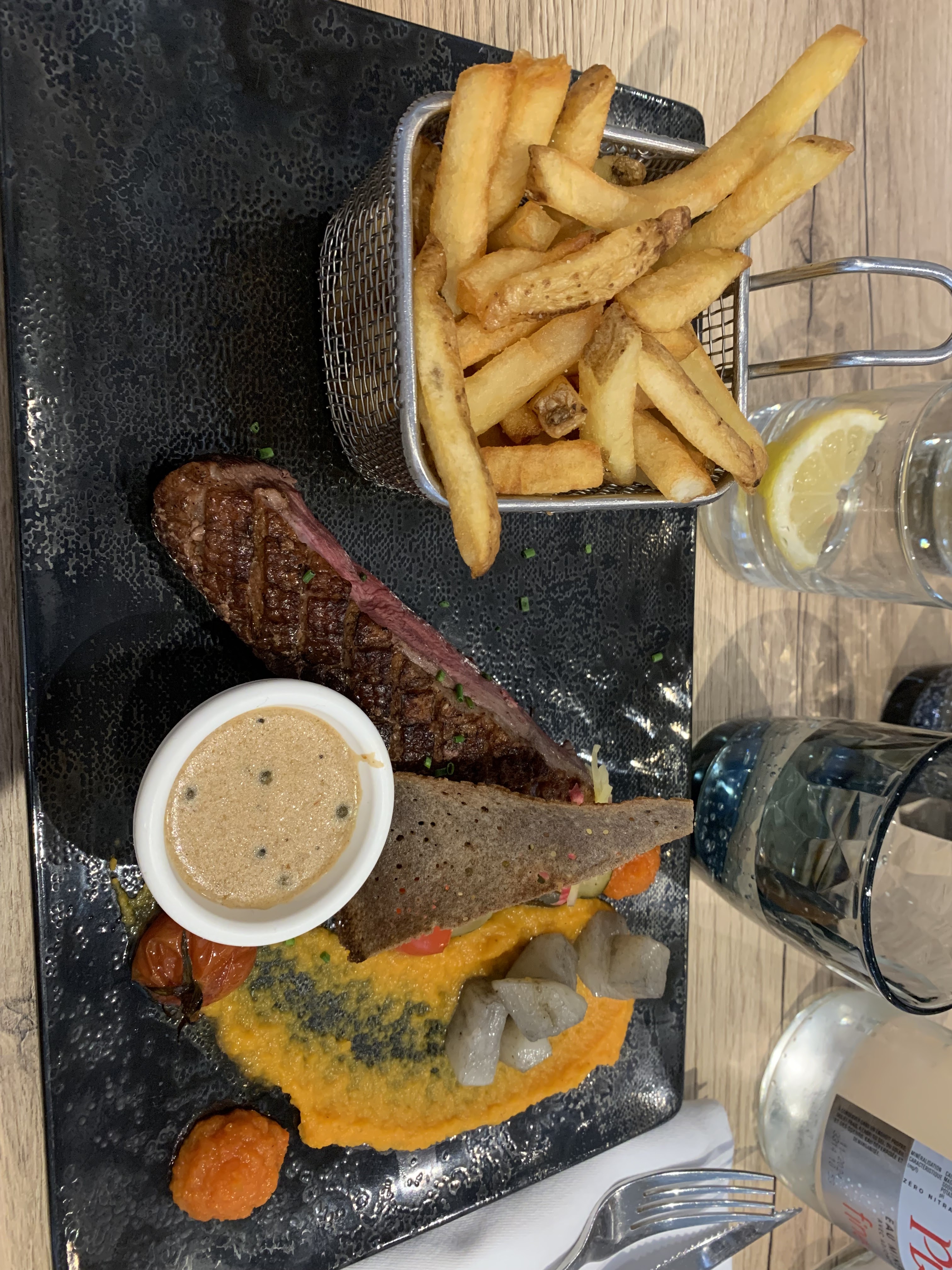 Entrées, plat, dessert bien, tarifs un peut trop excessif.. Bémol du repas, une cliente et son mari installé juste à côté de nous qui ont gâcher tout notre repas, il n’y avait q’une chaise d’écart entre nous, la dame se levait carrément pour regarder dans nos assiettes ! Il a fallu lui dire les choses plusieurs fois et sincèrement ça a vraiment gâcher notre repas, apparement une habitué, il aurait été sympa de mettre une disante plus conséquente entre nous et même des autres clients afin qu’elle ne gâche pas à l’avenir le repas de d’autres personnes qui veulent manger tranquillement sans connaître toute la vie de la personne .