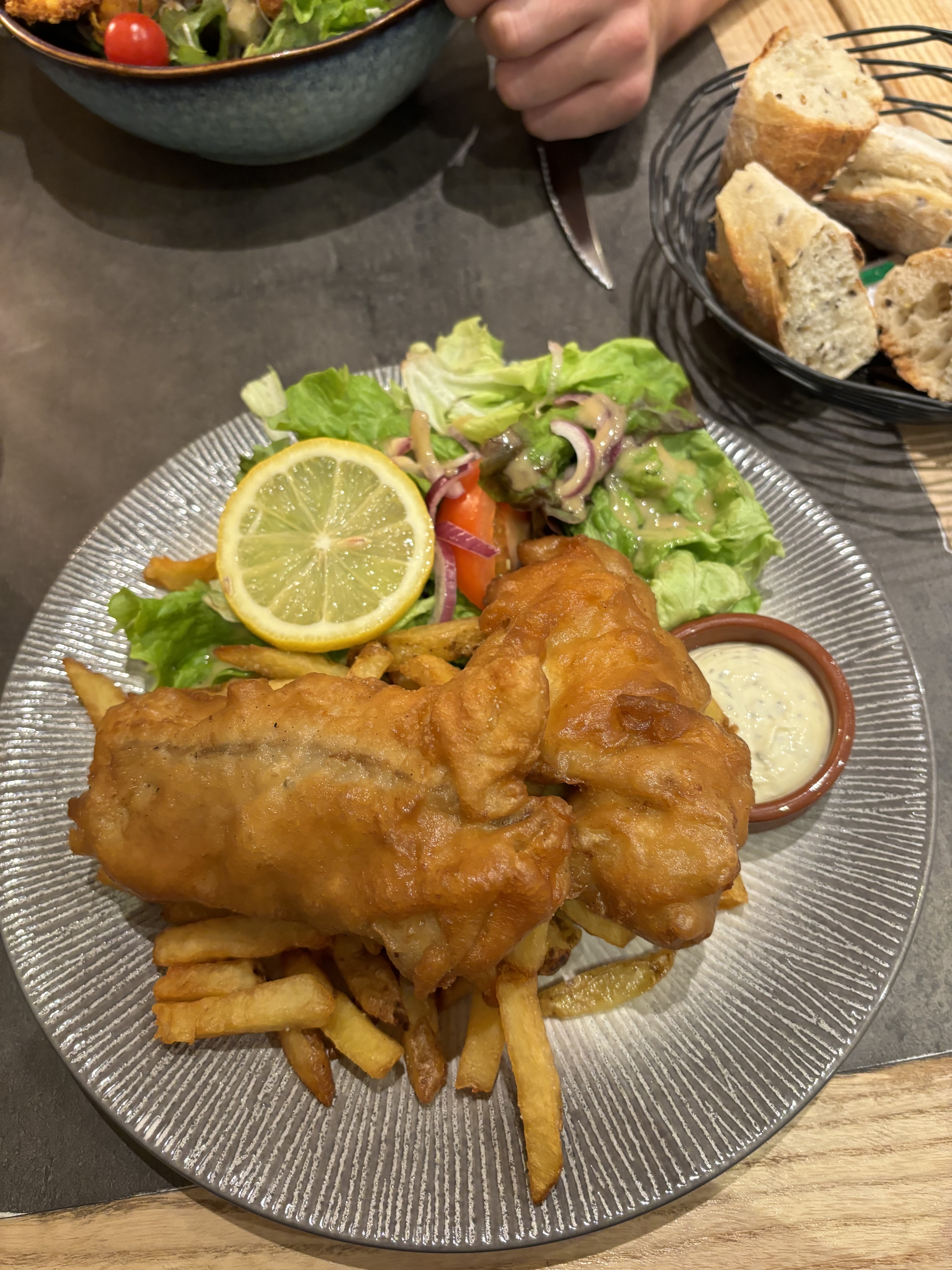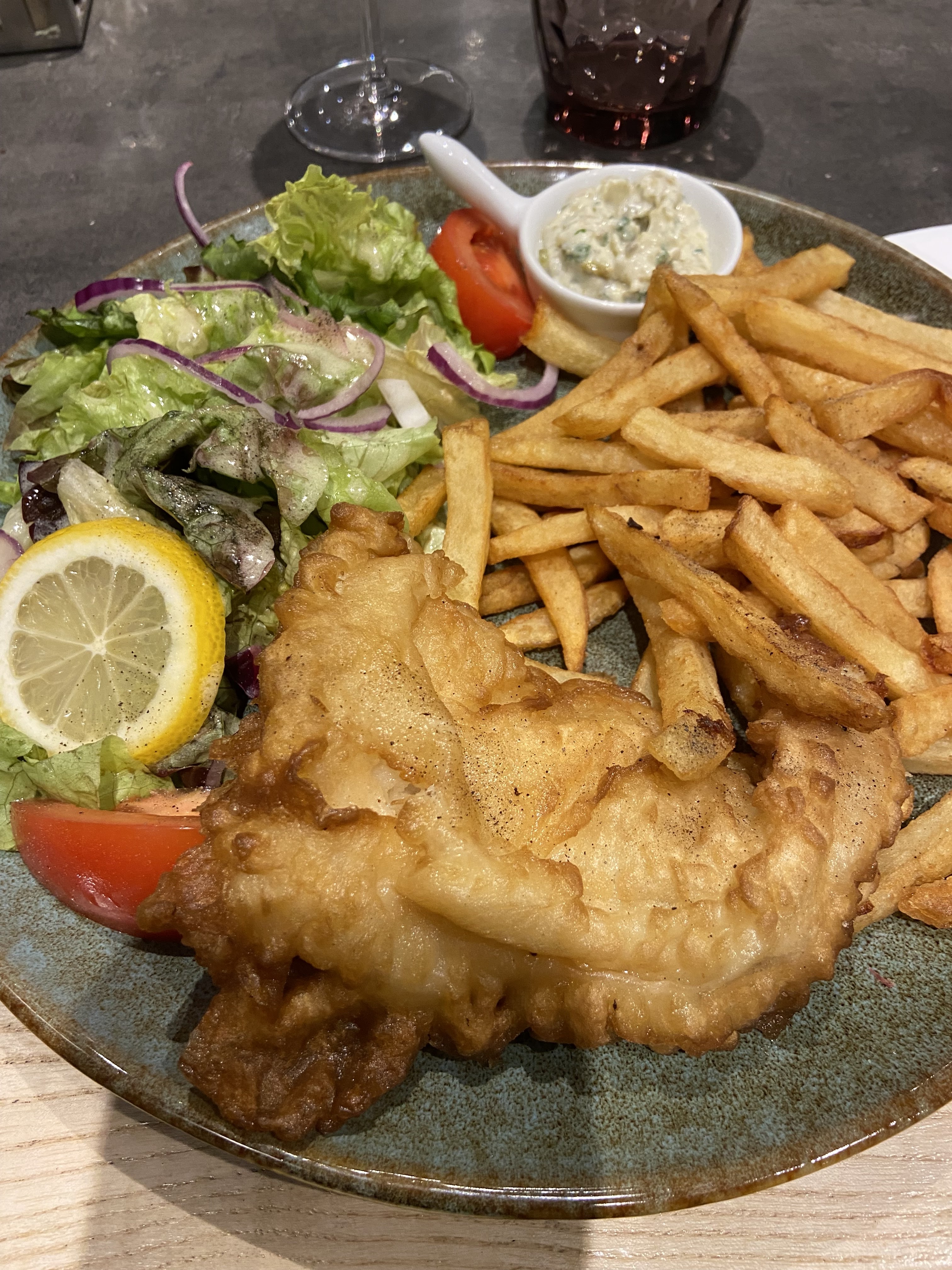 Rien d’exceptionnel. Un fish and chips banal pour un prix trop haut. De plus la moutarde est périmée.