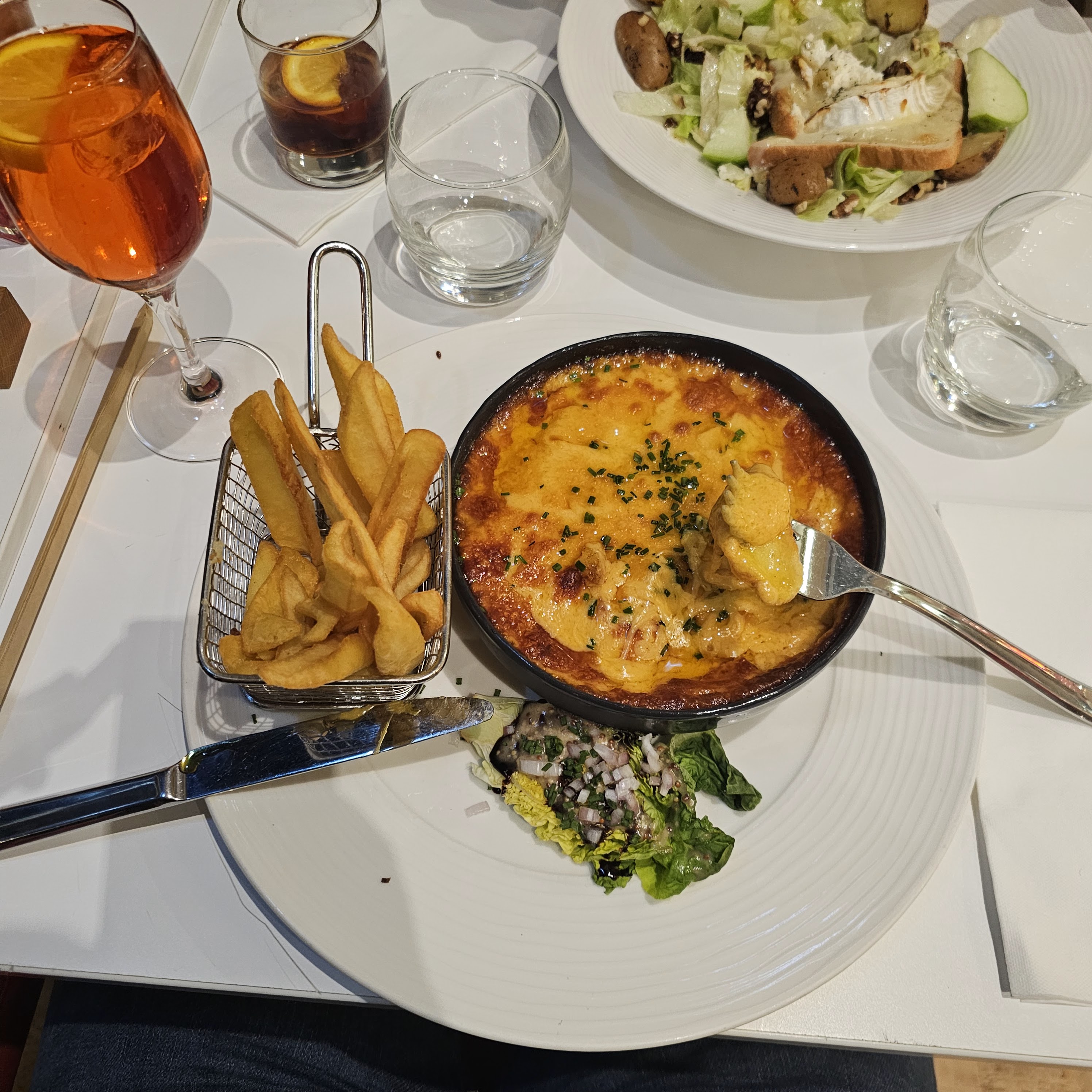 Pas encore pu manger, plus de 40 minutes sont passées depuis que nous avons été installés, le serveur est finalement arrivé il y a dix minutes pour prendre notre commande. Devant notre mécontentement suite à nos 30 minutes d’attente sans que personne ne daigne venir nous servir, aucune réaction du serveur, aucune excuse ni même un air gêné, nous commandons tout de même. Nous voilà enfin servis, les deux plats sont à peine chauds les frites a peine cuites. Nous qui espérions que la qualité des plats rehausserait la mauvaise impression de l’acceuil, nous avons été déçus. Adresse à éviter.
