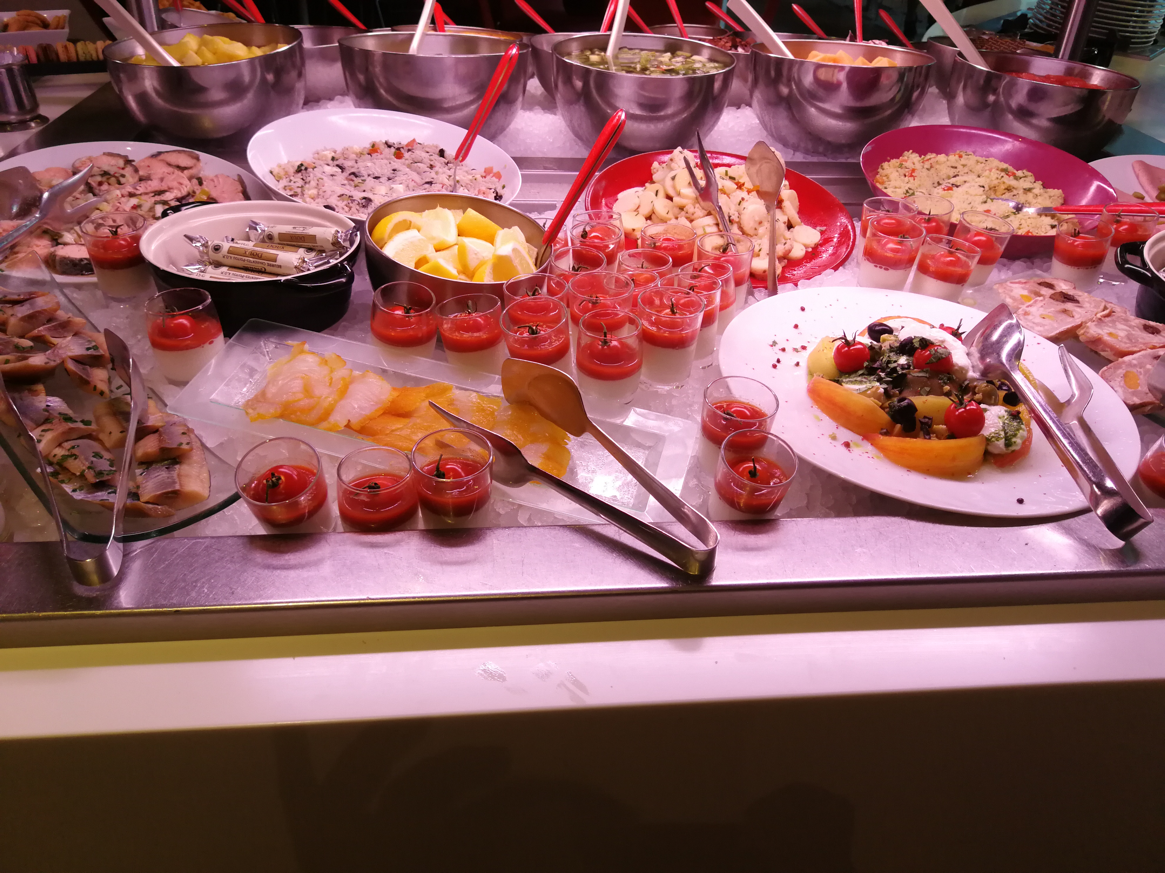 Extrêmement déçue par le buffet : charcuterie et salade en entrée, trois fromages, quelques fruits et quelques verrines en dessert. Rien n'a l'air frais, plutôt sorti du supermarché d'à côté