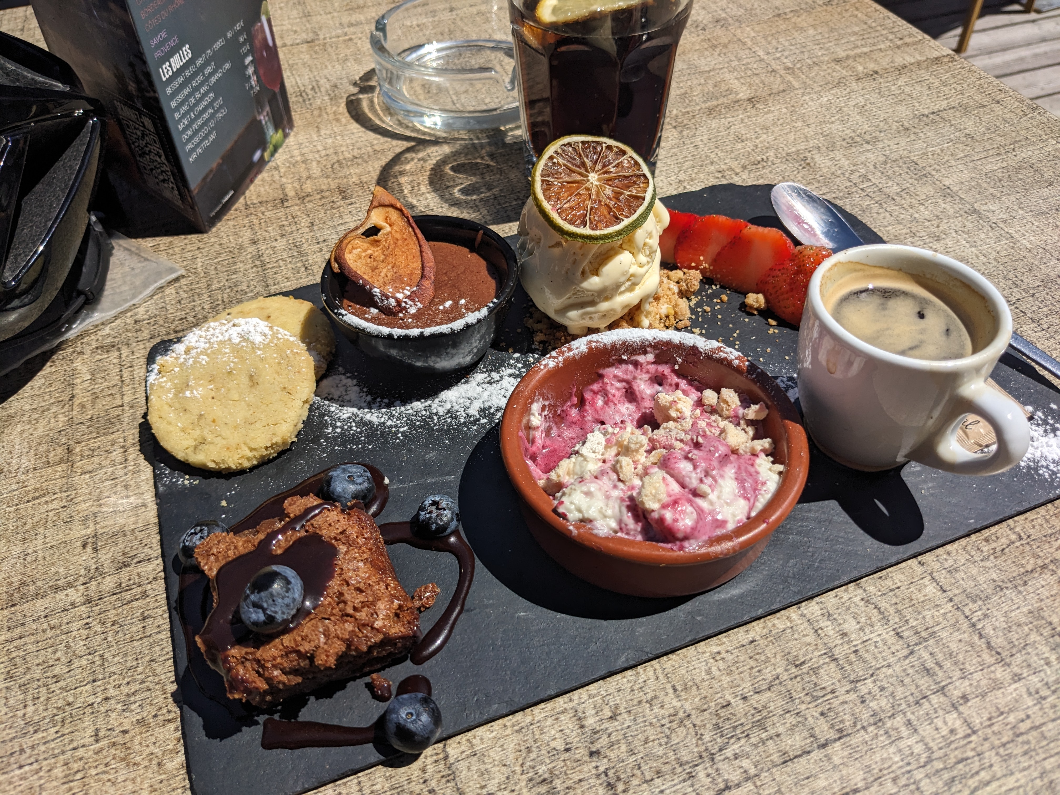 Pause café gourmand durant une sortie vélo. Sans trop savoir ce que l'on va nous servir le prix peut faire un peu hésiter, une fois servi et manger il est correct et c'était bon.