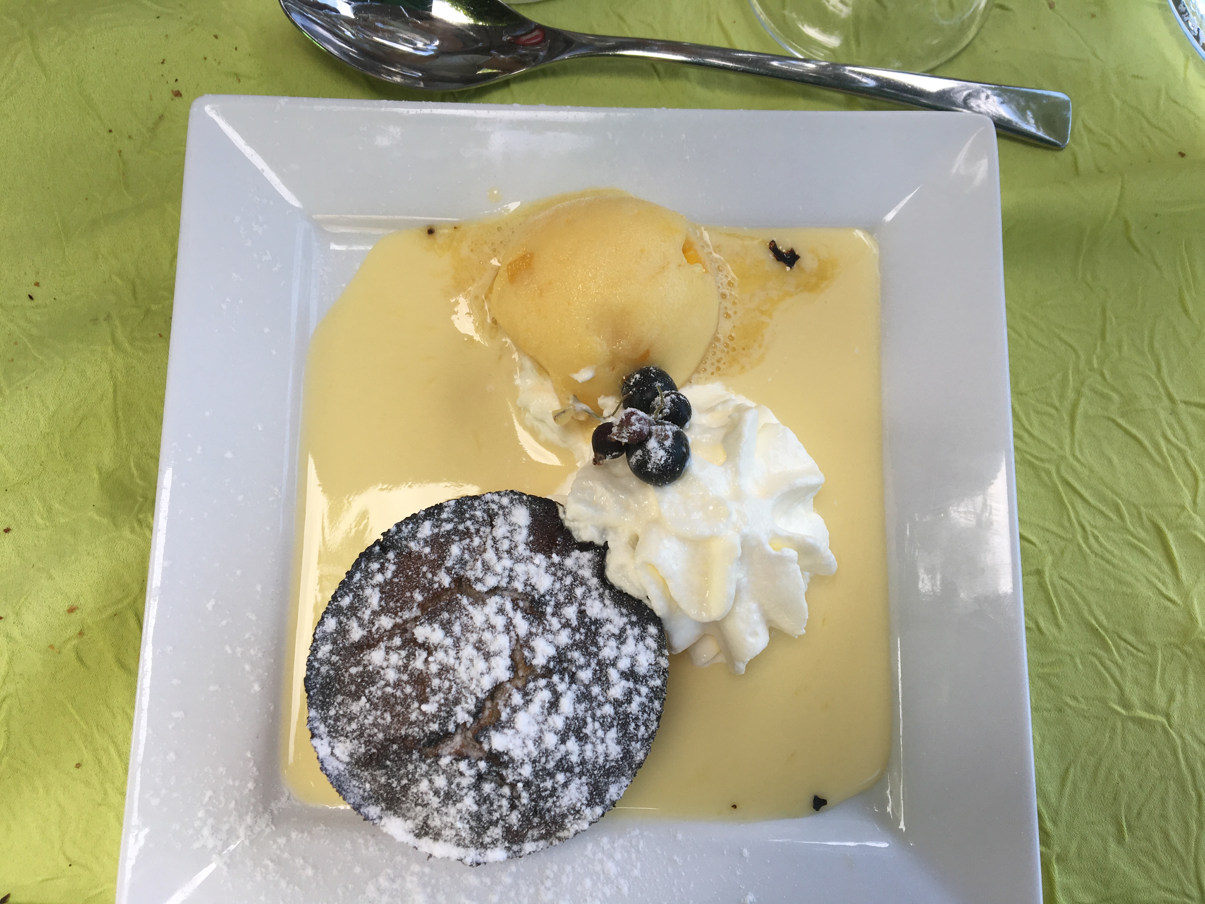 Cadre enchanteur , menu à 36 E plus 6E pour la succulente brochette MAIS desserts surgelés METRO, on reconnaît le fameux moelleux au chocolat et sa crème anglaise servi dans les mauvais restaus ainsi que la tartelette citron meringuée , le tout industriels et surgelés ! inadmissible pour le prix; le chef ne doit pas être pâtissier ce qui peut se concevoir mais ils devraient se fournir chez un pâtissier du coin , c est fort regrettable, d'où mes 2 étoiles, Mais il faut bien rentabiliser les travaux de réno !