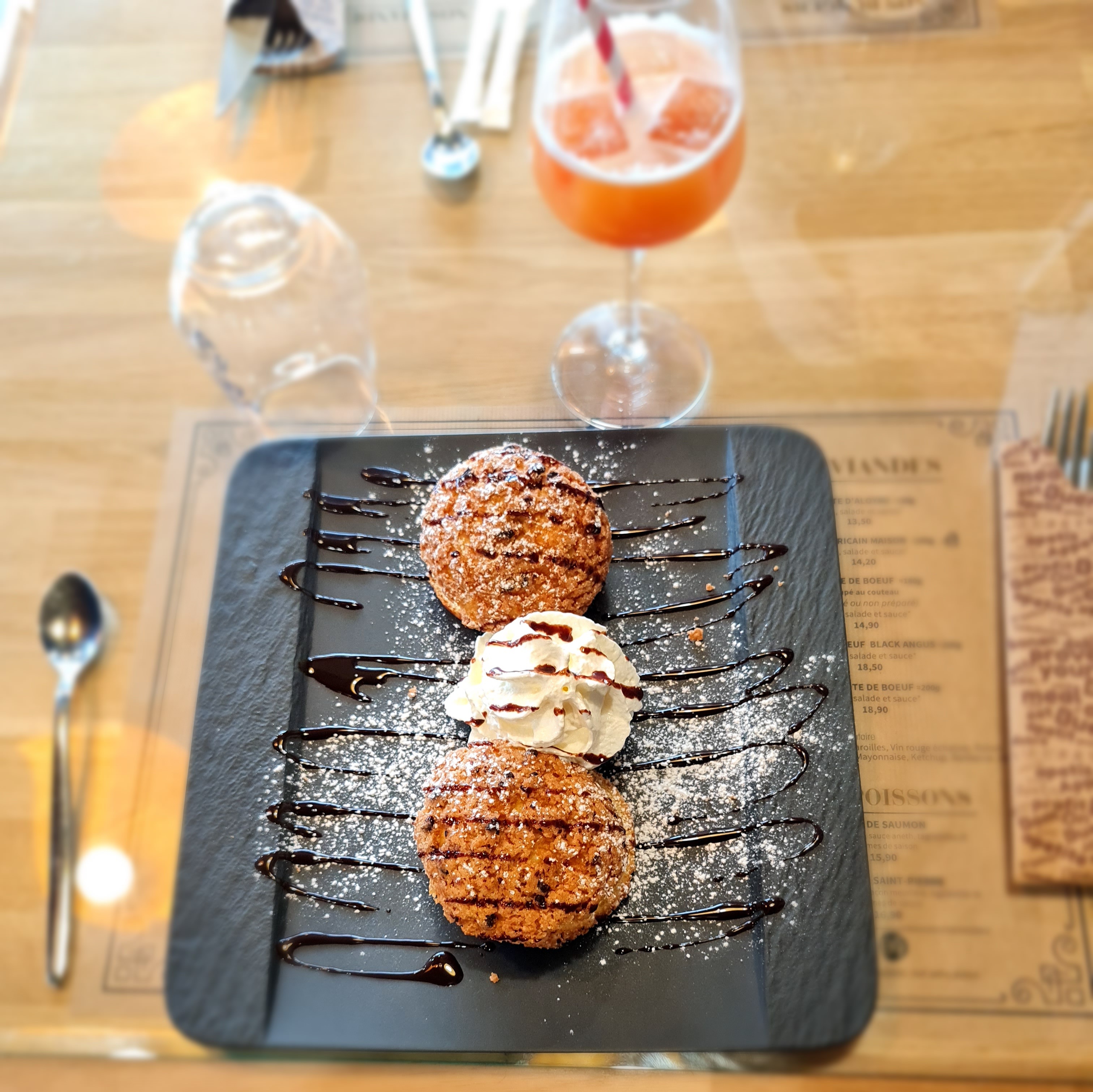 Accueil au top. Nous avons passé une agréable soirée ! Nous avions réservé le boulodrome 👌Mon conjoint et mes amis ont adoré leur pièce de viande. Ma pizza pour ma part était correcte. Petite bémol pour la gaufres beaucoup trop dure mais on nous a proposé de la remplacer.