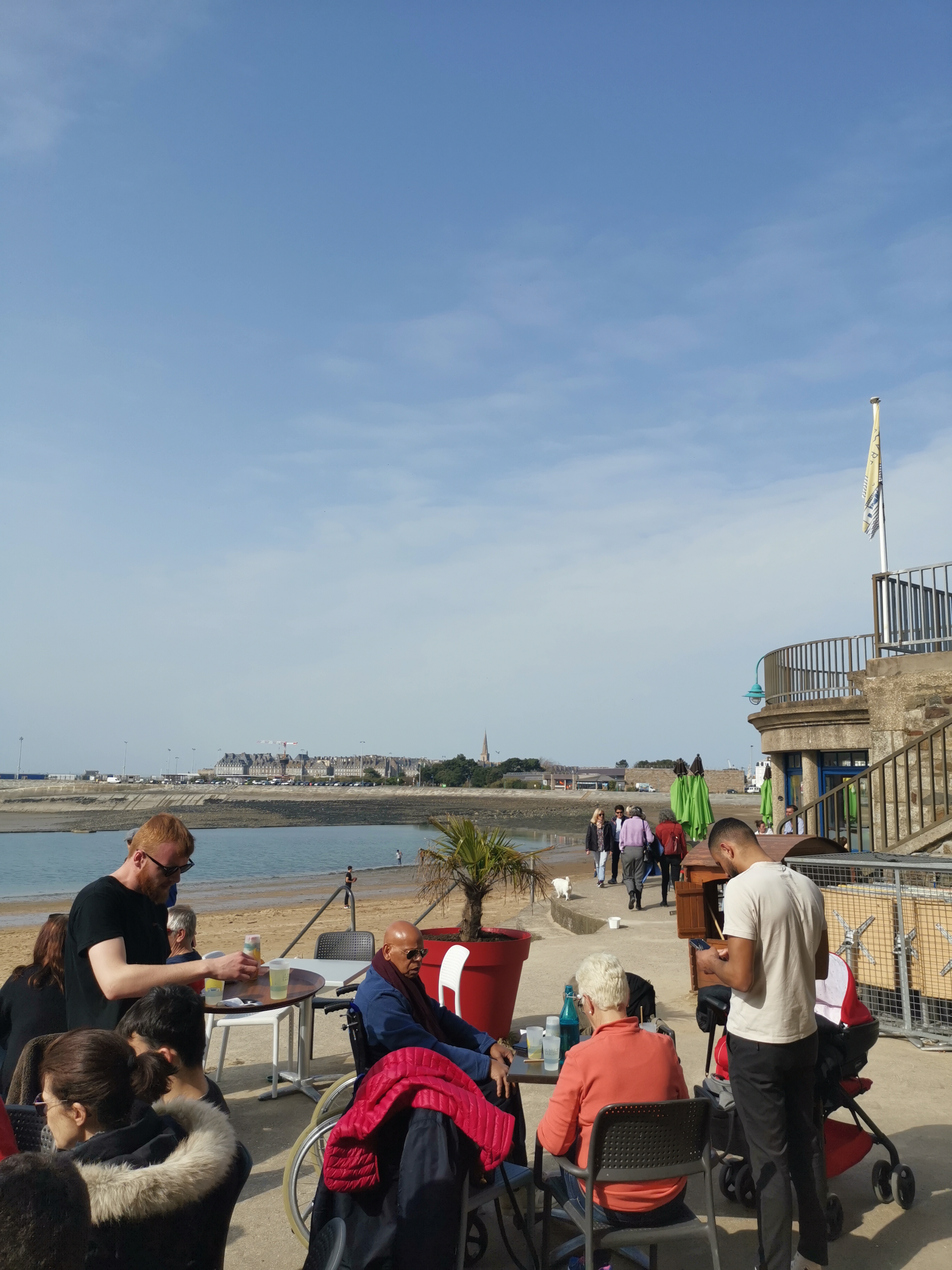 Bon endroit panoramique sur St Malo et le port des Sablons + plage au pied.Café 2€ pour ce beau spectacle.