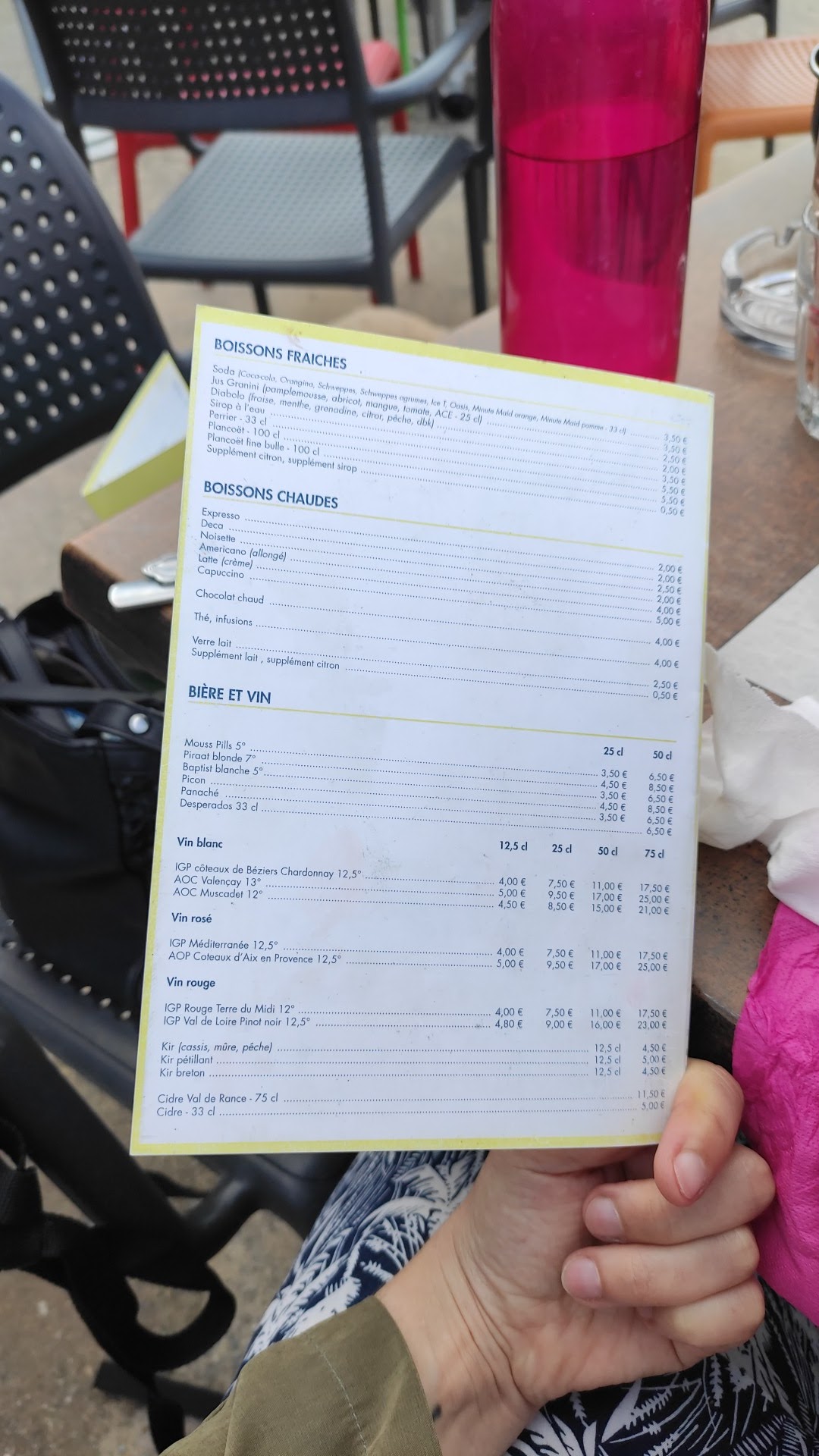 Nous demandons à un jeune homme si nous pouvons boire un verre et il nous répond bien sûr. Au bour de 15 mn personne ne prend notre commande donc nous sommes répartis. Et voilà
