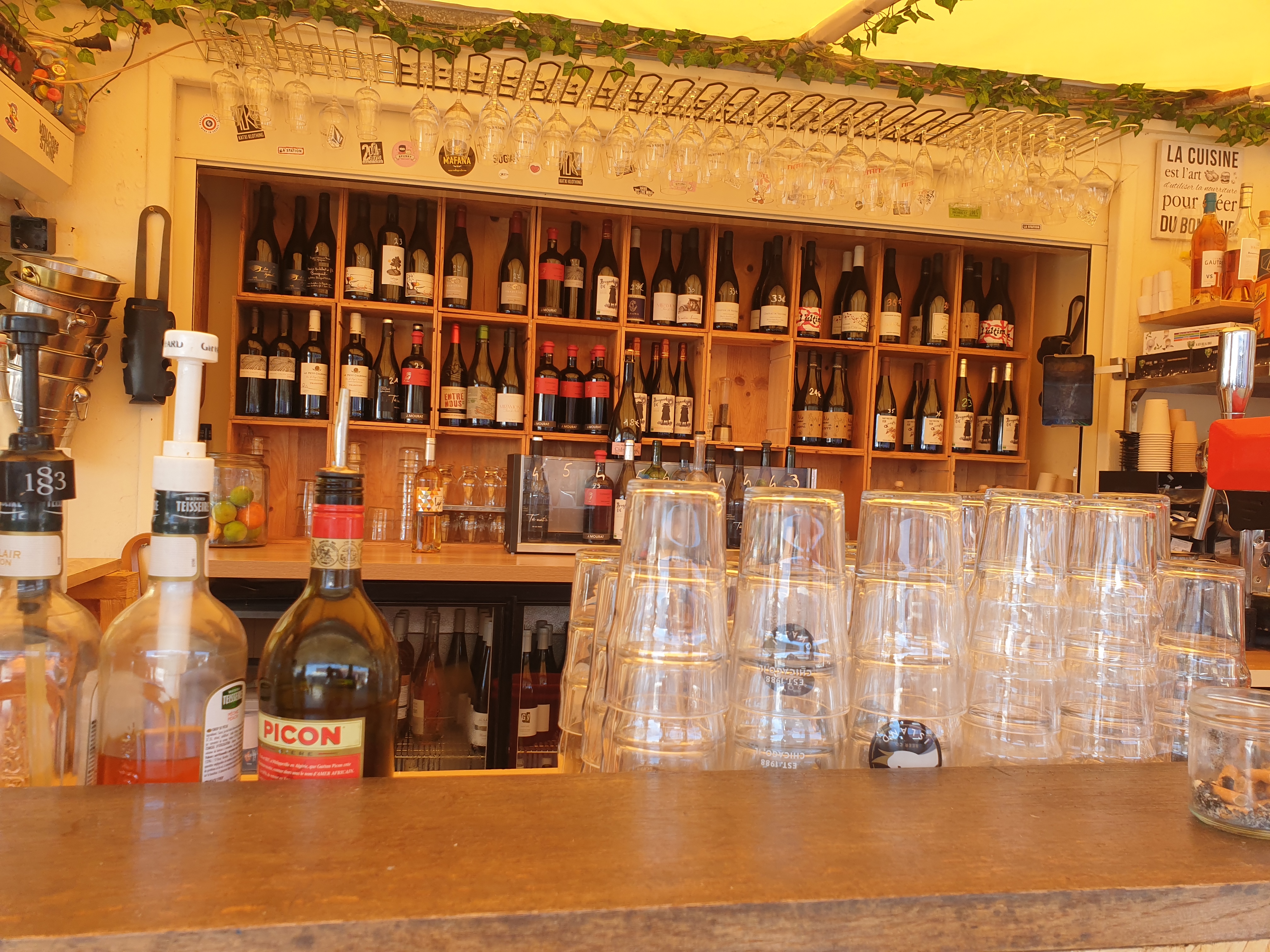 Endroit sympa les prix sont corrects. Largeur choix de vins et bonne musique.