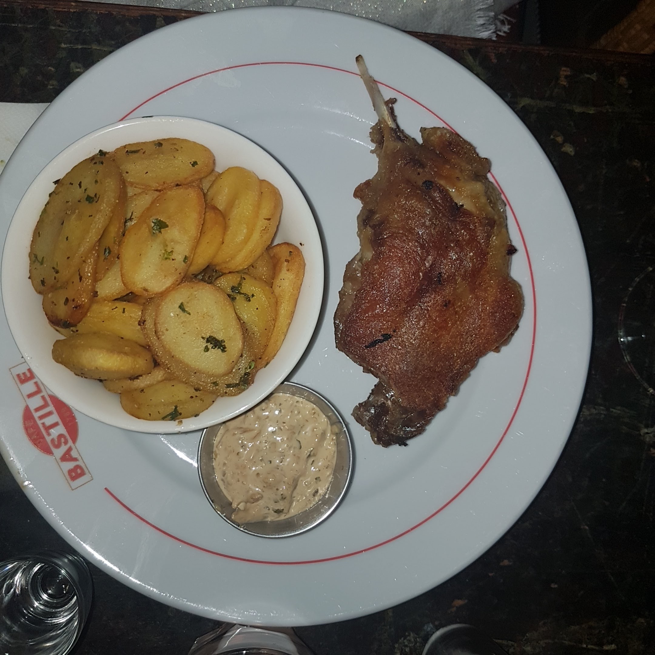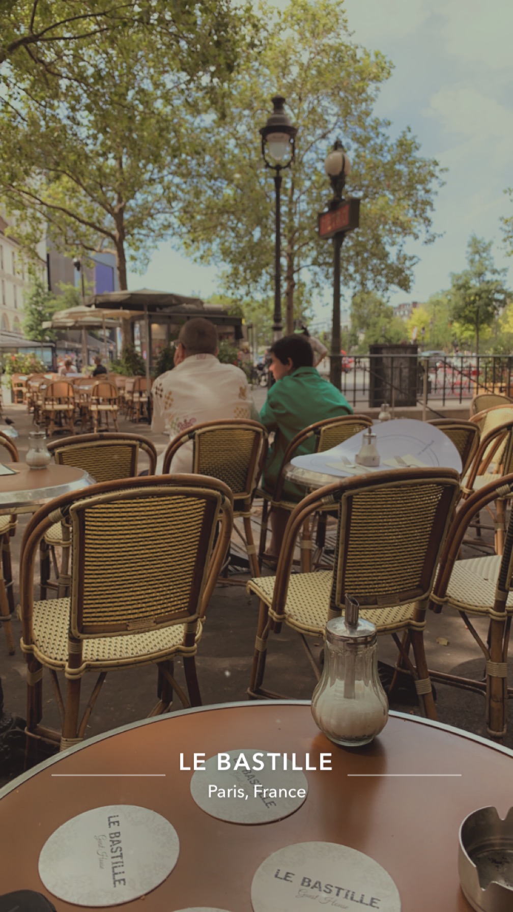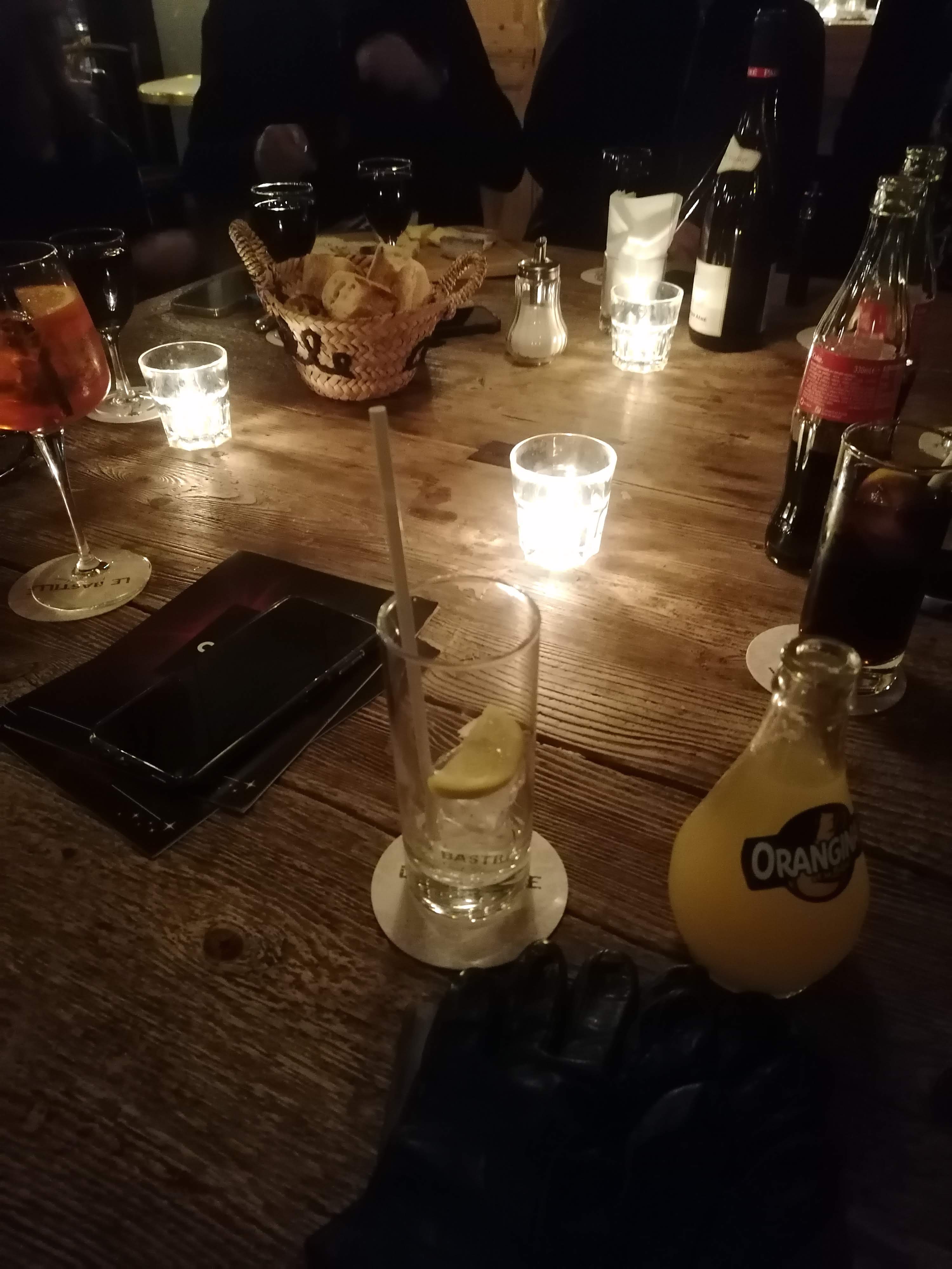 Le Bastille, grand bar de la place juste à la sortie du métro Bastille. Ce soir serveur sympathique. Cependant très très chère. Desperados simple 9 euros une infusion 6,5 euros. Terrasse agréable ce soir car très peu de monde en cette nuit d’été. Terrasse très bien séparée de la rue par une protection transparente c’est très bien. En revanche si un jour/soir il y a foule les tables et chaises sont toutes collées pas de distanciation de sécurité en cette période de crise sanitaire. En cas de foule c’est les uns sur les autres « à vos risques et périls ». Les parasols géants sur la terrasse sont équipés de petites ampoules 💡 mais attention certaines ampoules sont cassées cela donne un aspect négligé dommage. Carte moderne avec système de photo scanner pour soit disant le COVID 19. Bon ben vous avez intérêt d’être équipé d’un téléphone androïde ou smartphone, et d’avoir de la batterie. Si papy veut aller boire un coup avec son téléphone datant d’avant guerre c’est foutu pas de coup 😂😂😂. Non je rigole je pense que le serveur fera le nécessaire pour le coup de papy. Desperados bien fraîche servi avec une belle rondelle de citron 🍋 humm