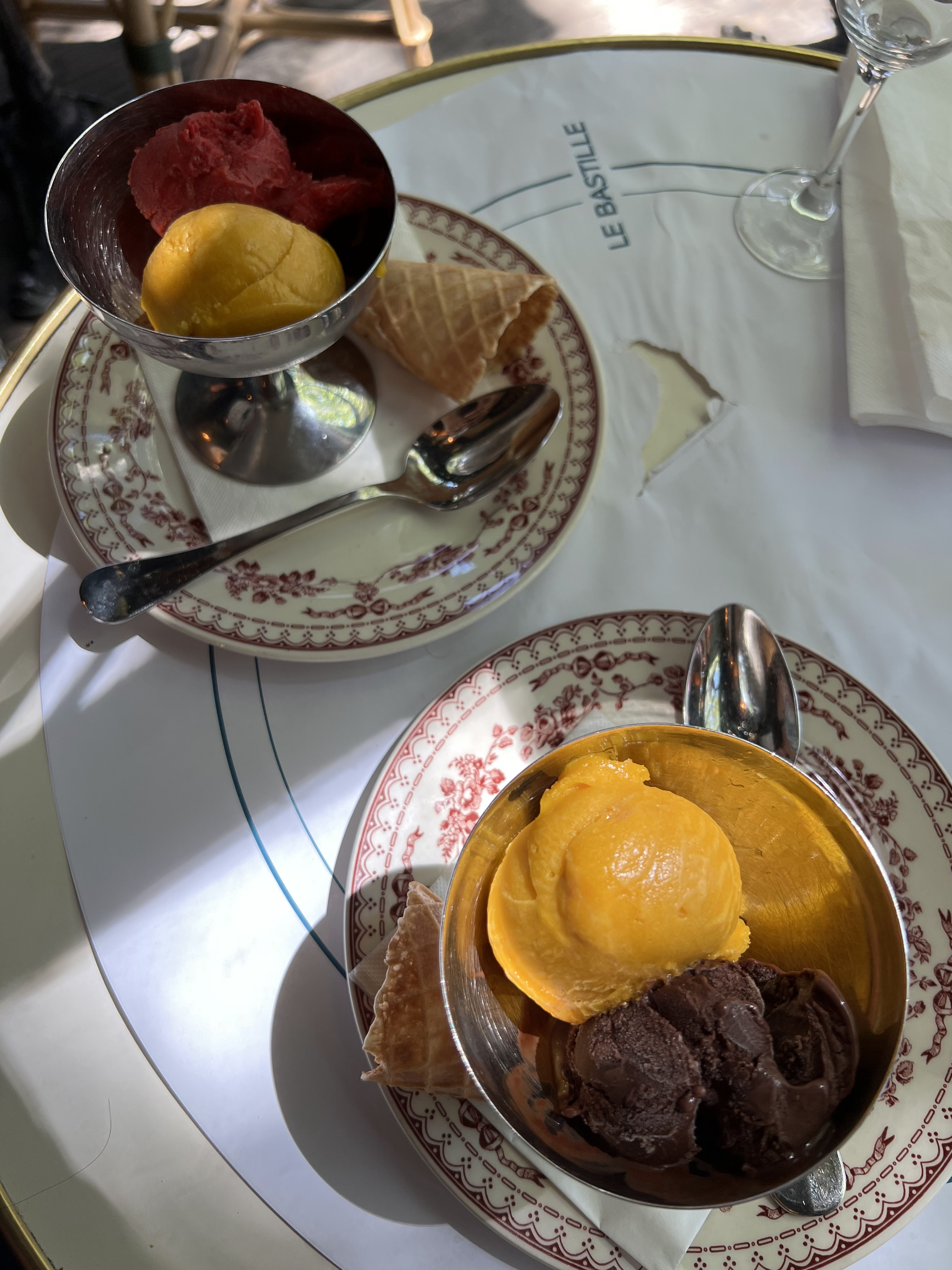 Une glace deux boules (petites), même Bertillon soi disant, 10€50..sans une gaufrette. Hors de prix, il y a un glacier à côté avec beaucoup plus de choix. Vraiment désagréable d'être pris pour des touristes