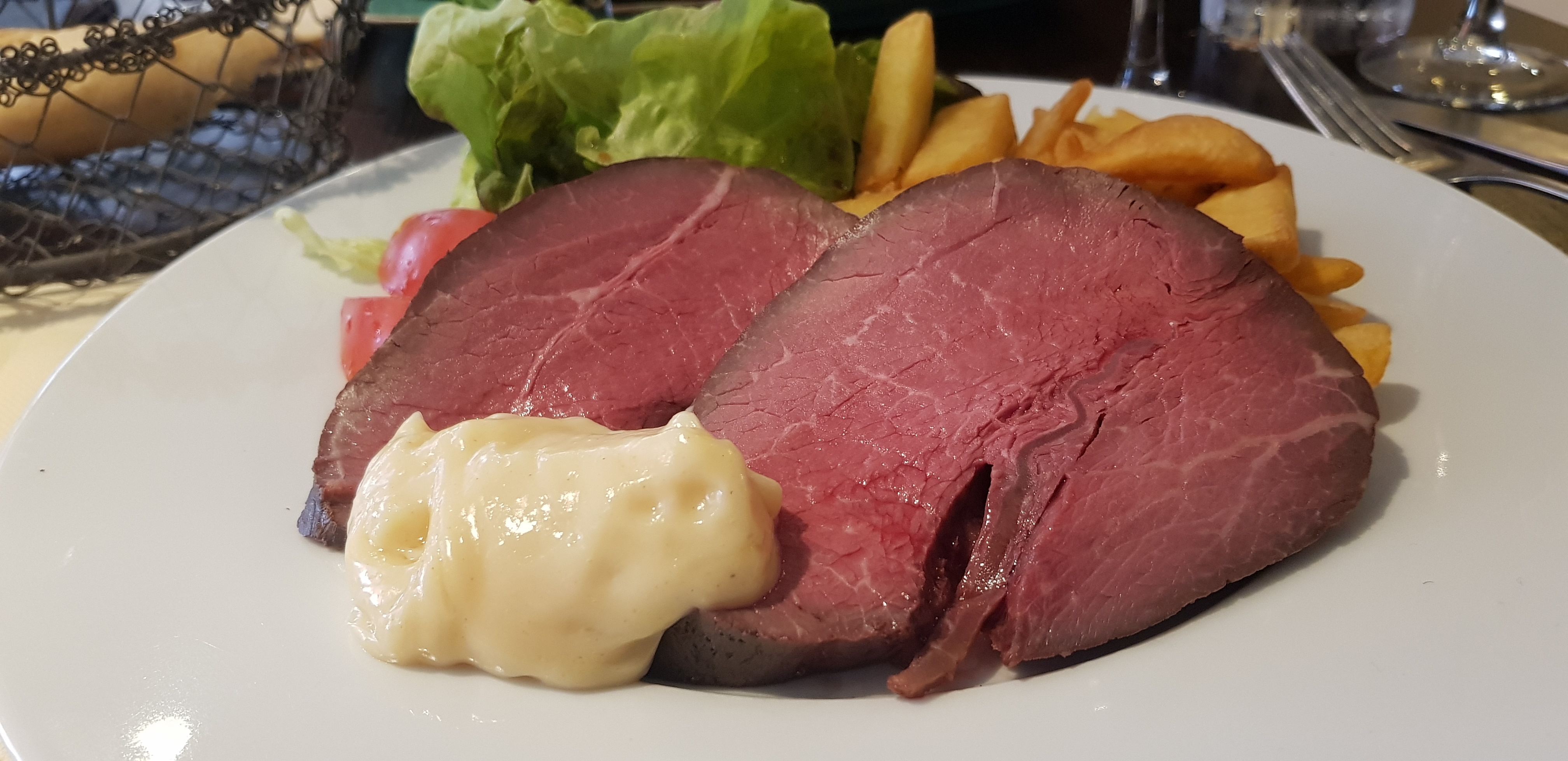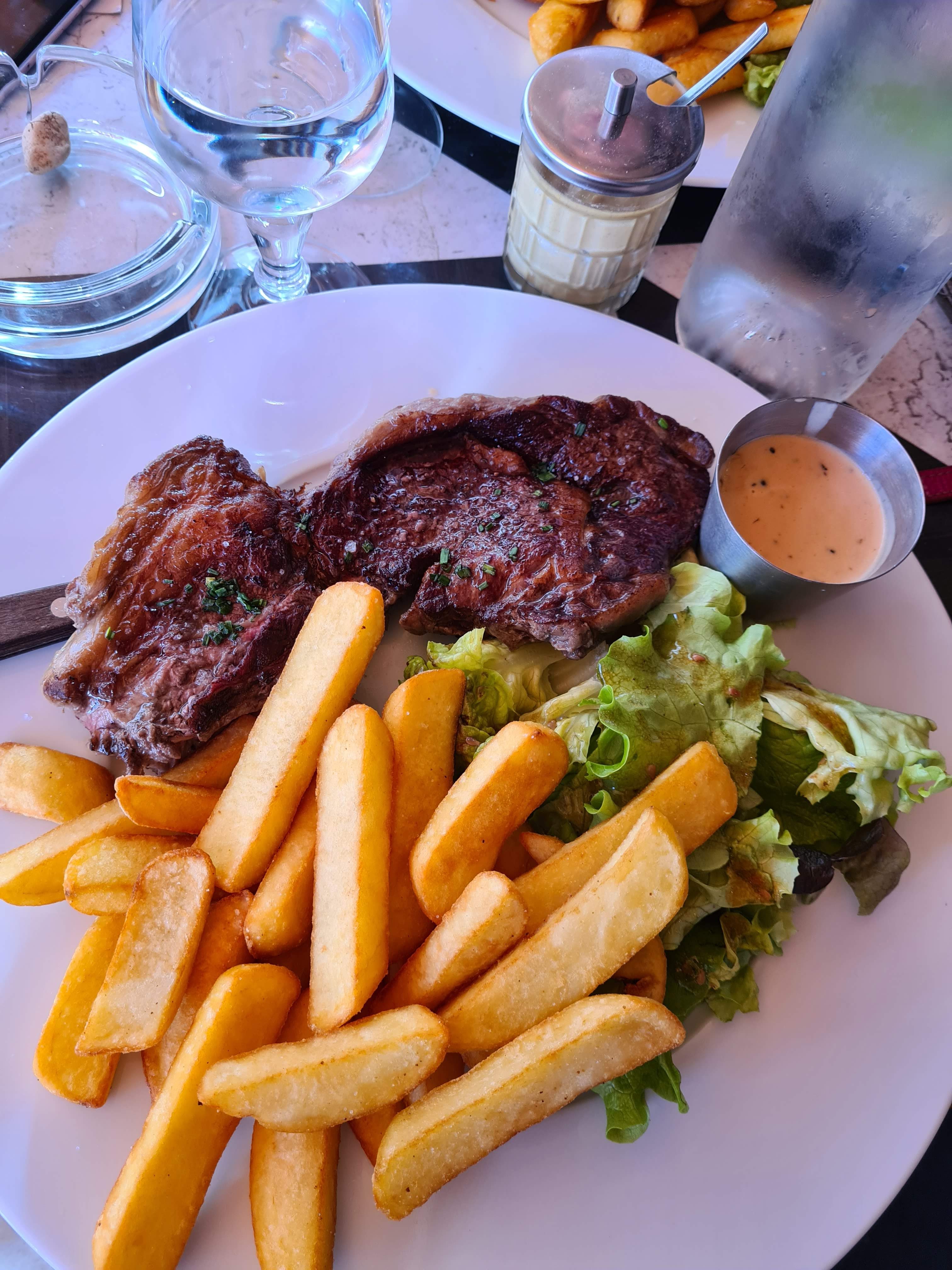 Repas express ce midi pour moi et que dire, le service a été impeccable, la patronne (je crois) a été très efficace et j'ai pu être servie en moins de 10min (pause déjeuner courte). L'entrecôte saignant avait une cuisson parfaite et était très bonne. Idem pour les frites et la sauce béarnaise. Je reviendrais sans aucun doute. Encore merci pour ce service rapide malgré le grand nombre de clients.