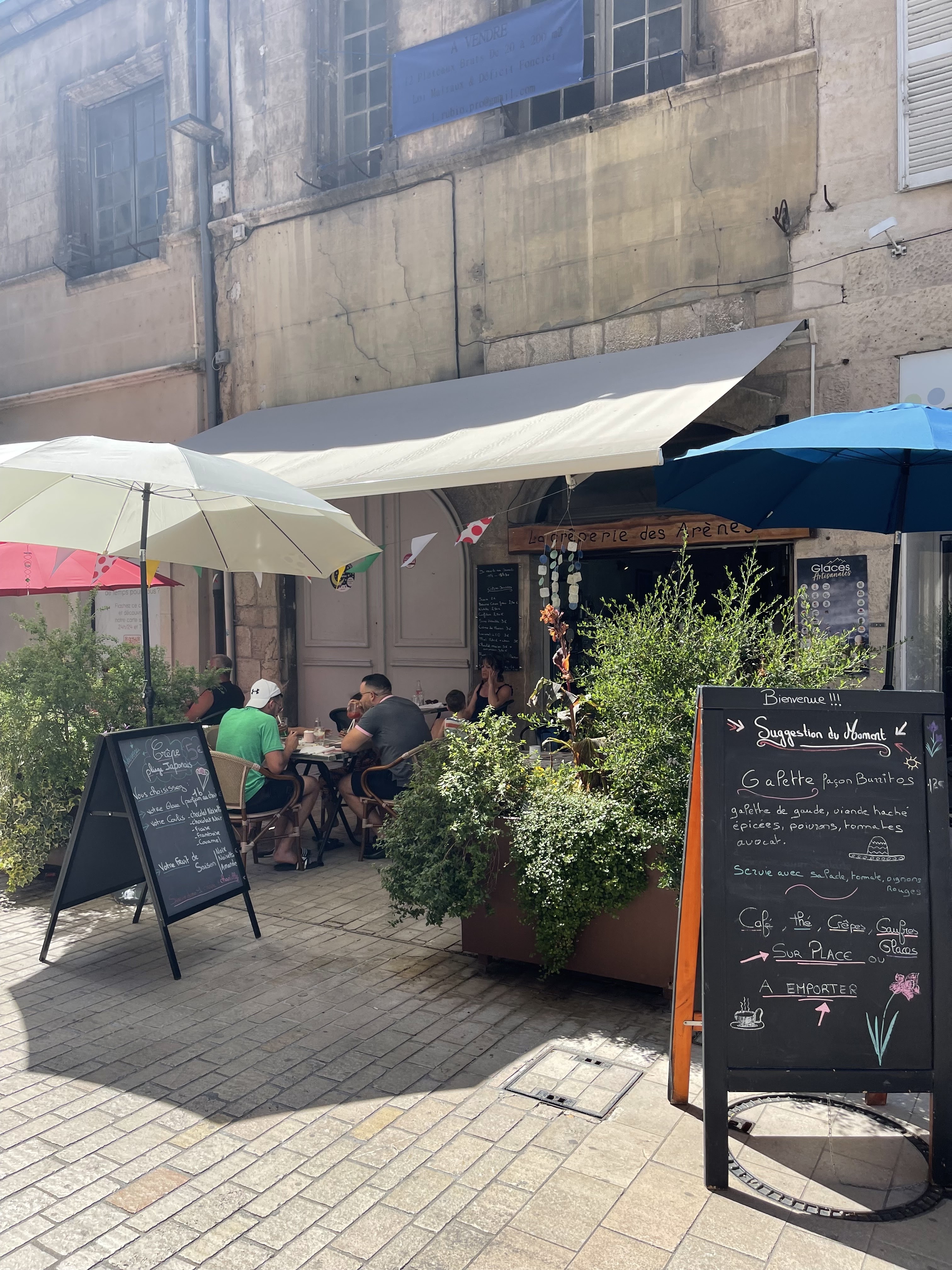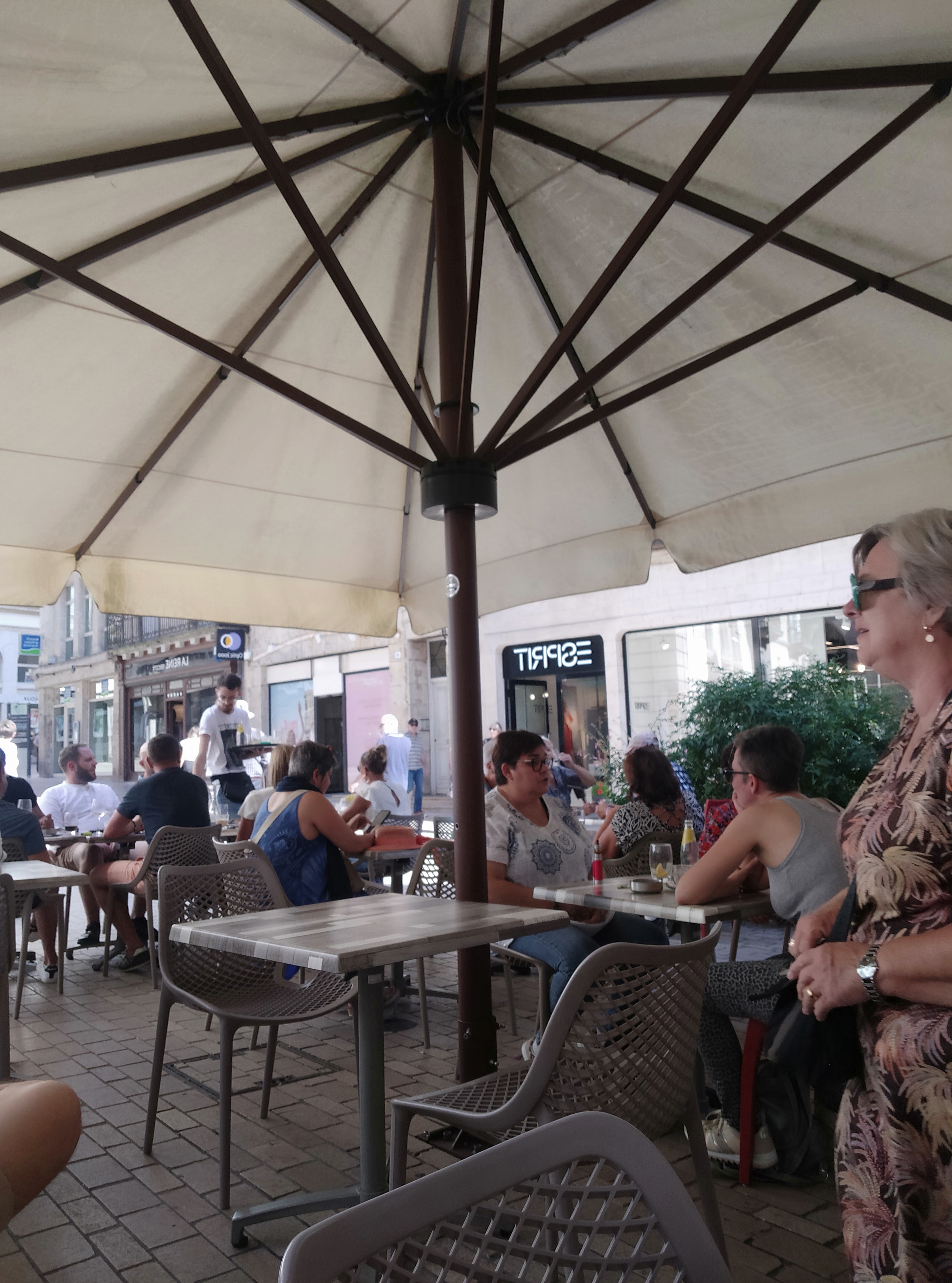 On recommande, la terrasse à côté de la fontaine, notre mésaventure nous aura permis de vous découvrir, adresse que nous allons retenir