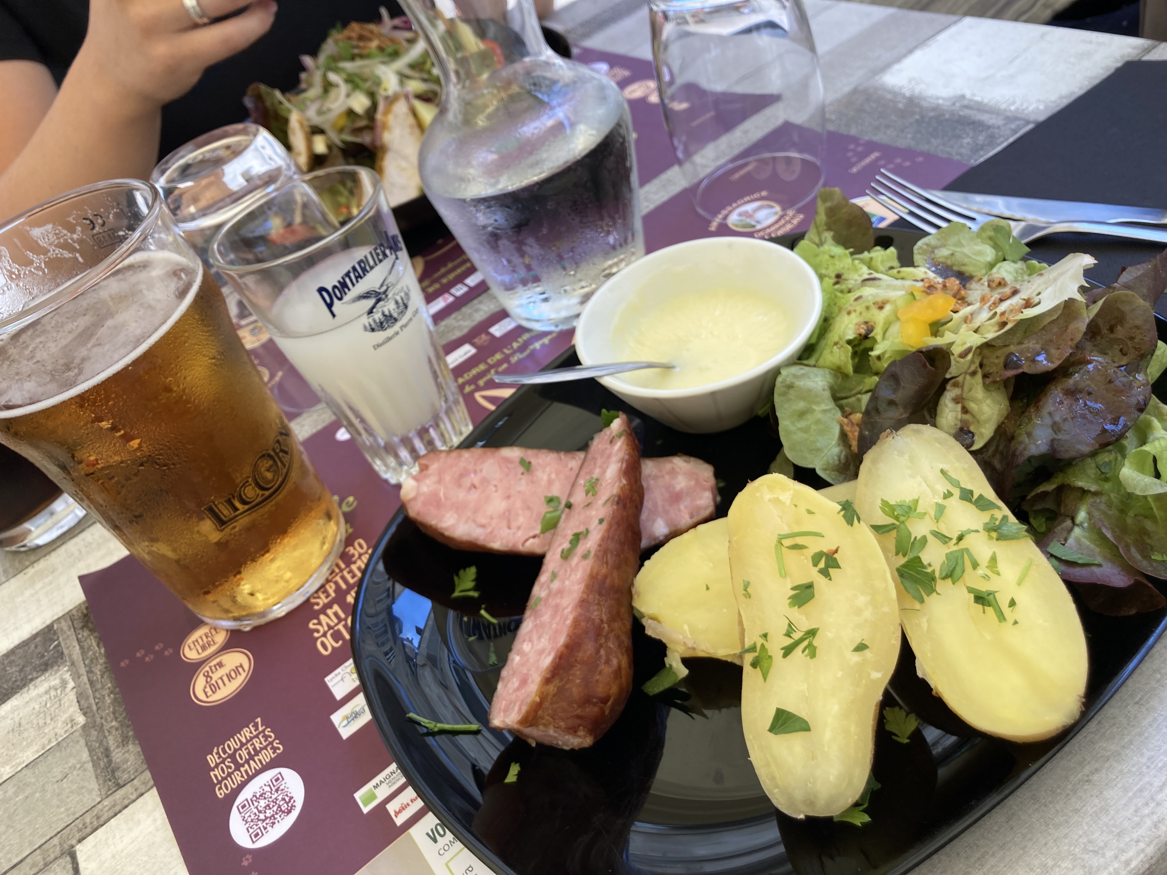 Très bon accueil,salade et saucisse de Morteau et concoillotte parfait,le dessert nous attendons mais cela devrait être top.