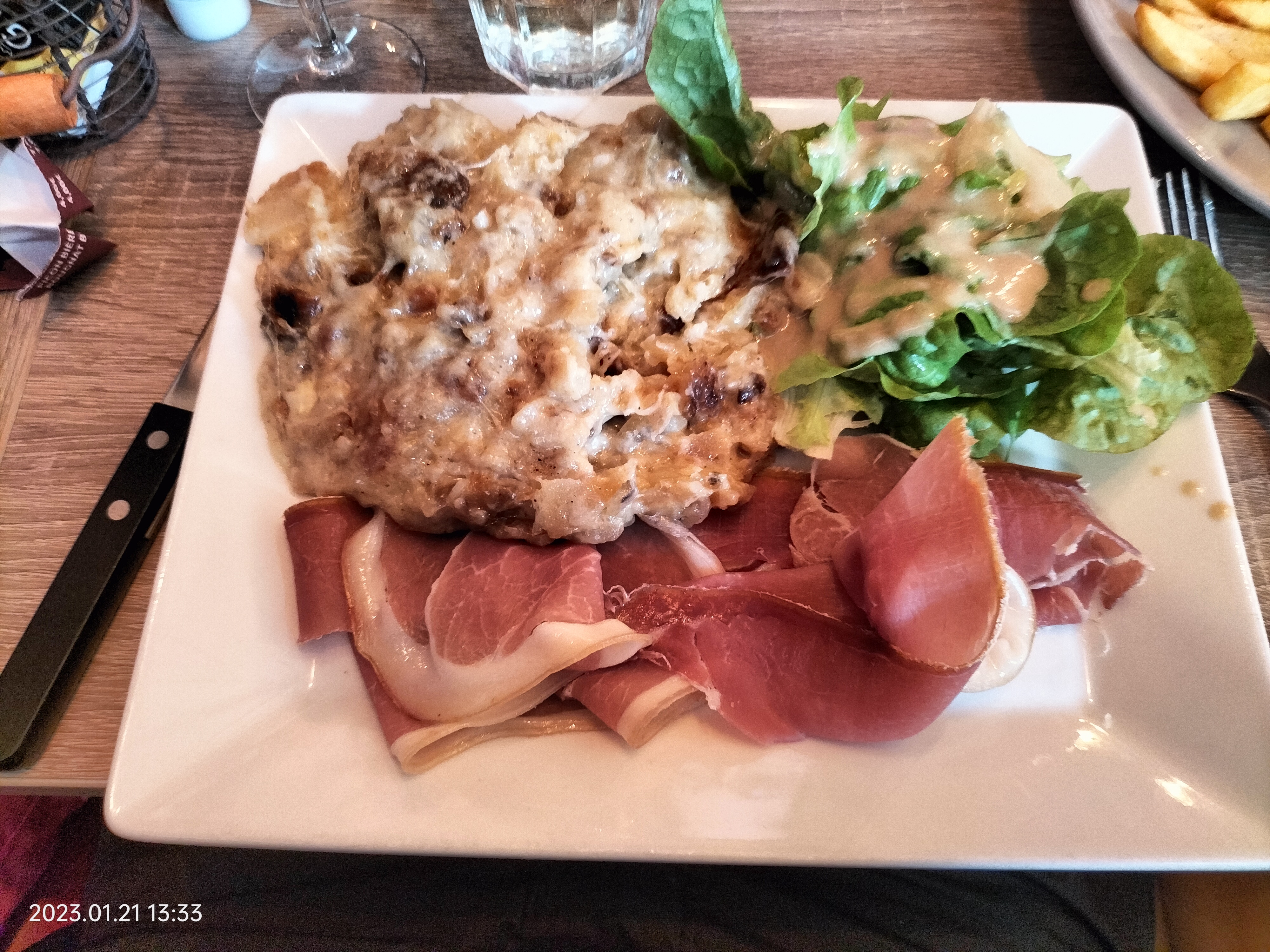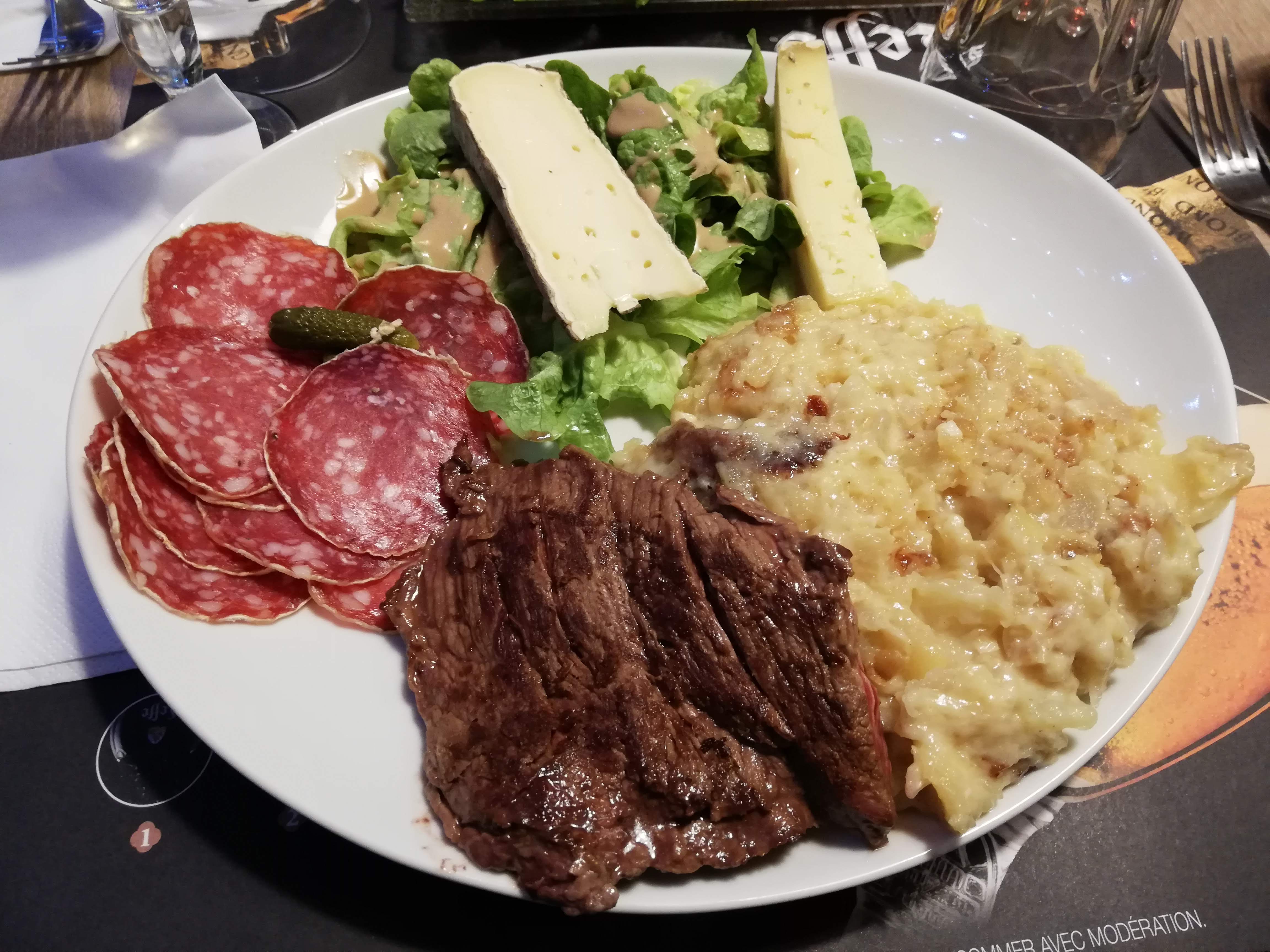 Très belles assiettes et copieuses !!! J'ai pris l'assiette du vacher c'était excellent, je la recommande :) par contre j'ai levé une étoile pour l'accueil à l'arrivée (on va dire qu'ils étaient débordés...) Mais surtout pour le service de l'apéritif j'ai commandé un muscat le verre était quasiment vide même pas 6ml avec un glaçon en plus.... dommage....