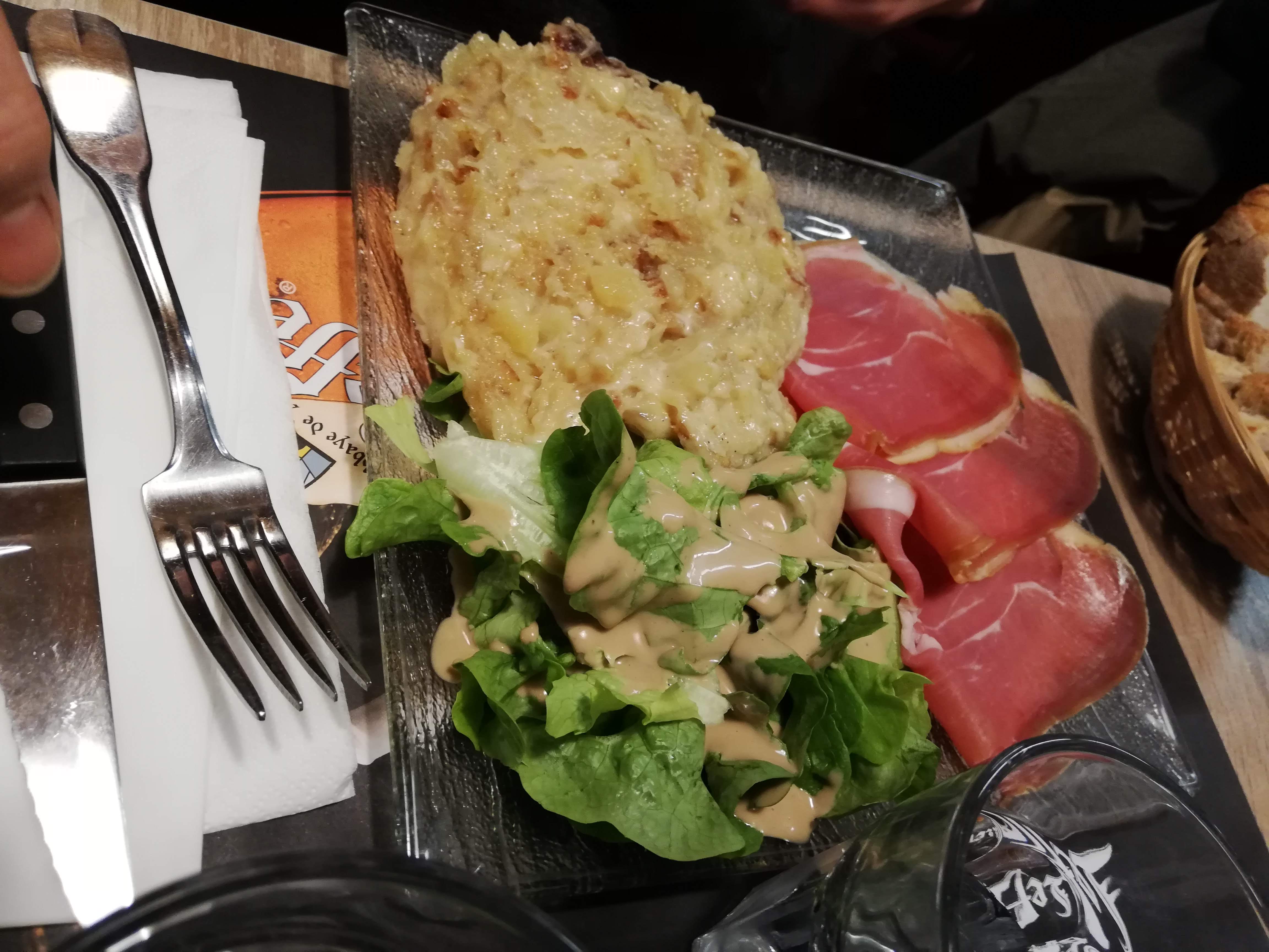 Bien situé. Possibilité de manger en terrasse. Menu enfant. On a aussi pris un gratiné de saint nectaire avec charcuterie. Et une truffade. Très corrects.