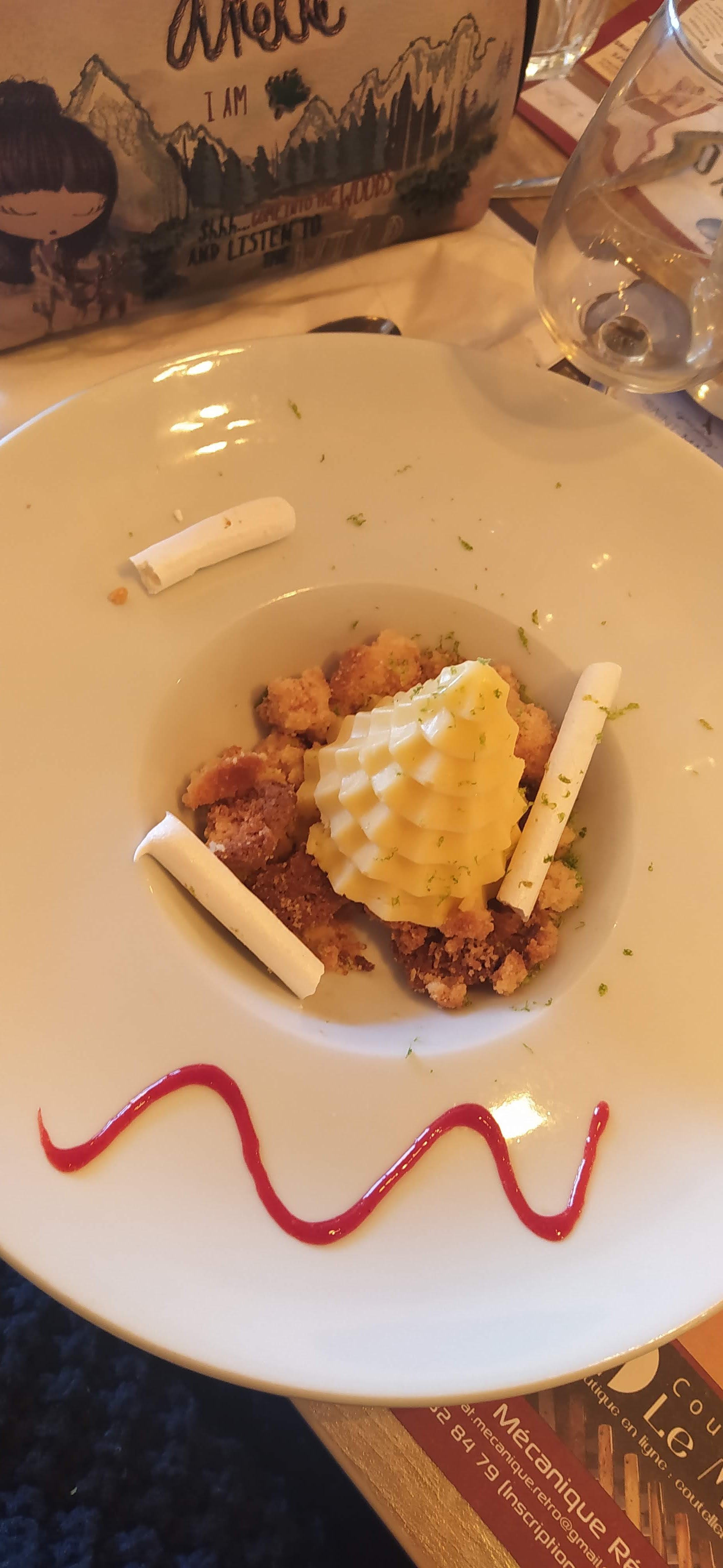 Accueil très chaleureux repas très copieux et vraiment très bon, nous avons testé plusieurs choix pour ne pas être déçu ! Un régal et un plaisir a chaque fois, le patron a pris le temps de discuter avec nous avec plaisir, c'est toujours agréable ! Un peu de beurre dans le crémeux citron et c'est parfait 😜. La pâtissière ! Merci beaucoup