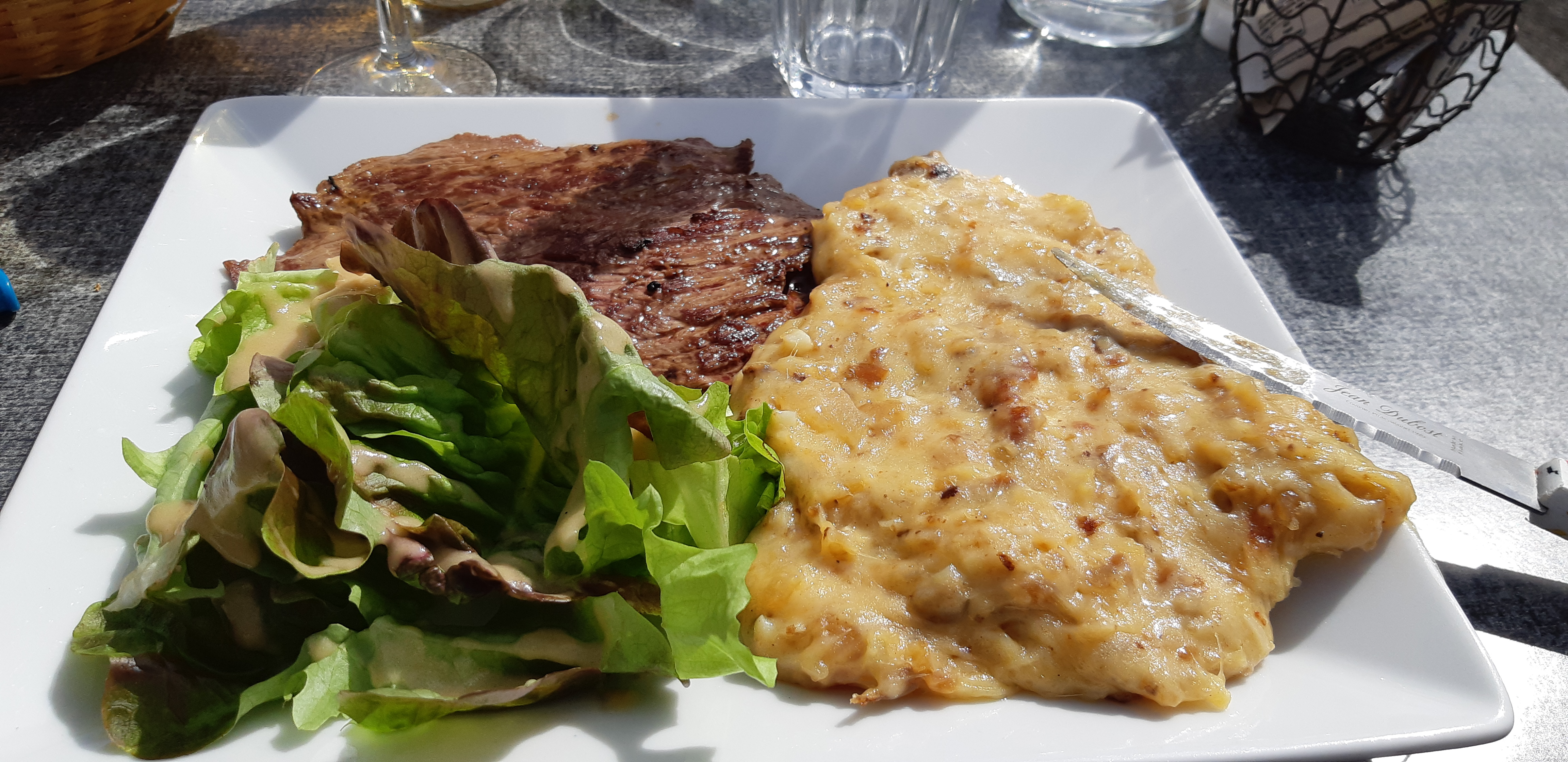 Patron à l'écoute. Service attentionné. Bonne truffade en terrasse au soleil avec un très bon dessert gourmand