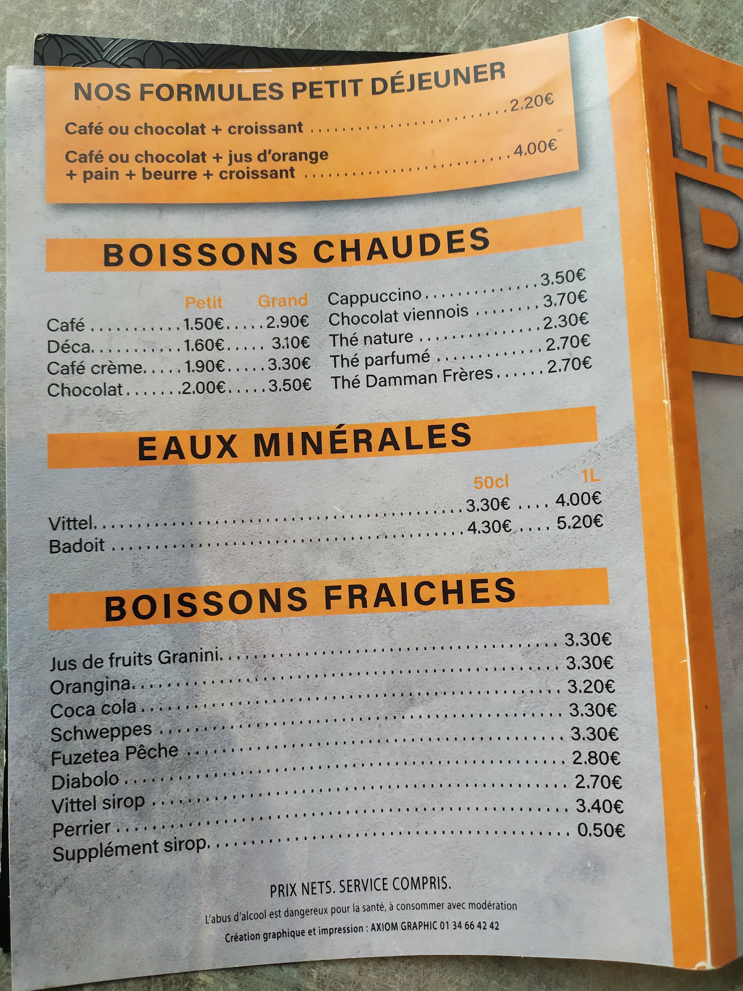 2.70 euros un sirop à l'eau pour des enfants. Verre minuscule avec soit disant de la vittel pour justifier son prix. Aucune trace de vittel, voleur et malhonnête en prétextant qu'ils nous l'auraient précisé au moment de la commande à fuir