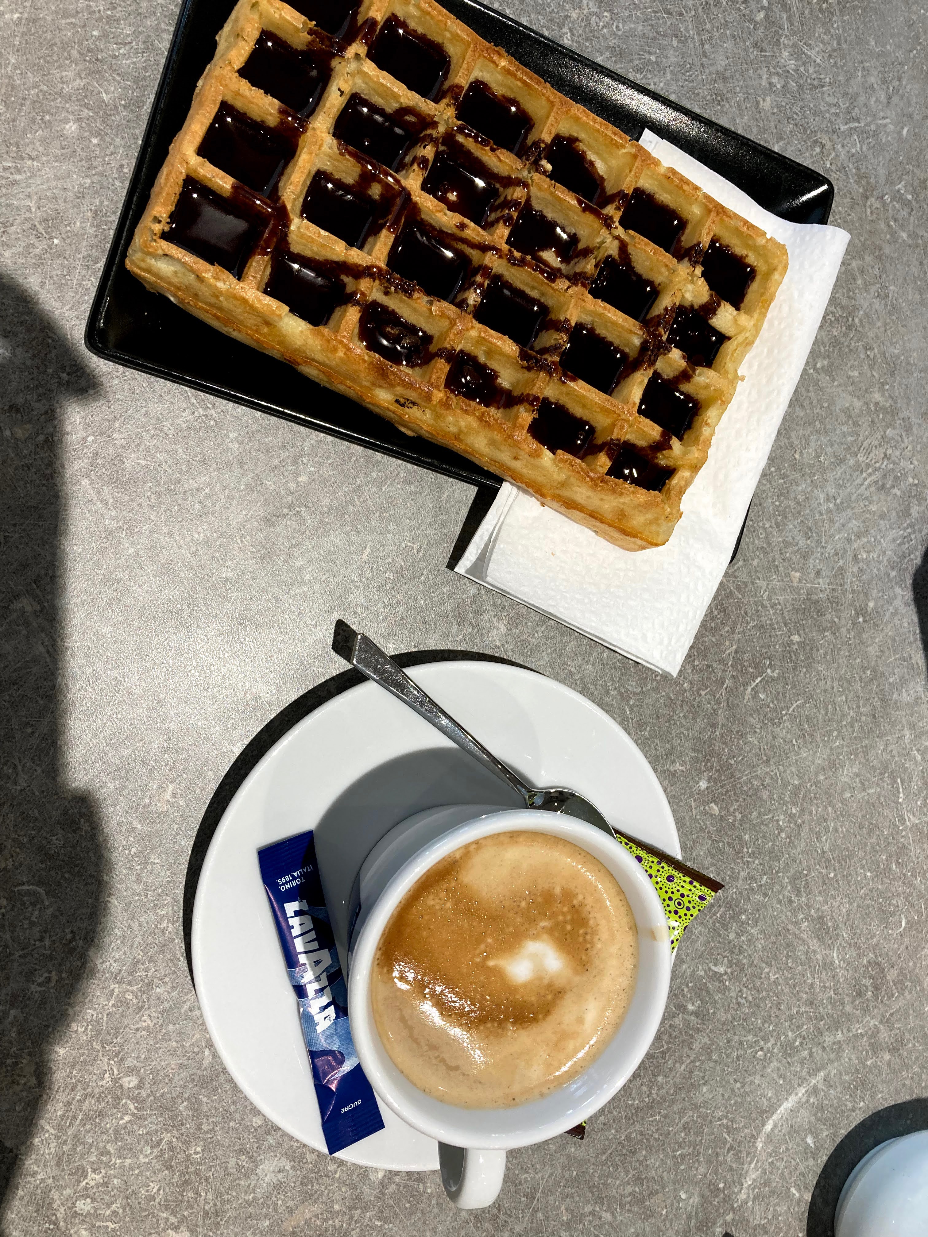 Lieu accueillant après les courses😉 Gaufre chocolat croustillante
