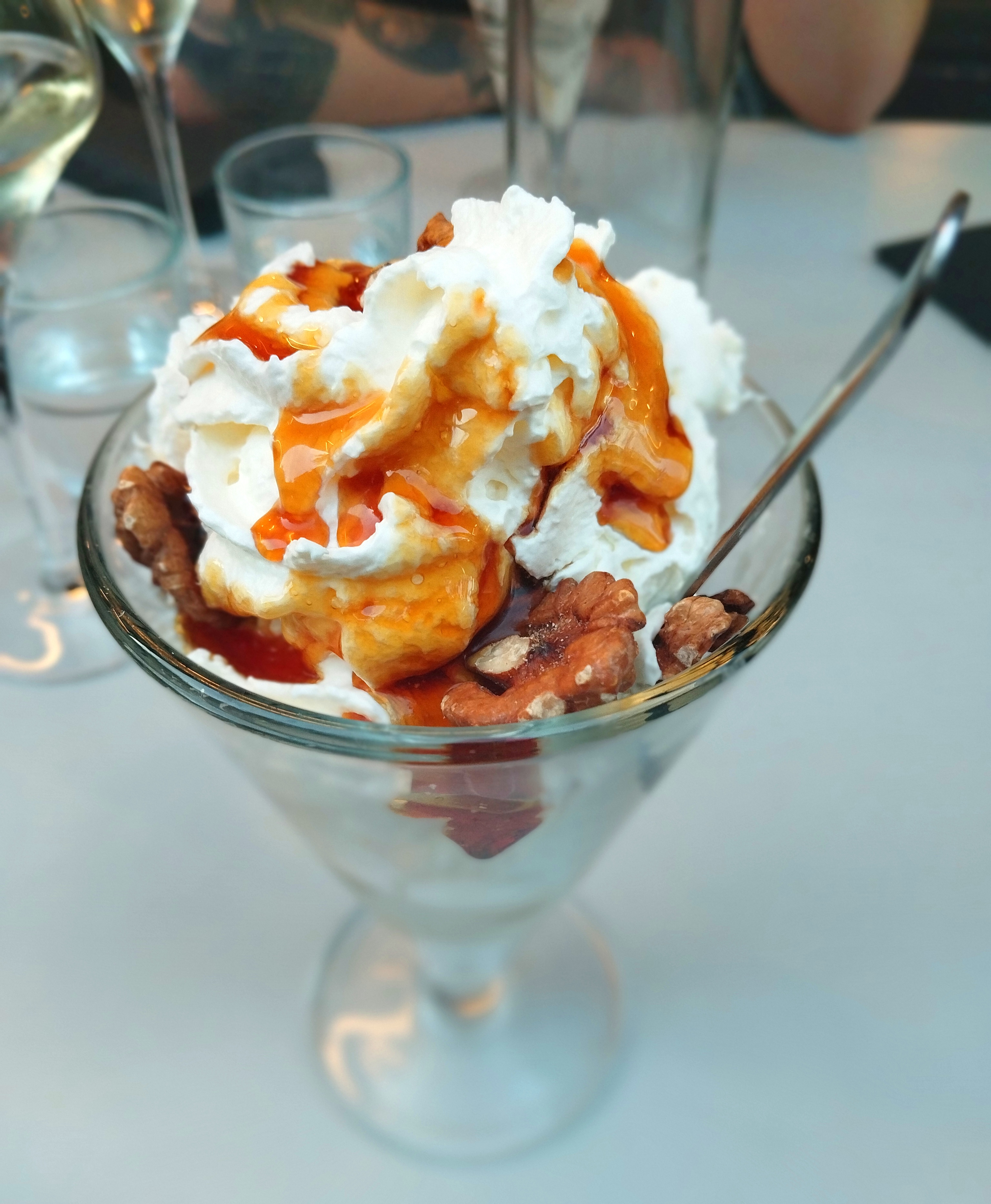 Cette brasserie se trouve sur la place de l'église. Nous avons pris en terrasse, dans l'après-midi, trois coupes de glaces. Les serveuses étaient agréables et souriantes. Les glaces étaient succulentes, généreuses et bien présentées. Je recommande