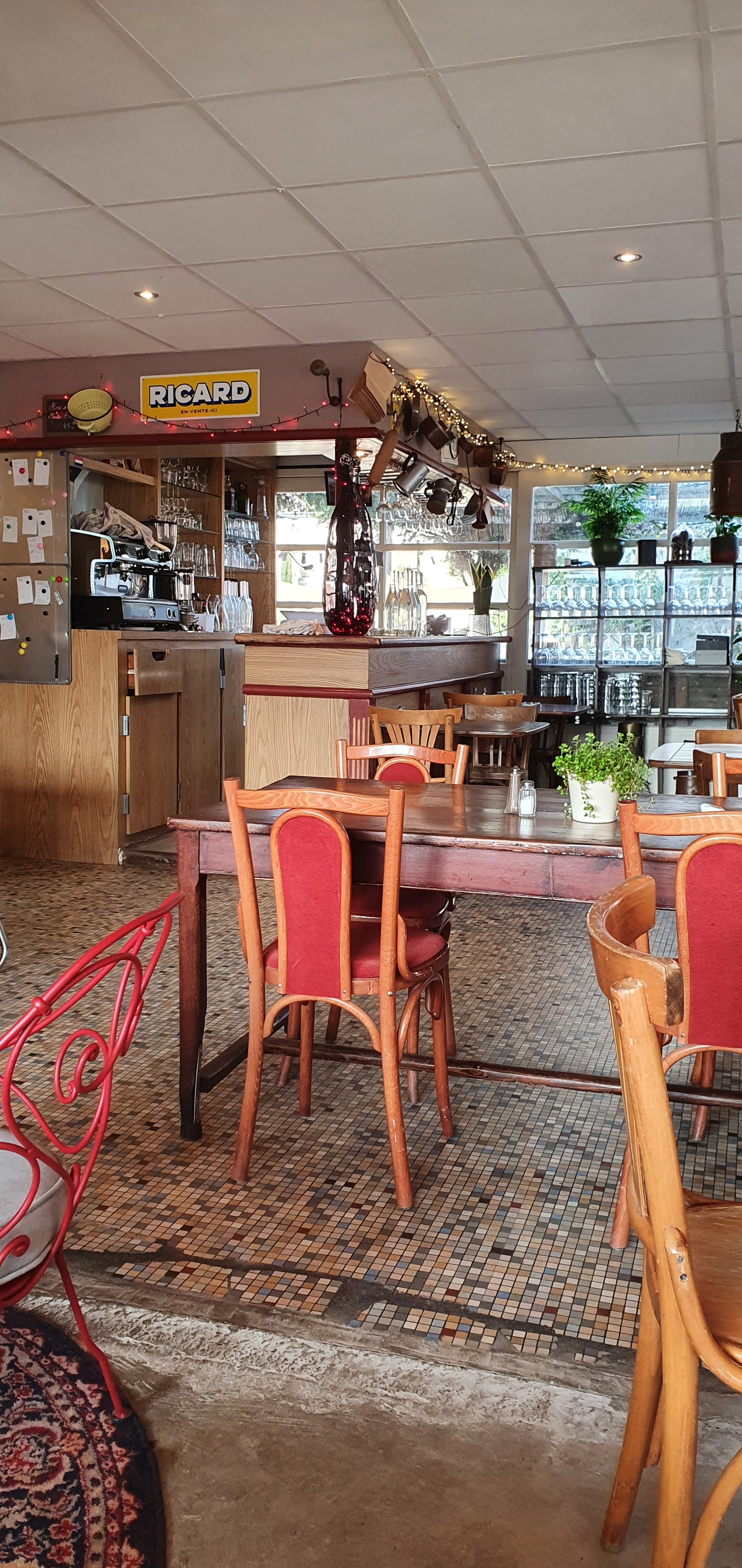 Superbe petit restaurant une terrasse ombragée avec une super déco attention au grand je me suis cognée dans le lustre 😂 la cuisine est top on mange super bien pour un prix raisonnable seul le dessert ne m’a pas vraiment convaincu mais sinon le reste était top