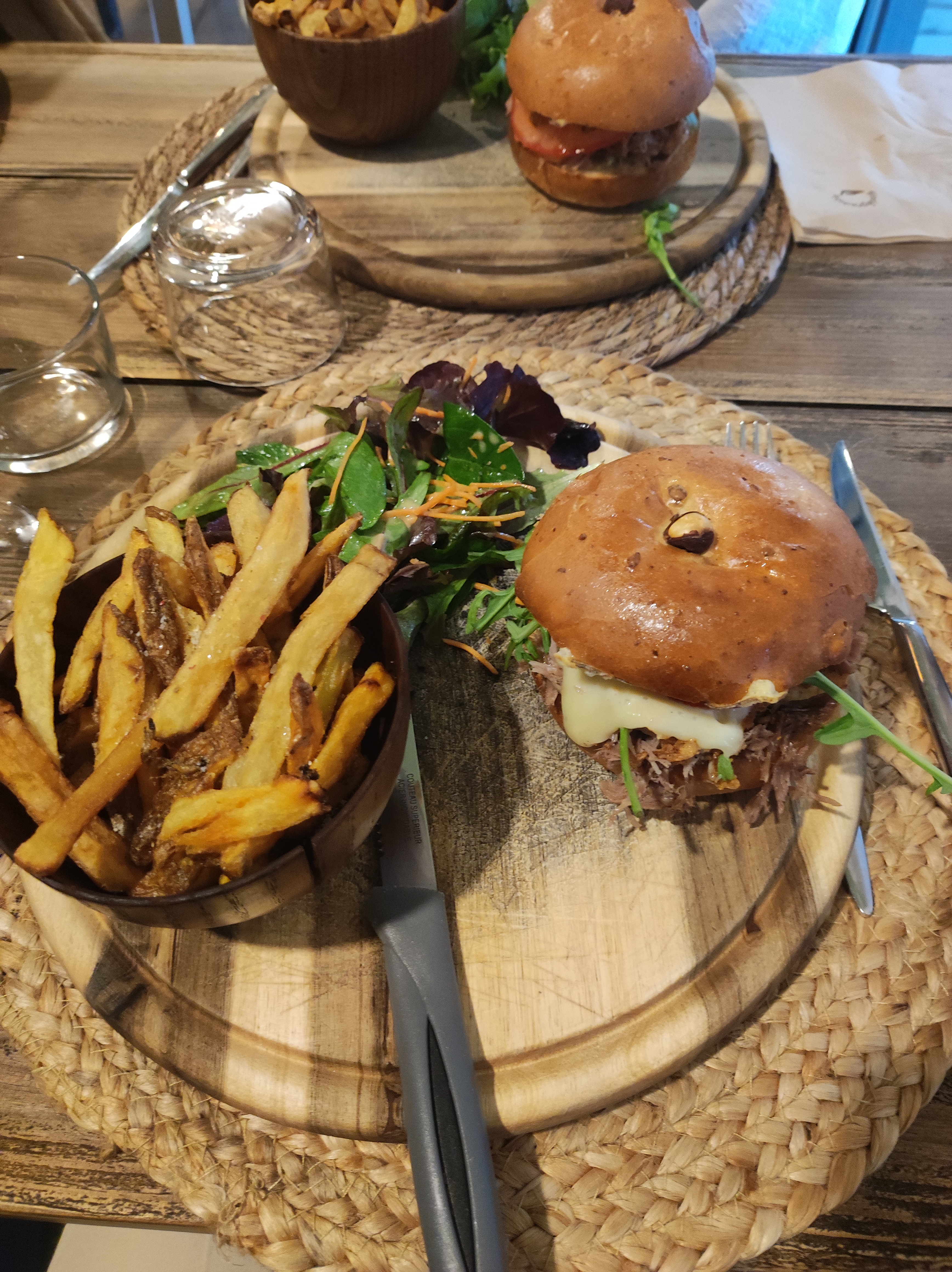 Burger maison très bien servi, et qualitatif, faux filet extra, service rapide , cadre agréable, c'était parfait.