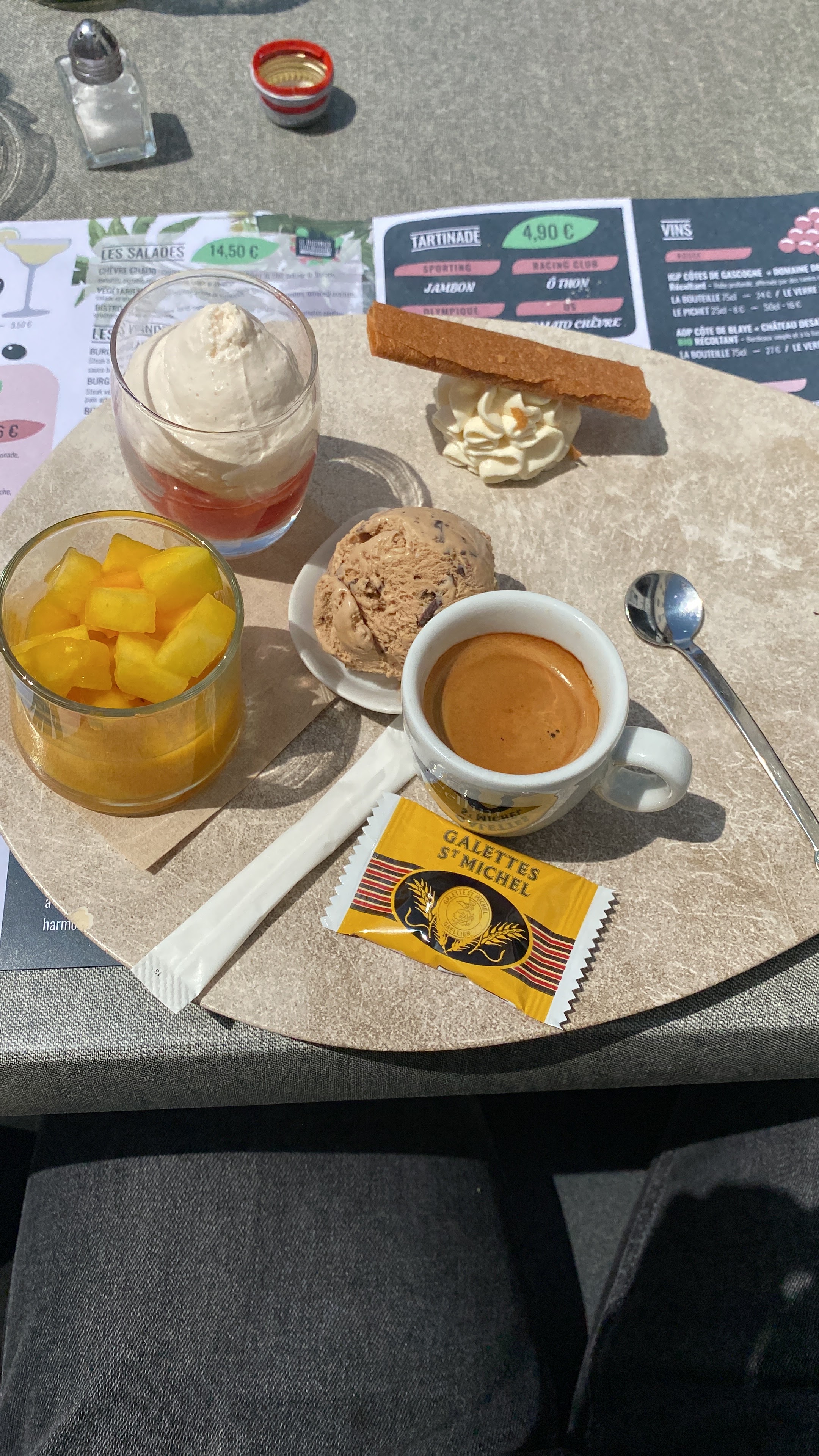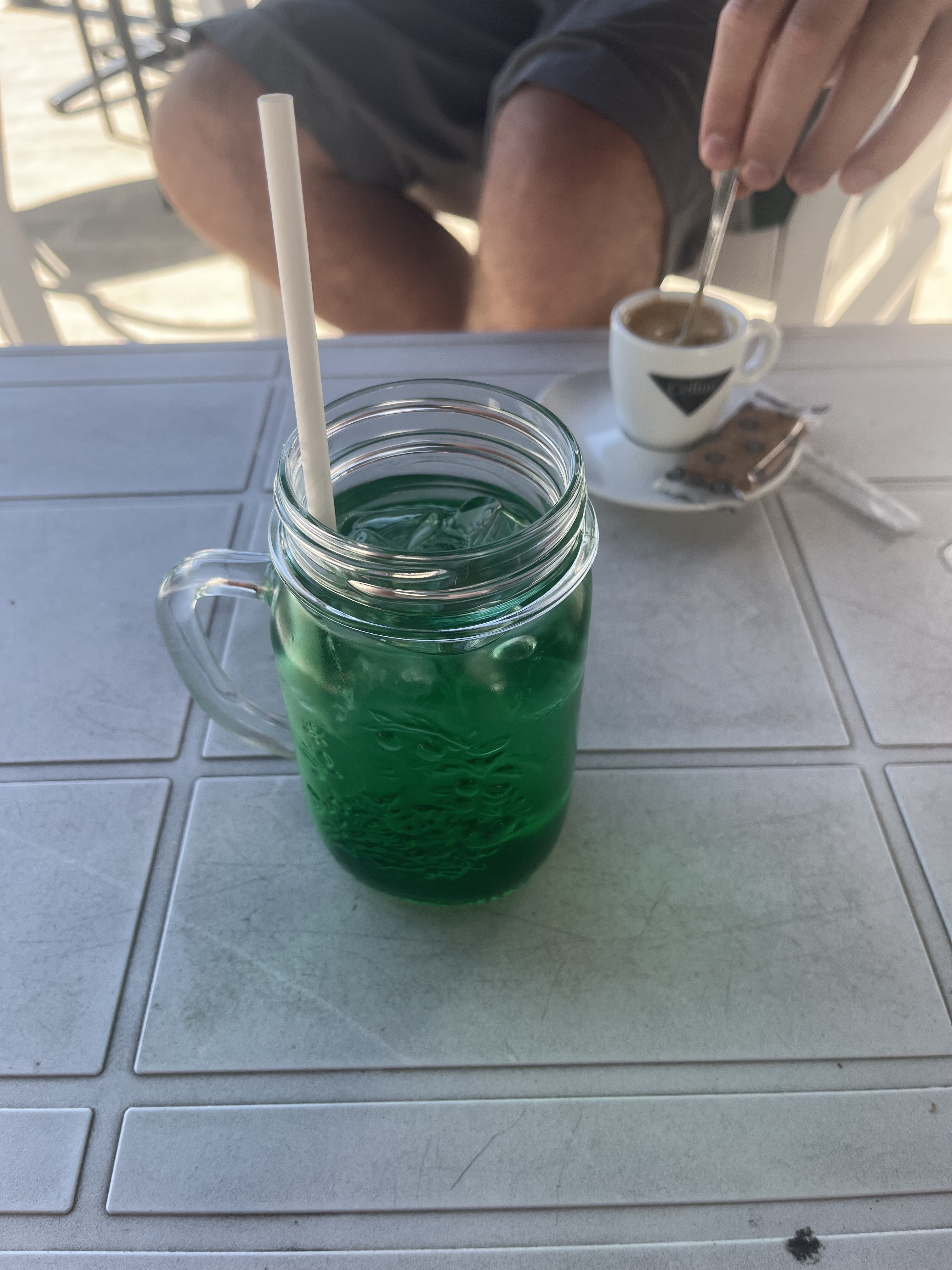 Petit café conforme (petit gateau) et menthe à l’eau Service simple et bon accueil Parfait pour une halte