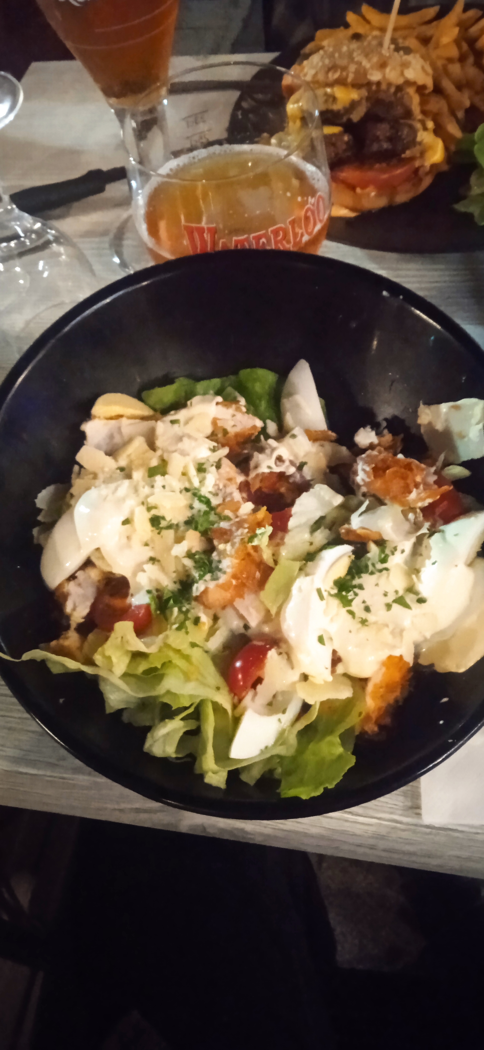 Brasserie correcte sur evreux avons pris des salades il y a de moins en moins de garnitures et je cherche encore la sauce césar... Cest dommage il ne peut y aller quand nous avons faim....
