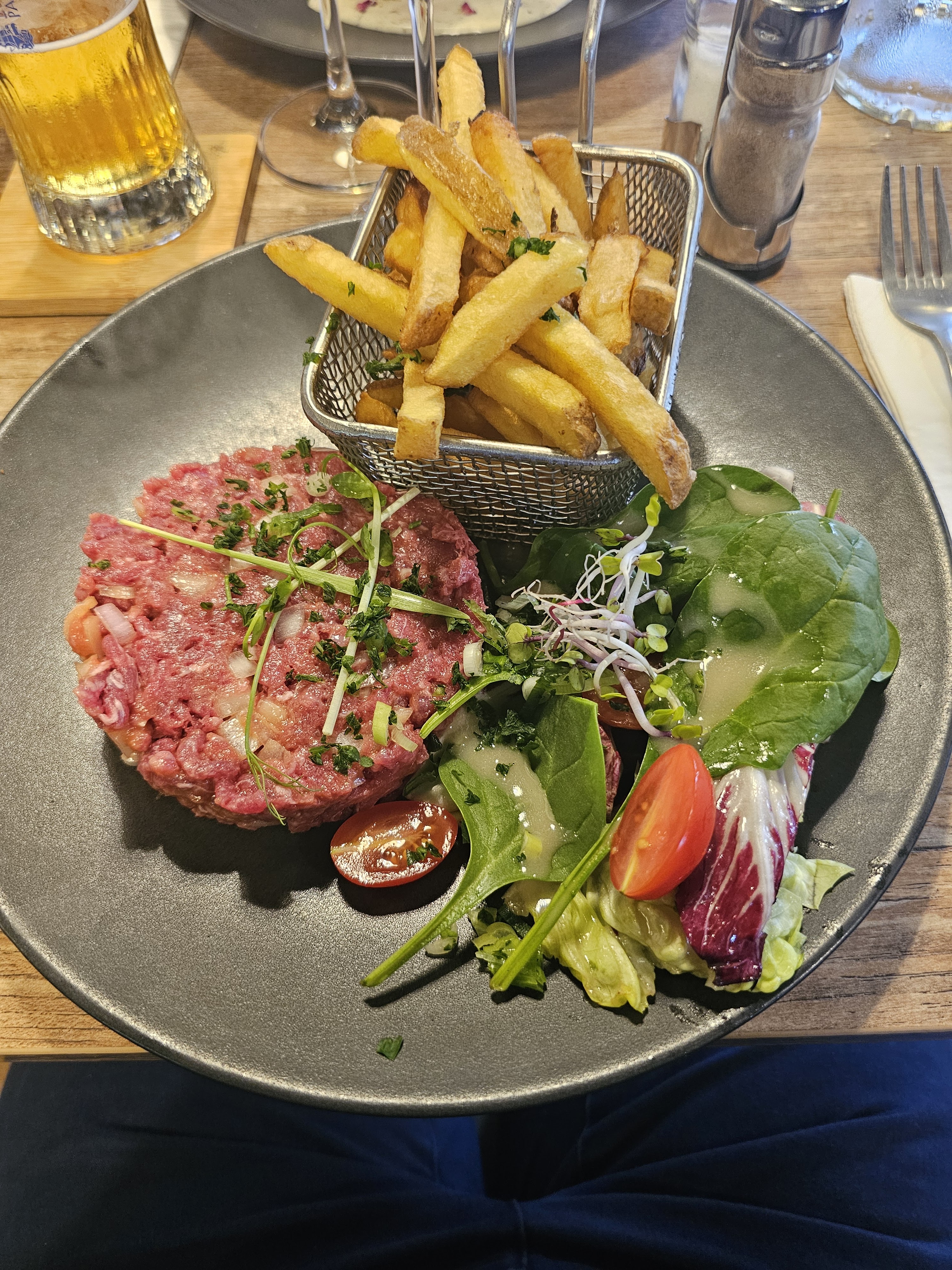 De passage sur Evreux nous avons bien aimé le repas salle tranquille le personnel discret mais professionnel ce lieu est à conseiller pour une belle pose déjeuner. Salade modifiée sur ma demande car je suis végétarien frites maison pas grasse et le dessert crumble et tiramisu super bon, cdl