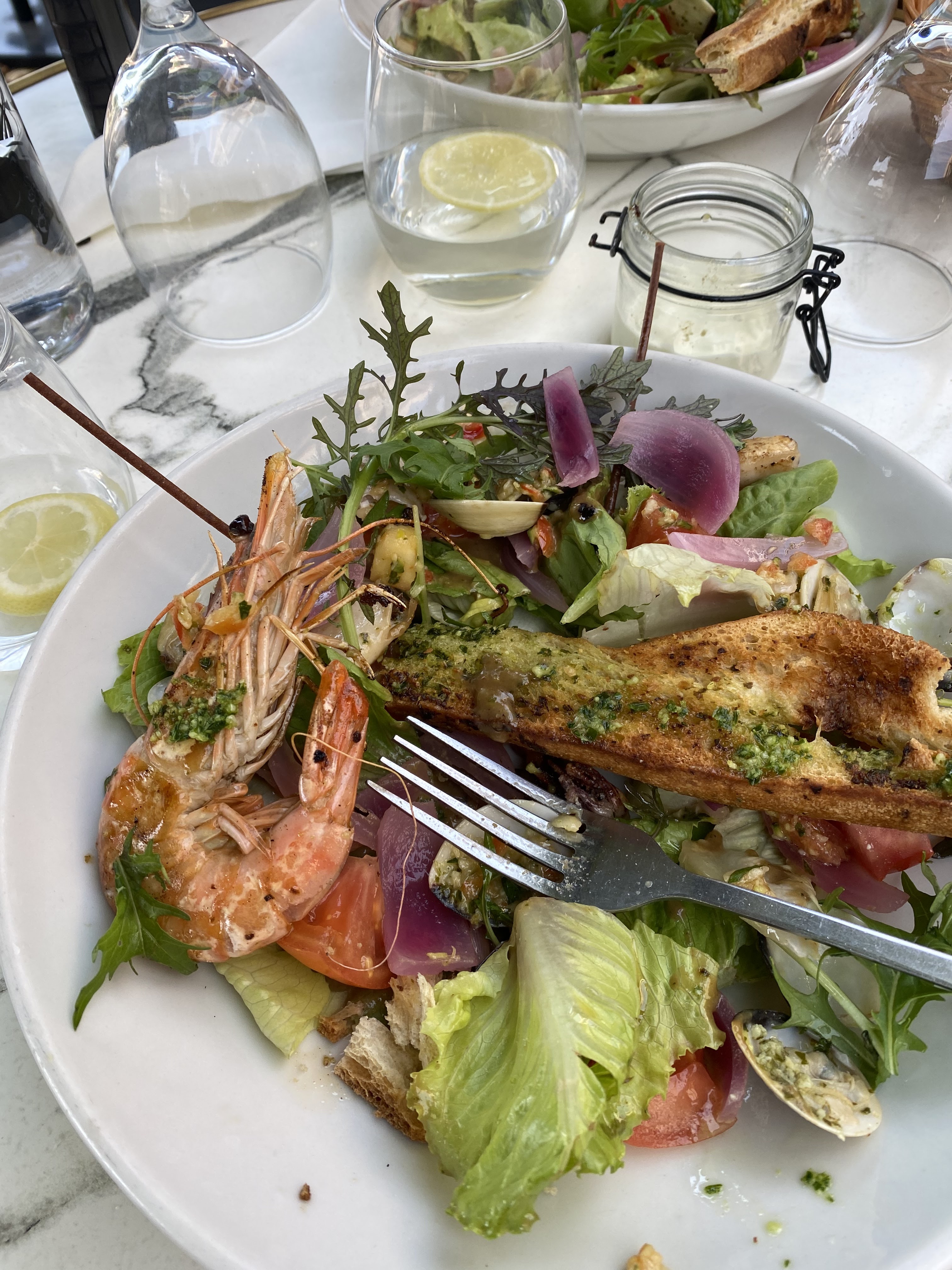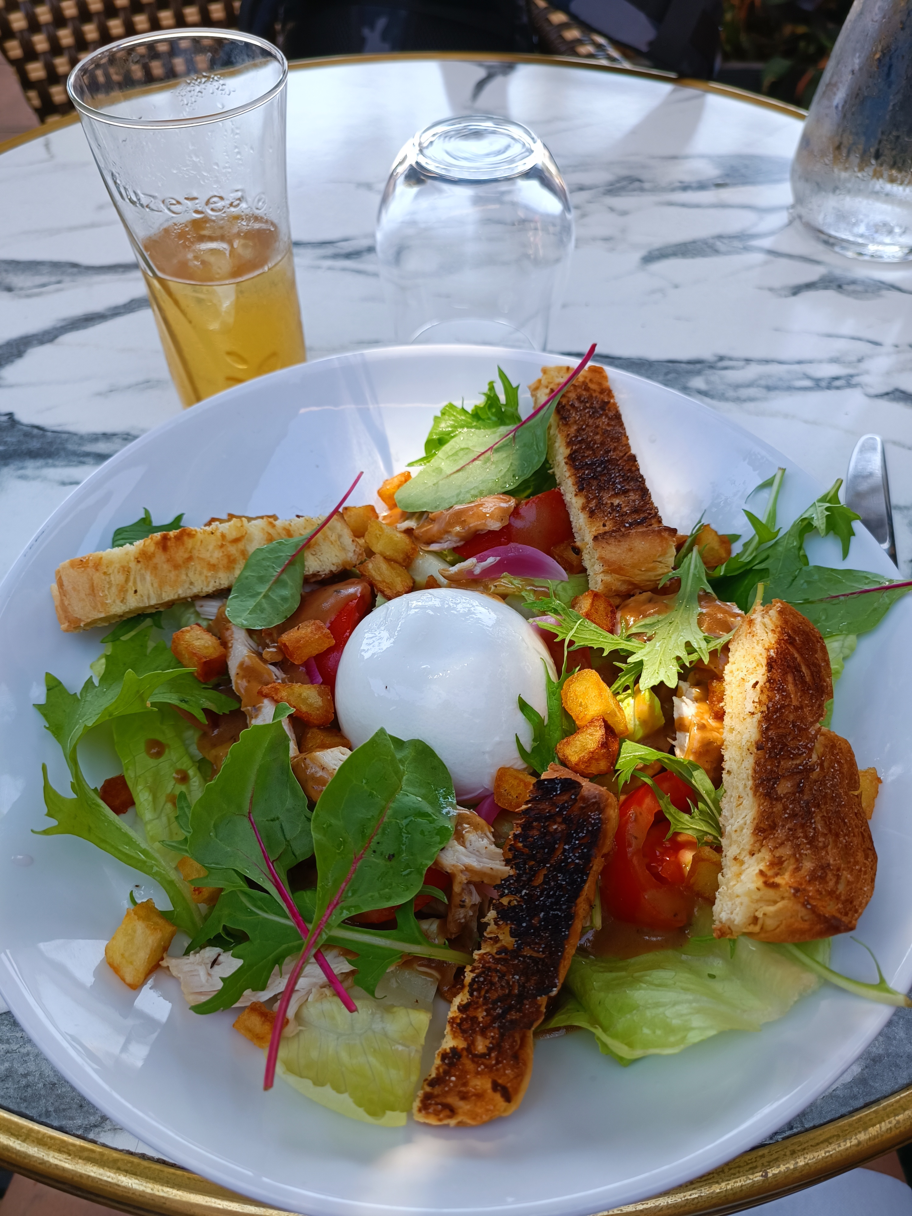 Serveuse très souriante et aux petits soins, nous avons pris un plat du jour (salade forestière), très bonne ! Nous avons même eu le droit à un petit Limoncello 😋