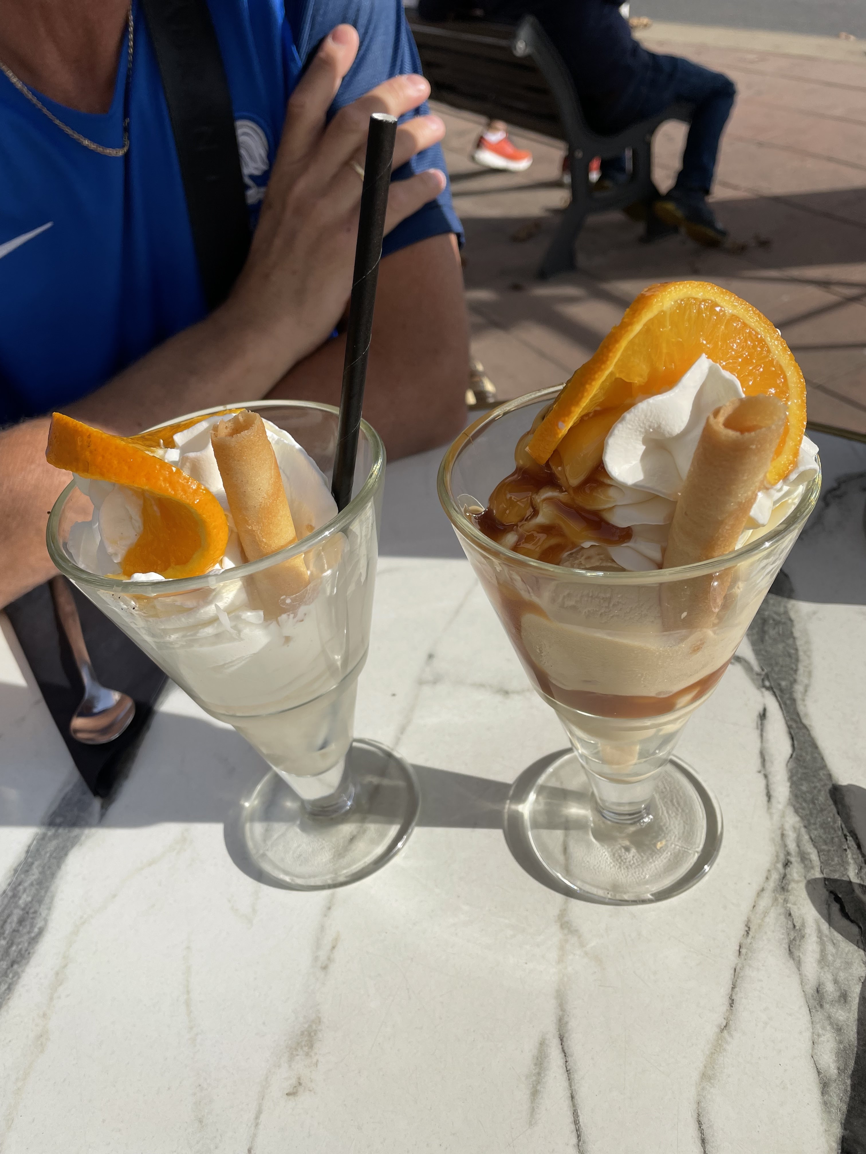 Personnel et service très agréable accueillant et souriant Malheureusement un peu déçut de notre pause goûté gaufre nutella surgeler et froide avec un goût de trop peu. Concernant les glaces pas top niveau goût Dommage car très bon emplacement et personnel plus que top