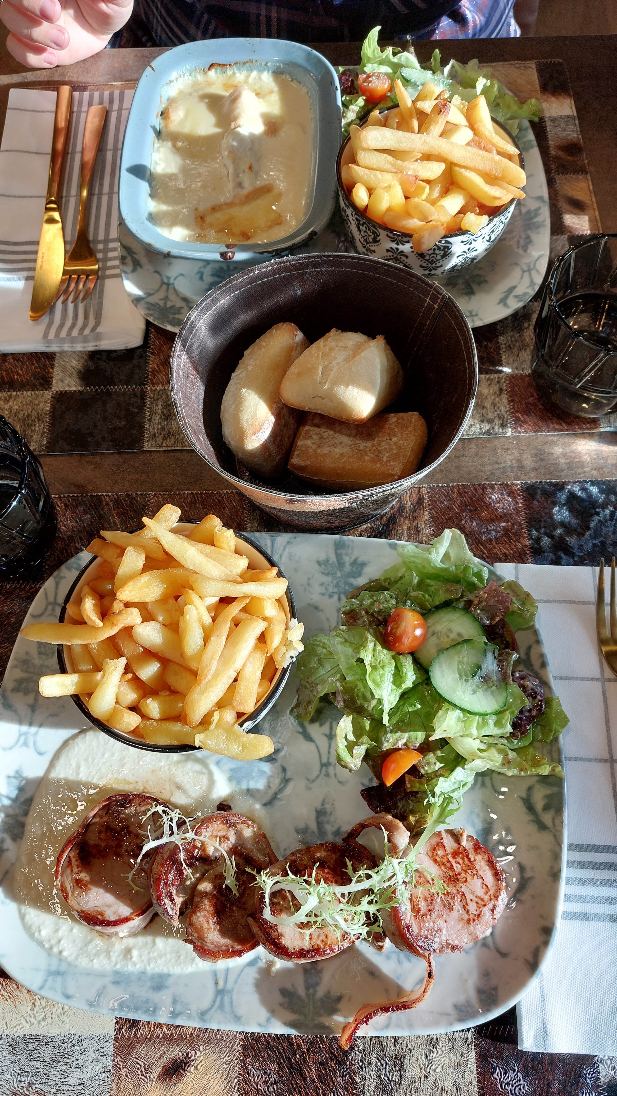 Cadre chaleureux. Par contre plat pas bon du tout fade sans assaisonnement j' ai pris blanquette avec riz et légumes. Les légumes du surgelé et arrière goût la blanquette pleine d eau et béchamel bizarre... Le suprême de poulet pareil sans goût. Niveau service un jeune homme très bien 👍 et une jeune femme ou le sourire était a la commande on avais l impression de la déranger... Enfin voilà!!