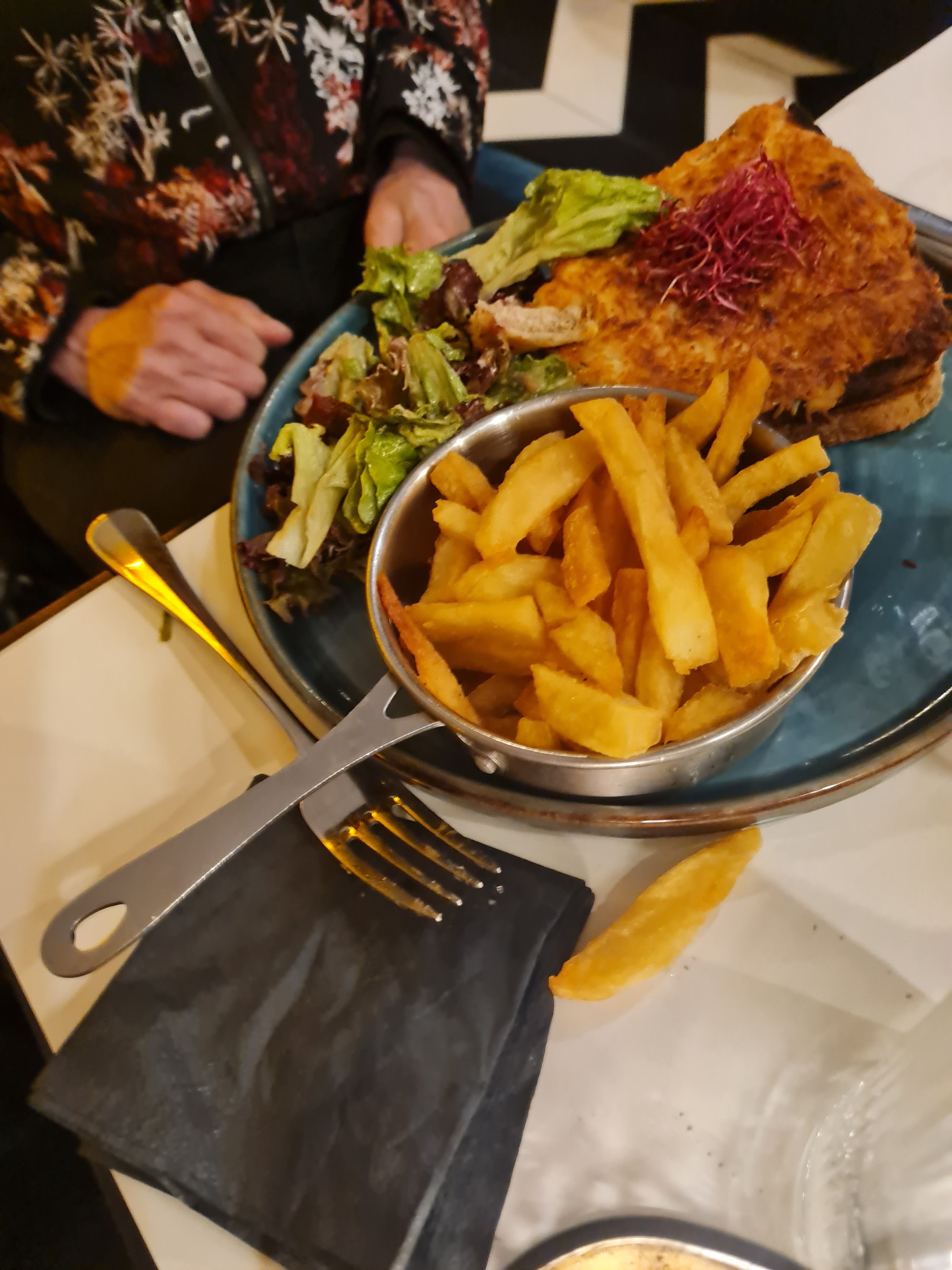 Très bon accueil, le serveur très sympa et la salade César est juste excellente, et copieuse! Je vous recommande vivement ce petit lieu cosy et chaleureux 😀